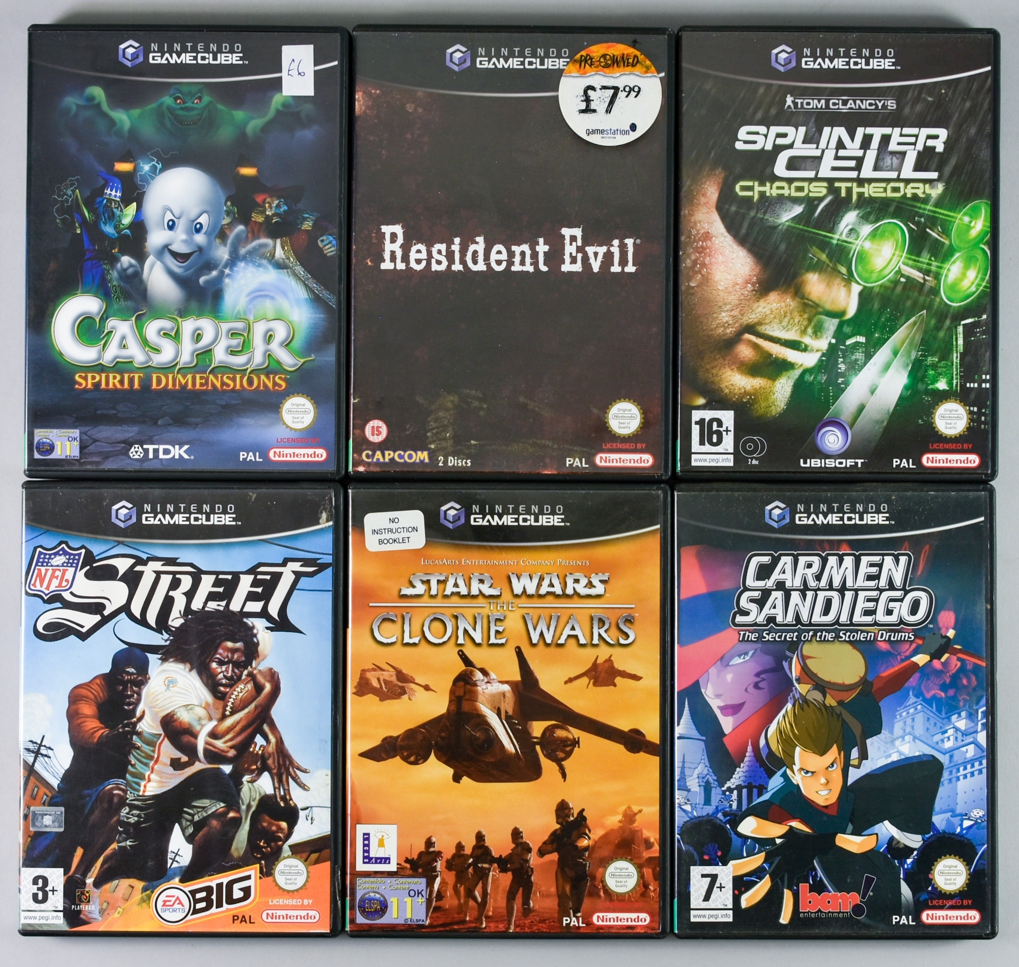 Nintendo GameCube Forty Games - "Resident Evil", "Tom Clancy's Splinter Cell: Chaos Theory", "Star Wars: The Clone Wars", "Casper: Spirit Dimension", "NFL:Street" and 35 others, various, all in original boxes and most with manuals