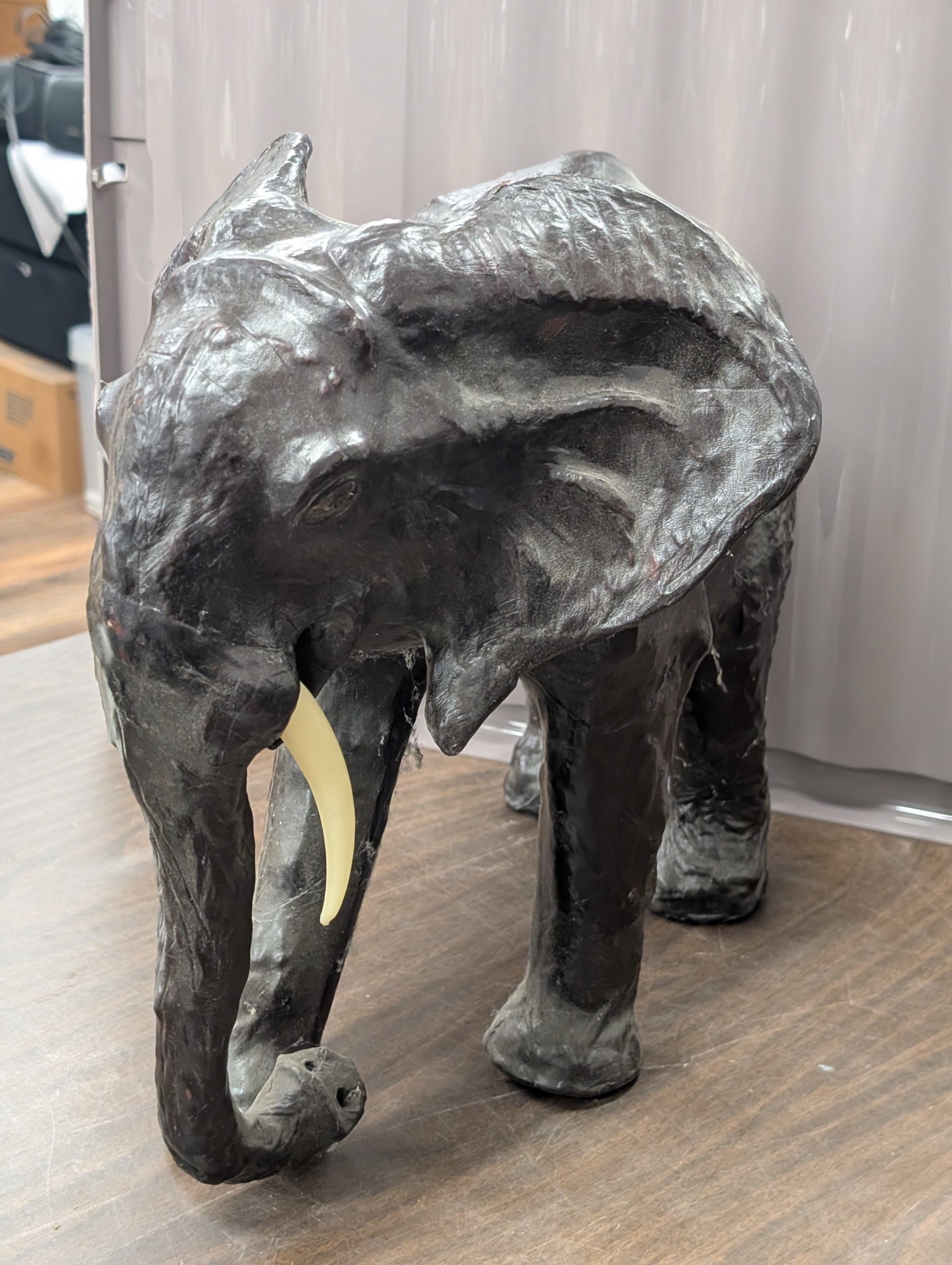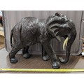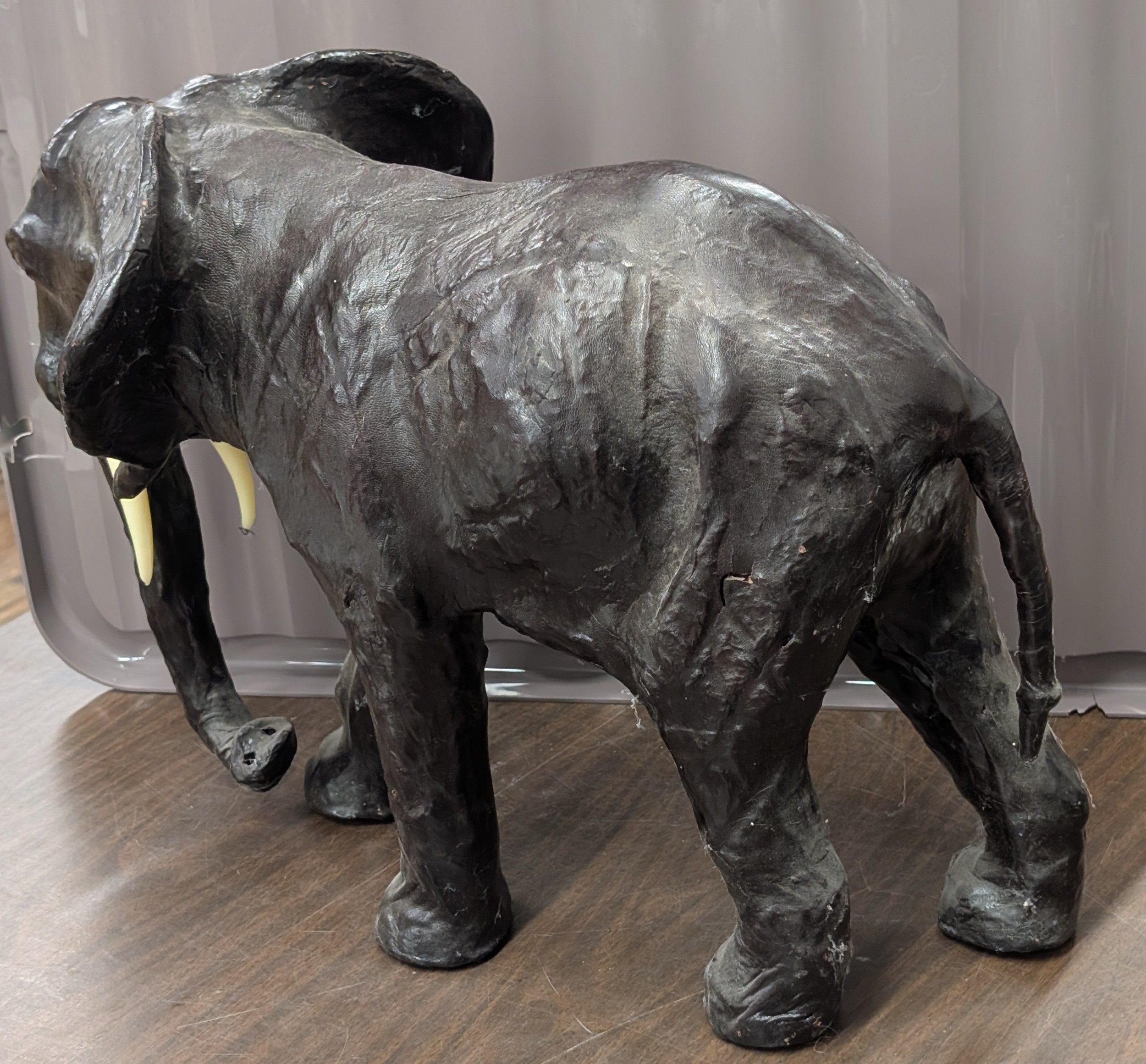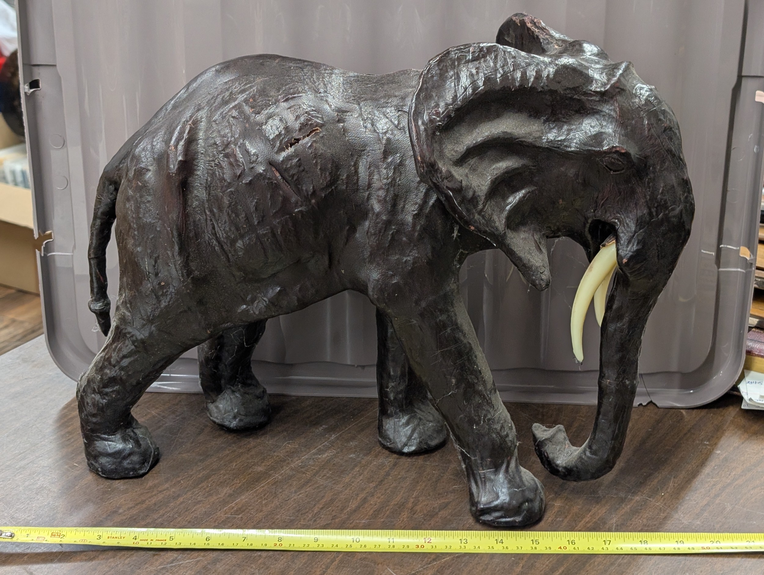 Approx. 19" Long & 14" Tall Vintage Leather-Clad Elephant Sculpture
