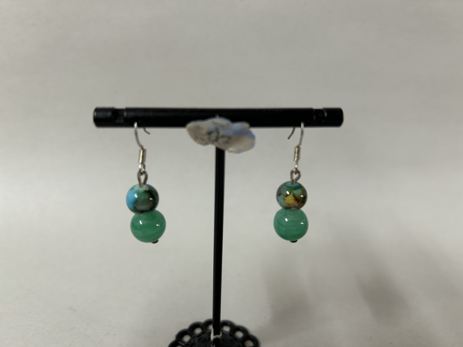 925 Silver & Green & Harlequin Malay Jade Earrings