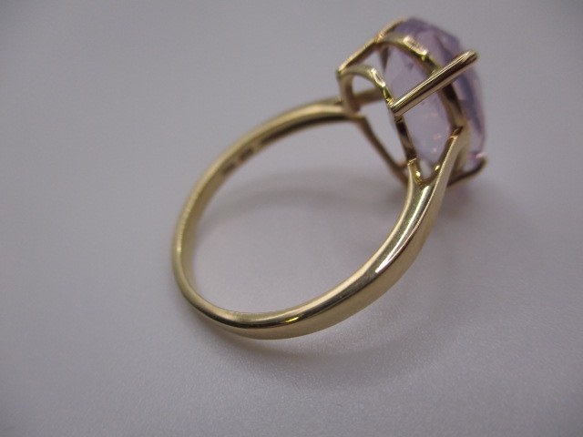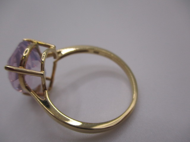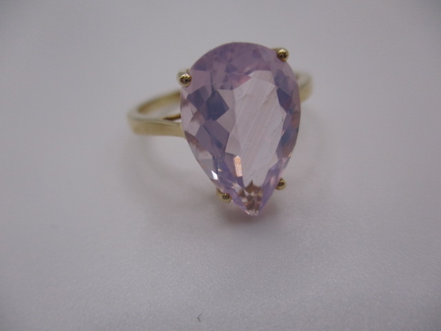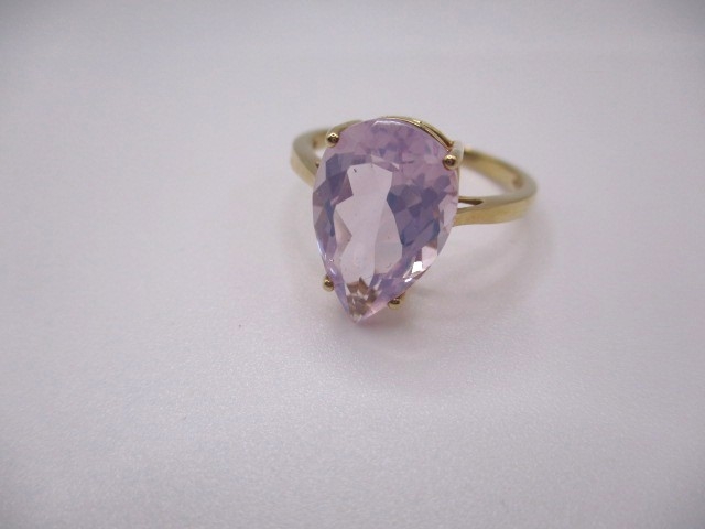 A 10k yellow gold dress ring, with large pear shape Kunzite stone, approx ring size ‘S’, approx weight 3g, in good pre-owned condition