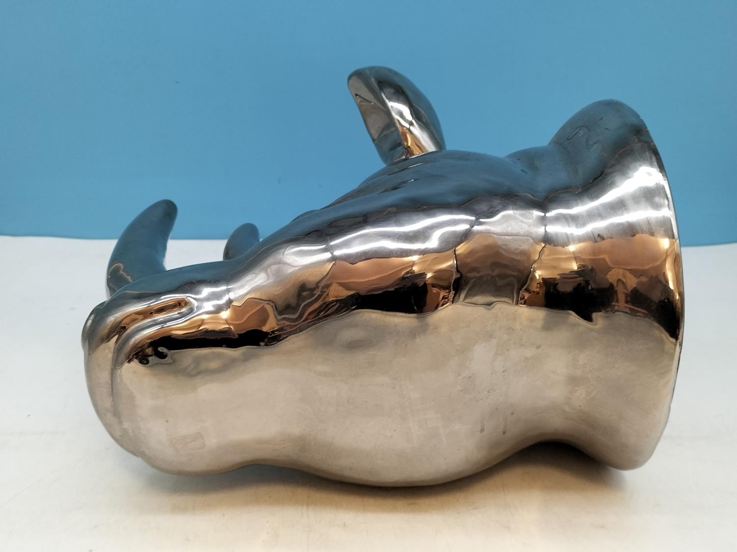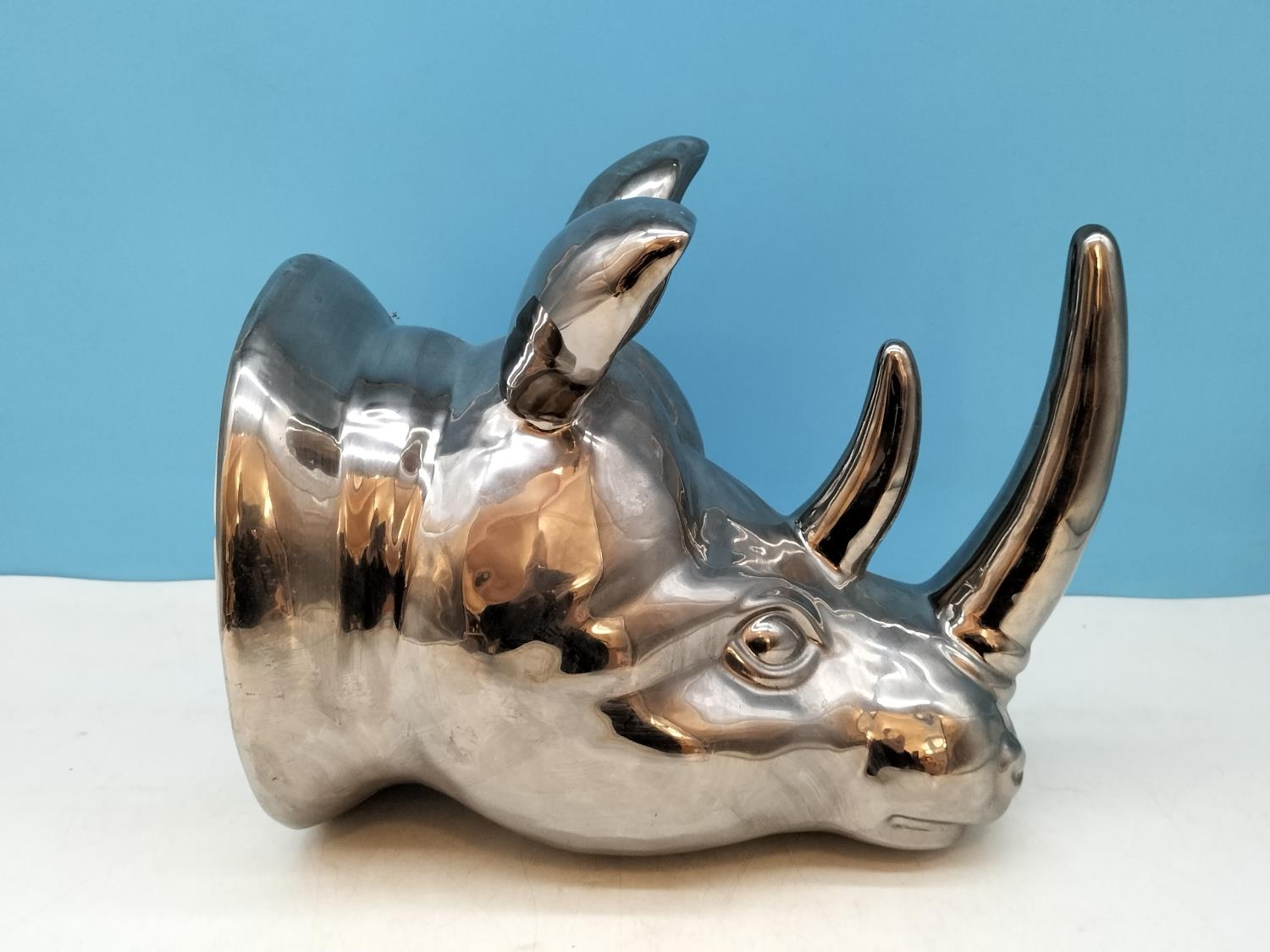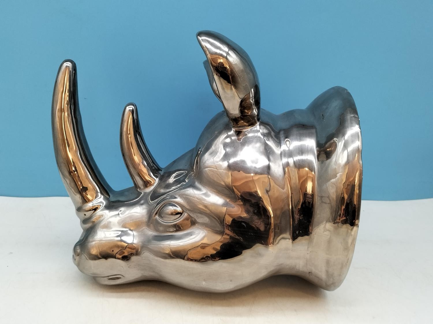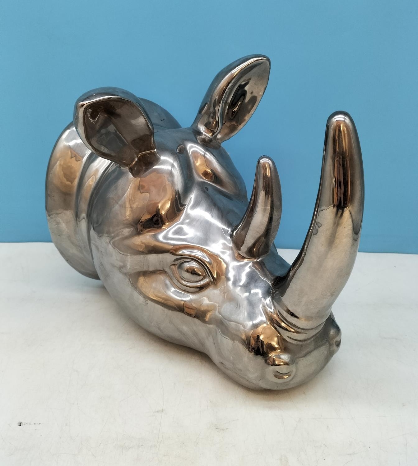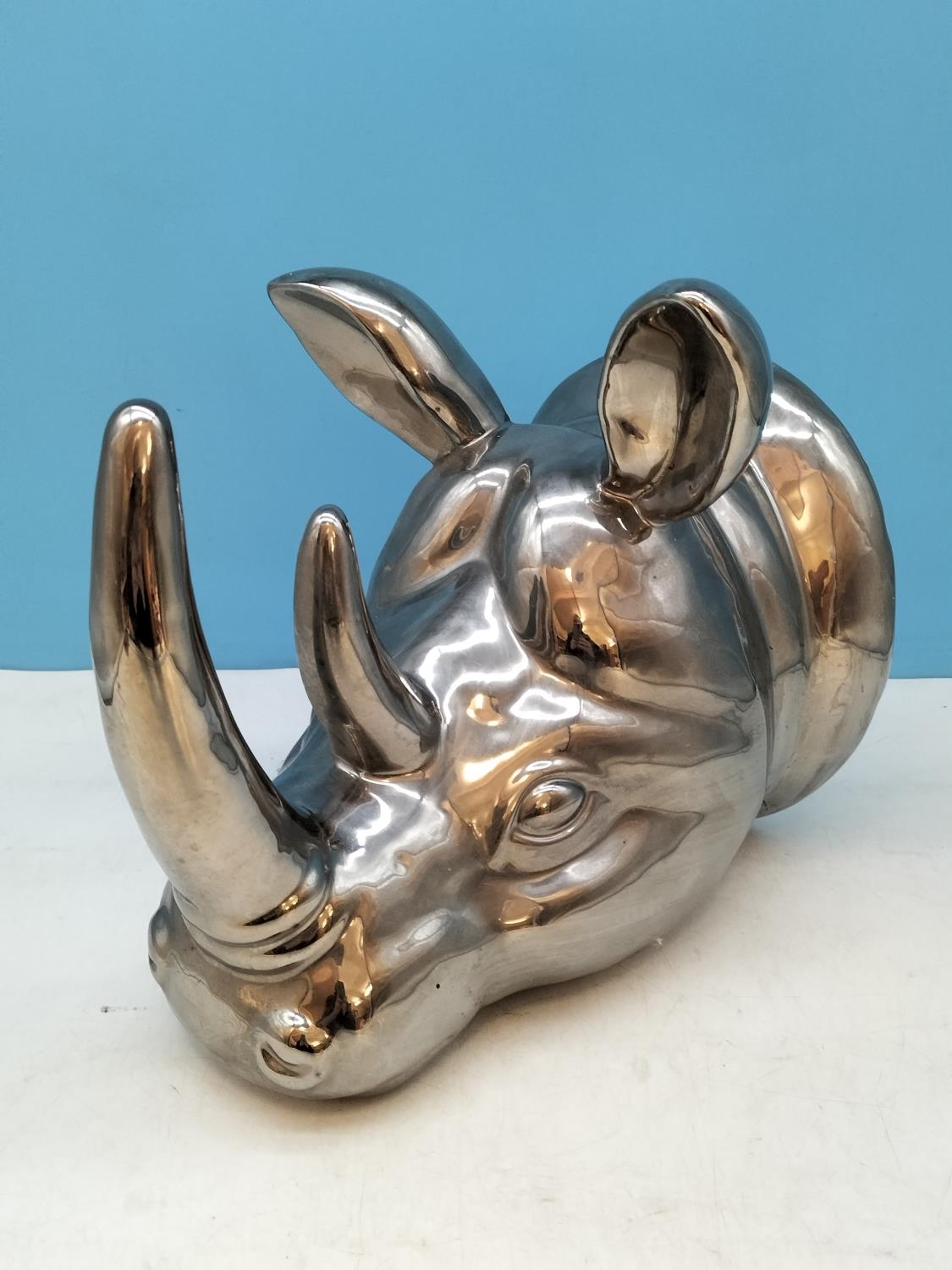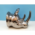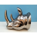 Silver Tone Wall Mounted Rhinocerous Head. 30cm x 25cm.