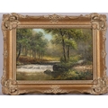 William Mellor (1851 - 1931), river scene, oil on board, 18cm x 27cm, framed