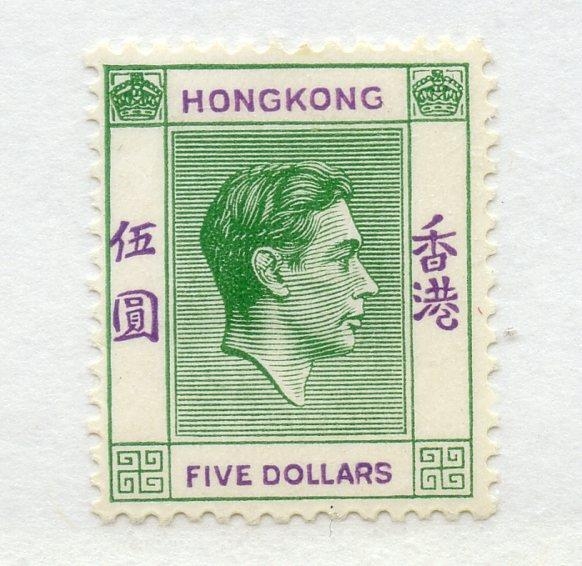 HONG KONG 1938 - 52 $5 green and violet chalky paper mint. SG 160. Cat £80.