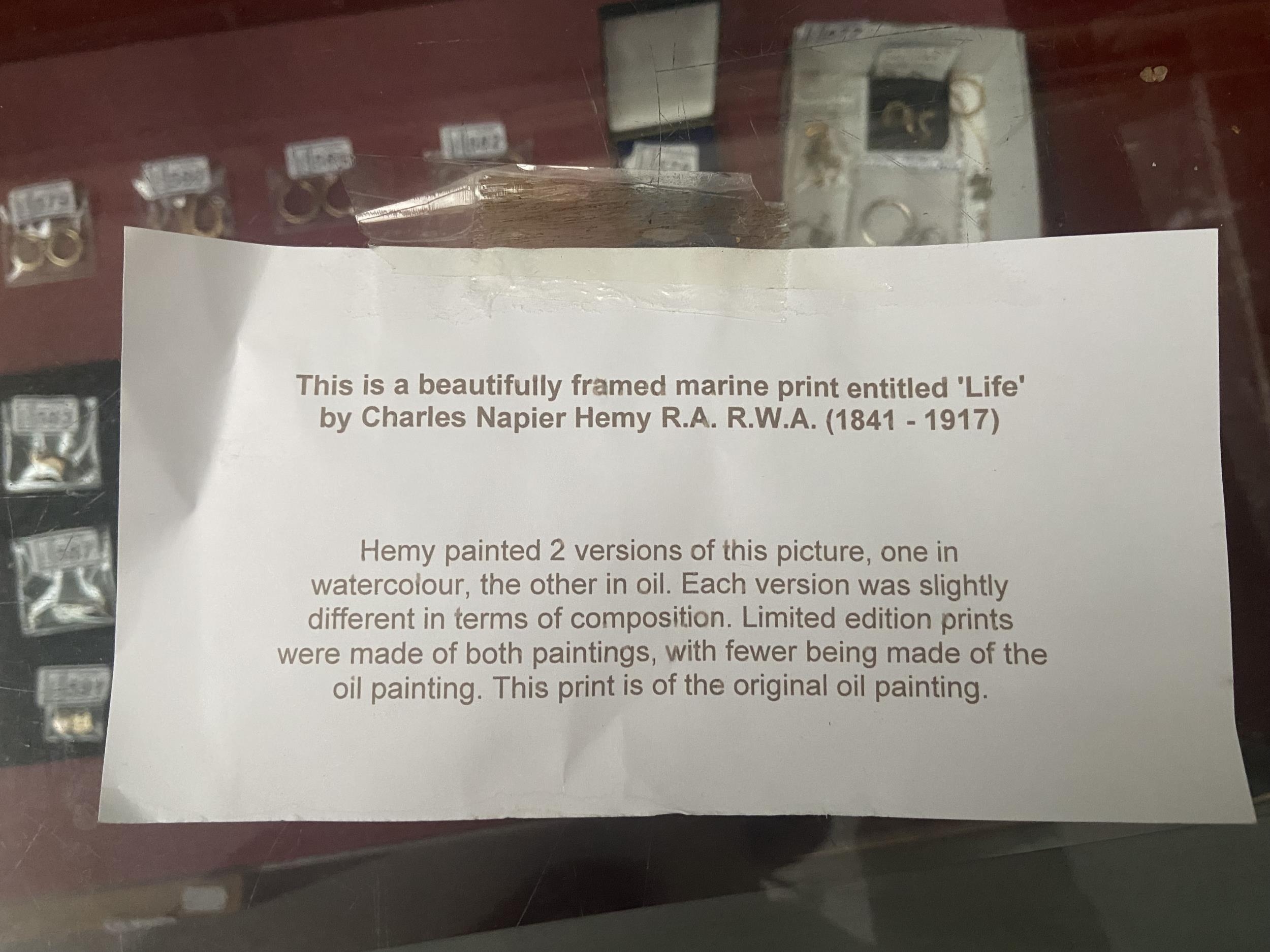 Framed and glazed marine print entitled 'Life' by Charles Napier Hemy