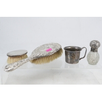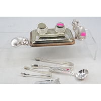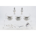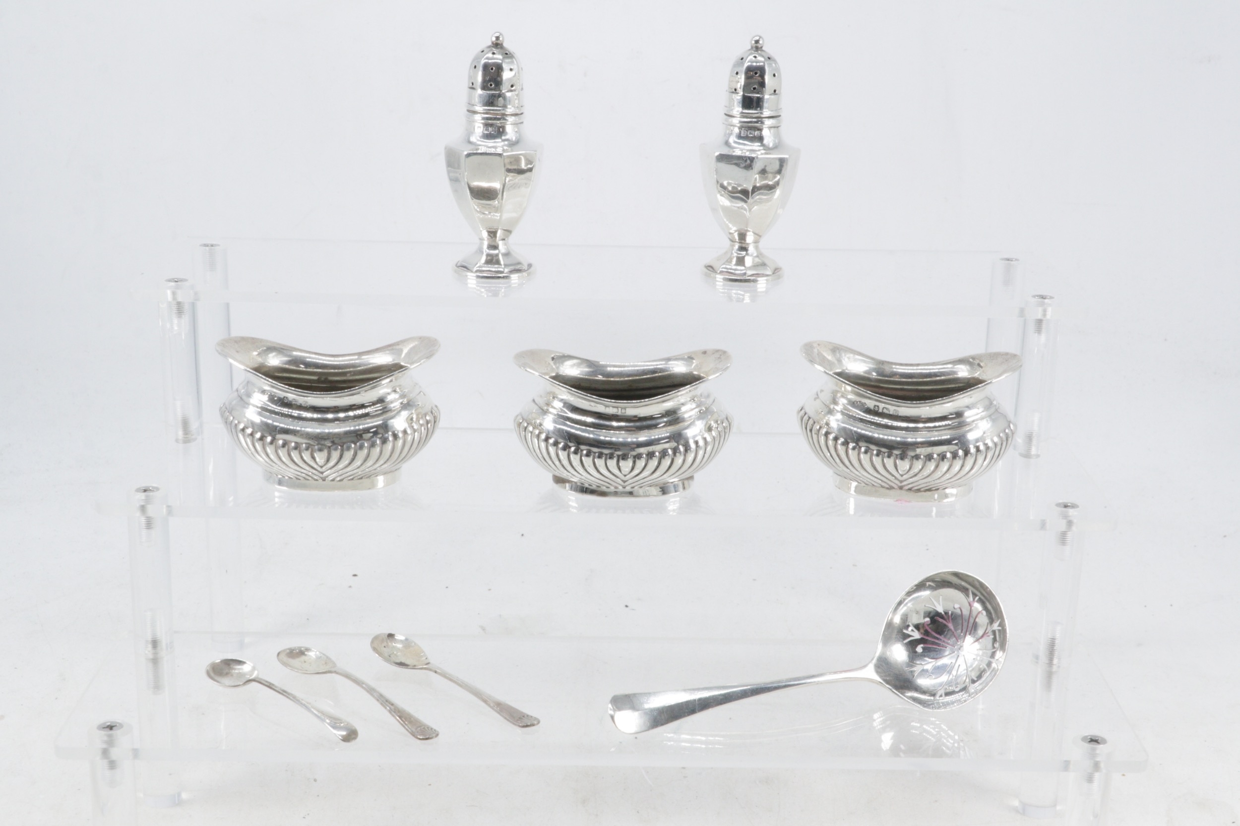 Silver hallmarked pepperettes, three silver salts and a silver sifter spoon (weight approx. 155g)