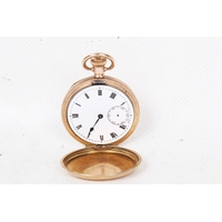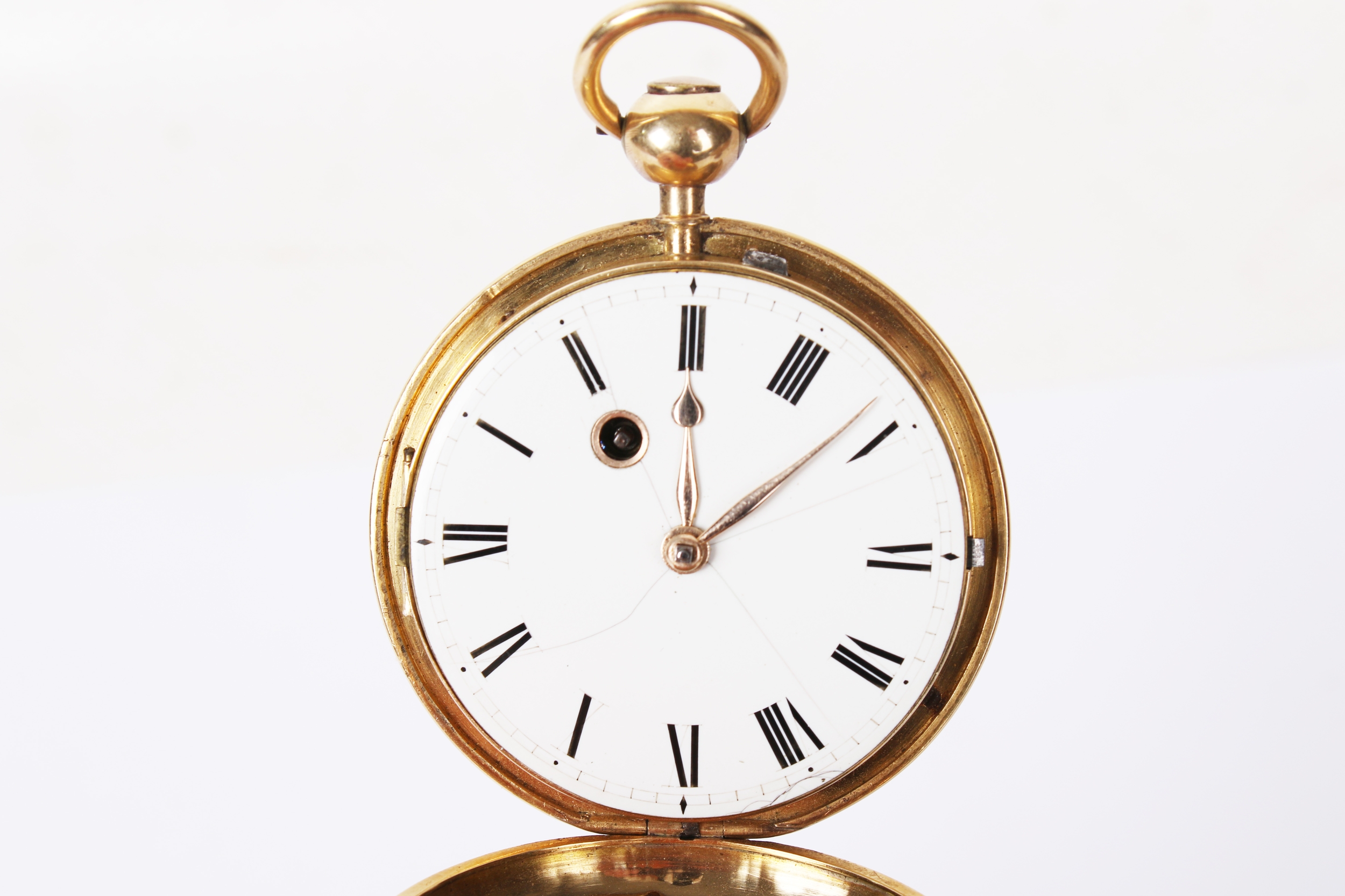 An 18ct gold full hunter pocket watch. The white enamel dial with Roman numerals, key movement, case diameter, 5.6cm, gross weight 100.4g.