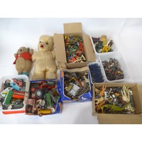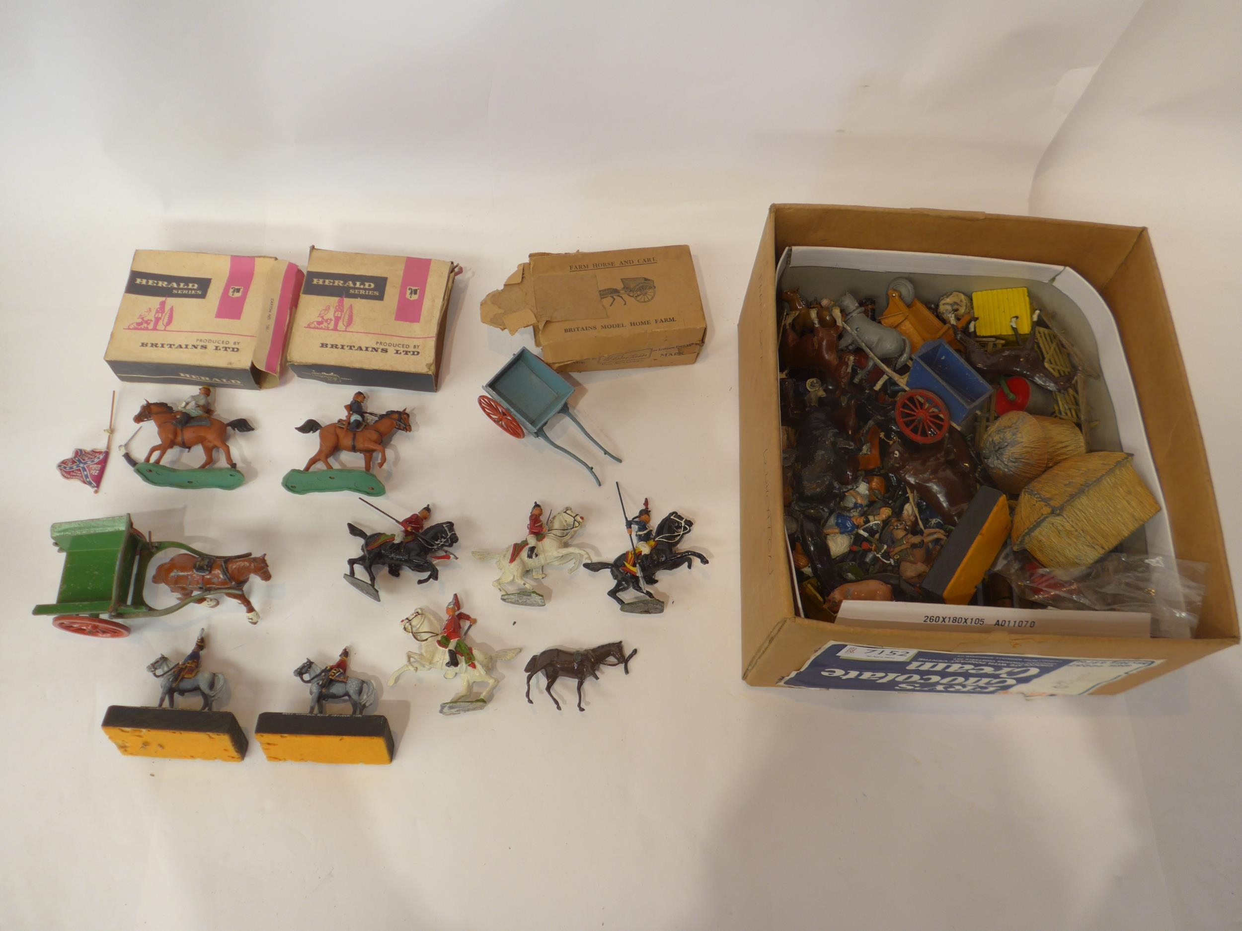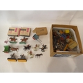 Collection of diecast metal farm related figures, mostly Britains, includes people, animals, buildings, tools, etc.