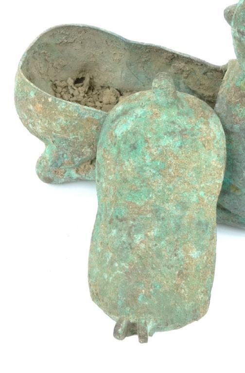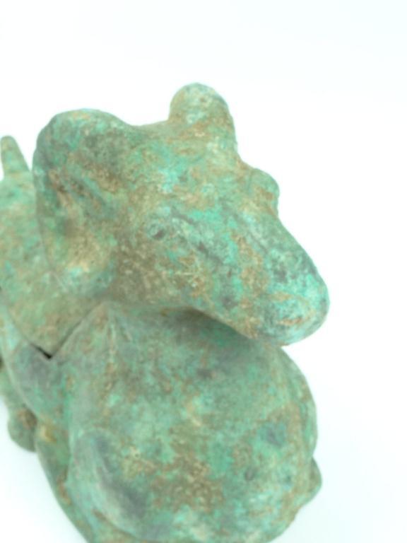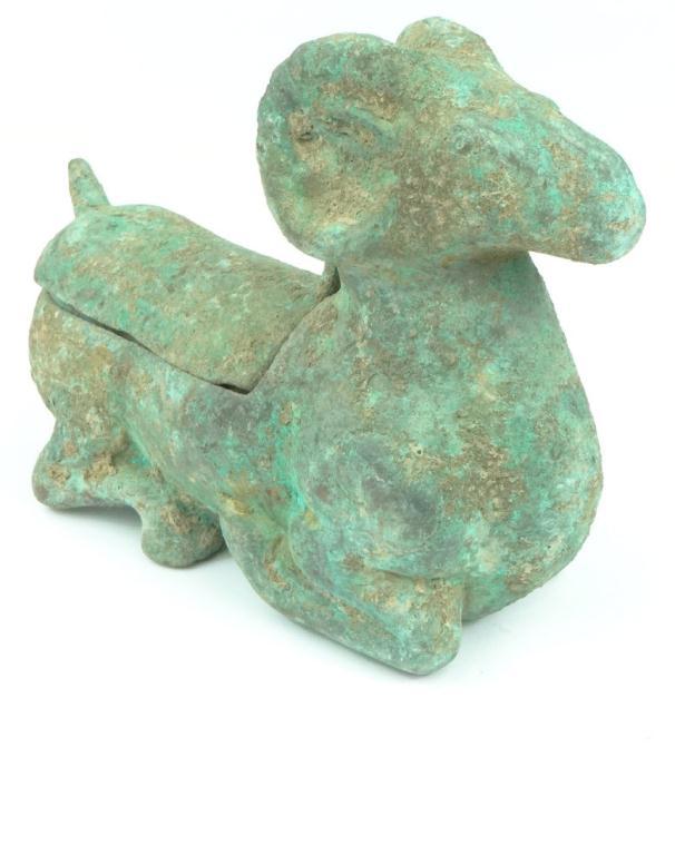 Chinese archaic style patinated bronze box and cover of ram form, 24cm in length