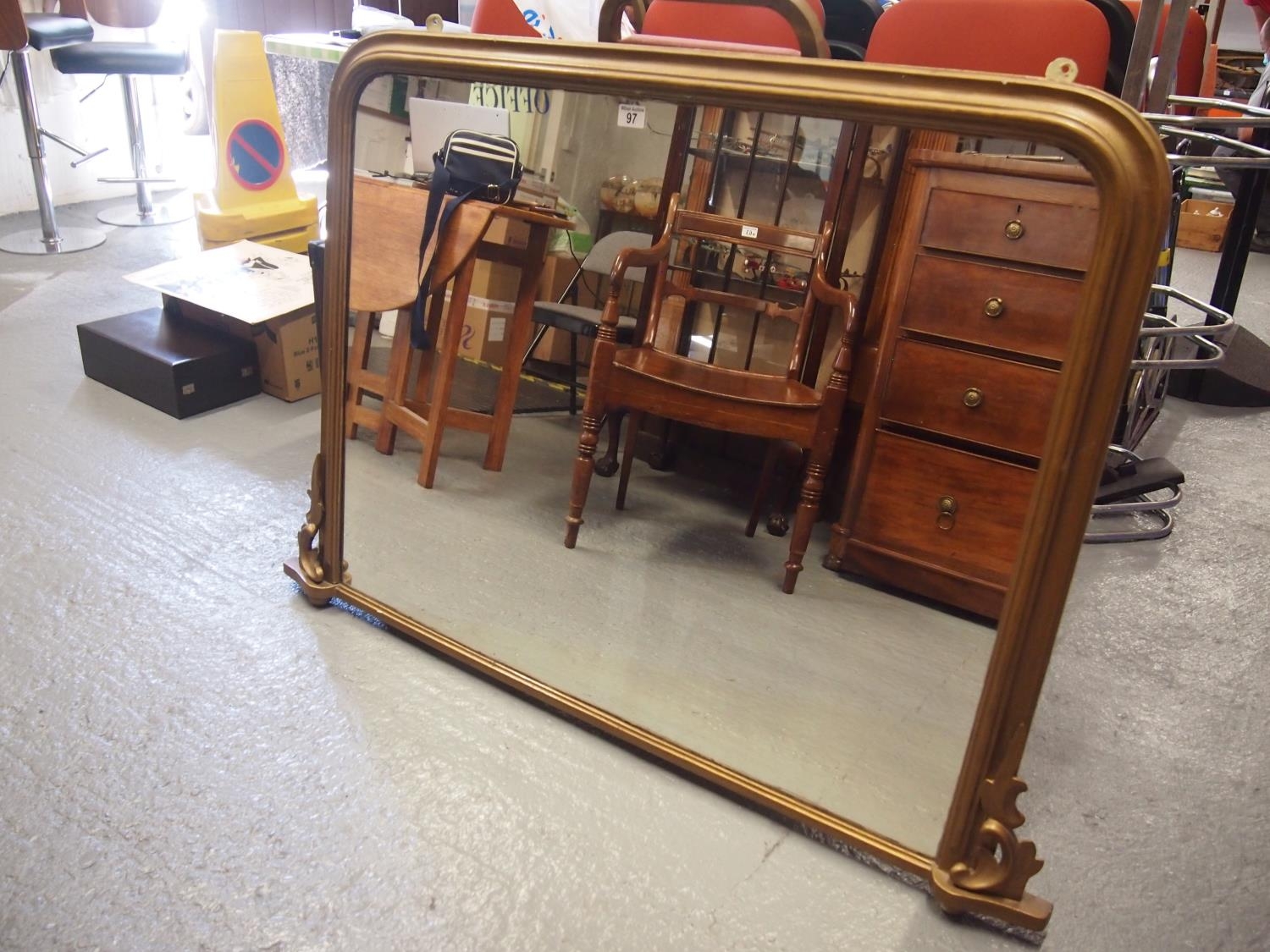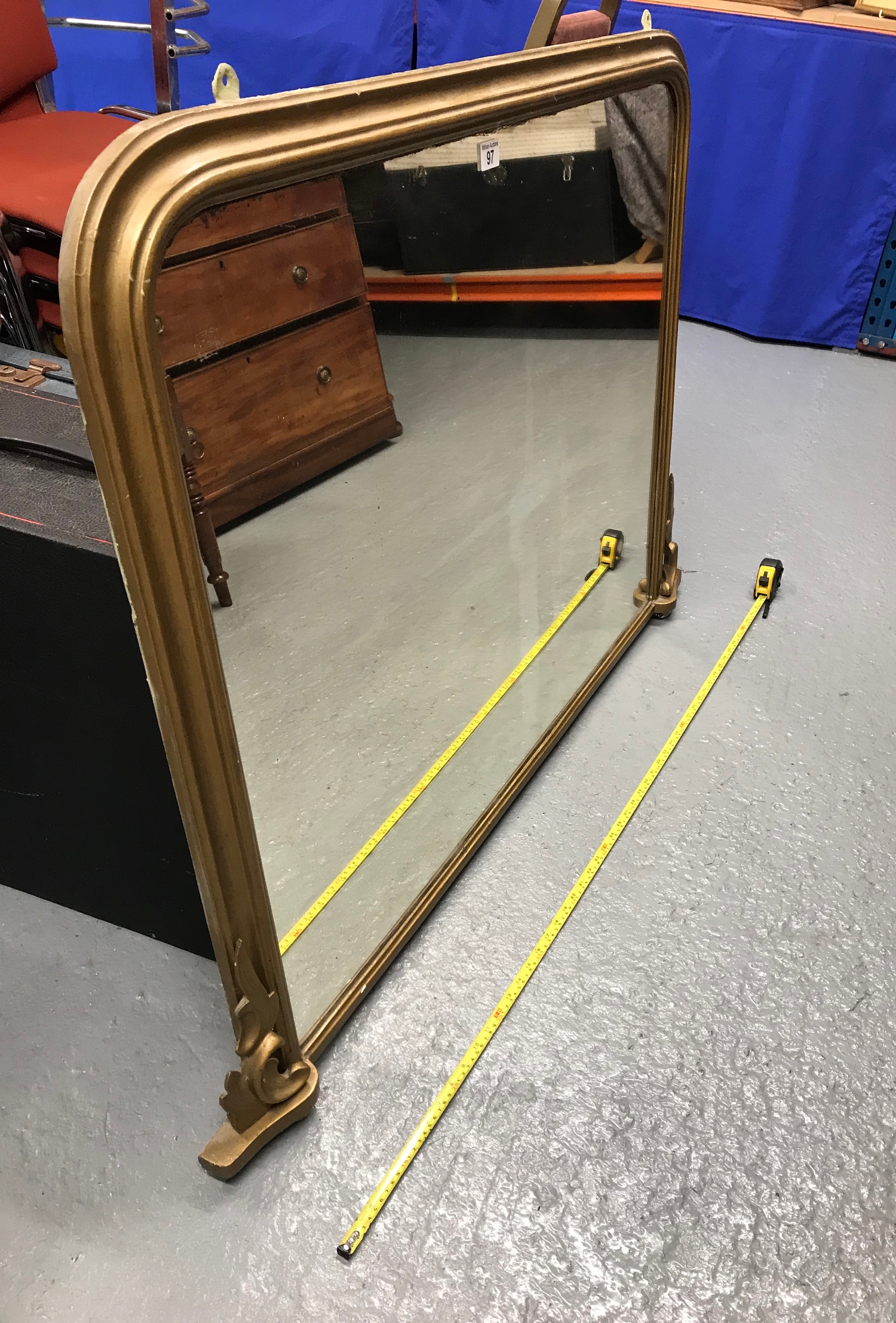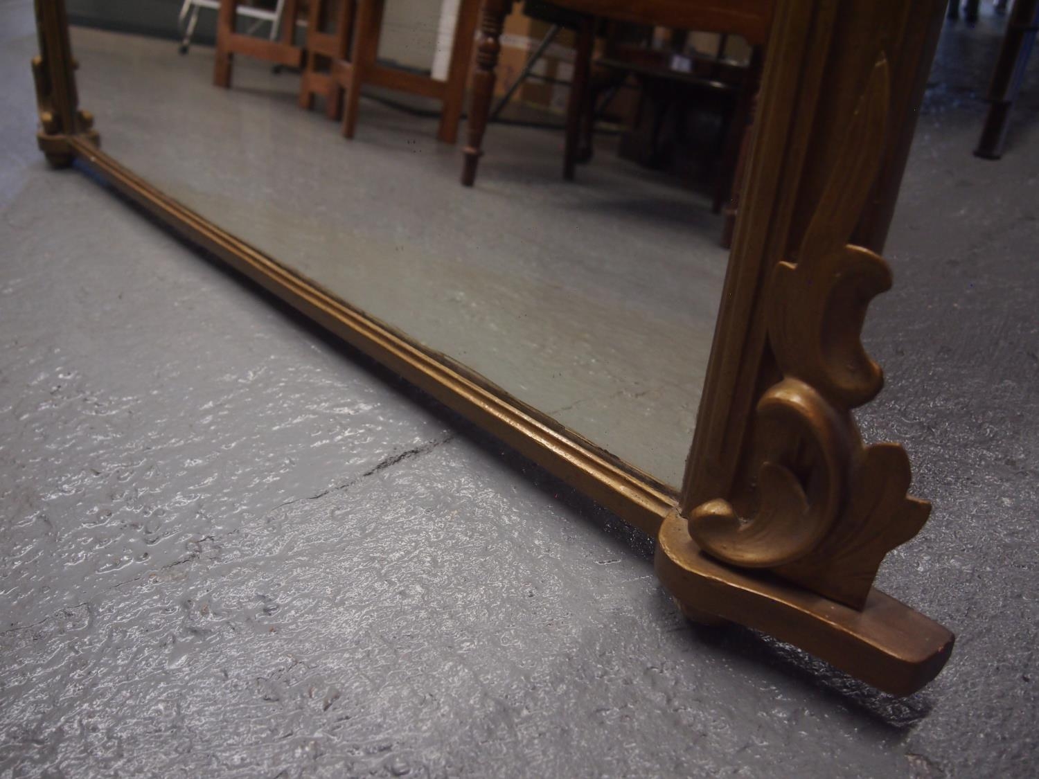 An antique giltwood framed oval mantle mirror with hand carved scroll leaf design detailing