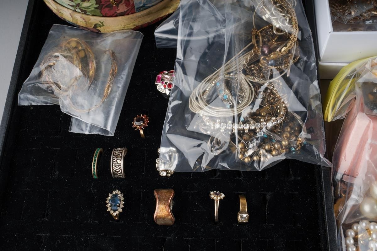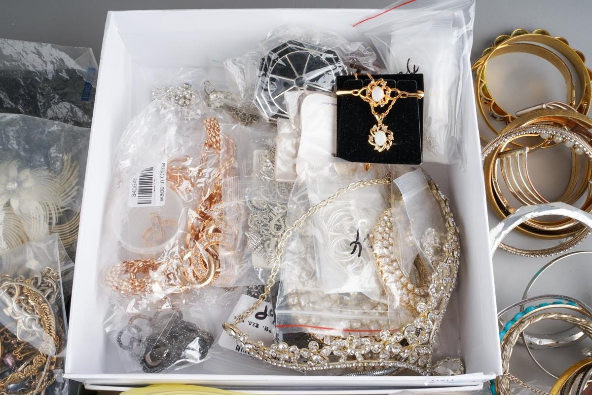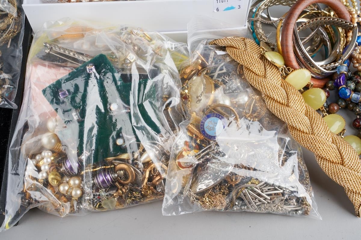 Large box of costume jewellery to include rings, necklaces, bracelets, bangles, earrings, epns nurses blet etc