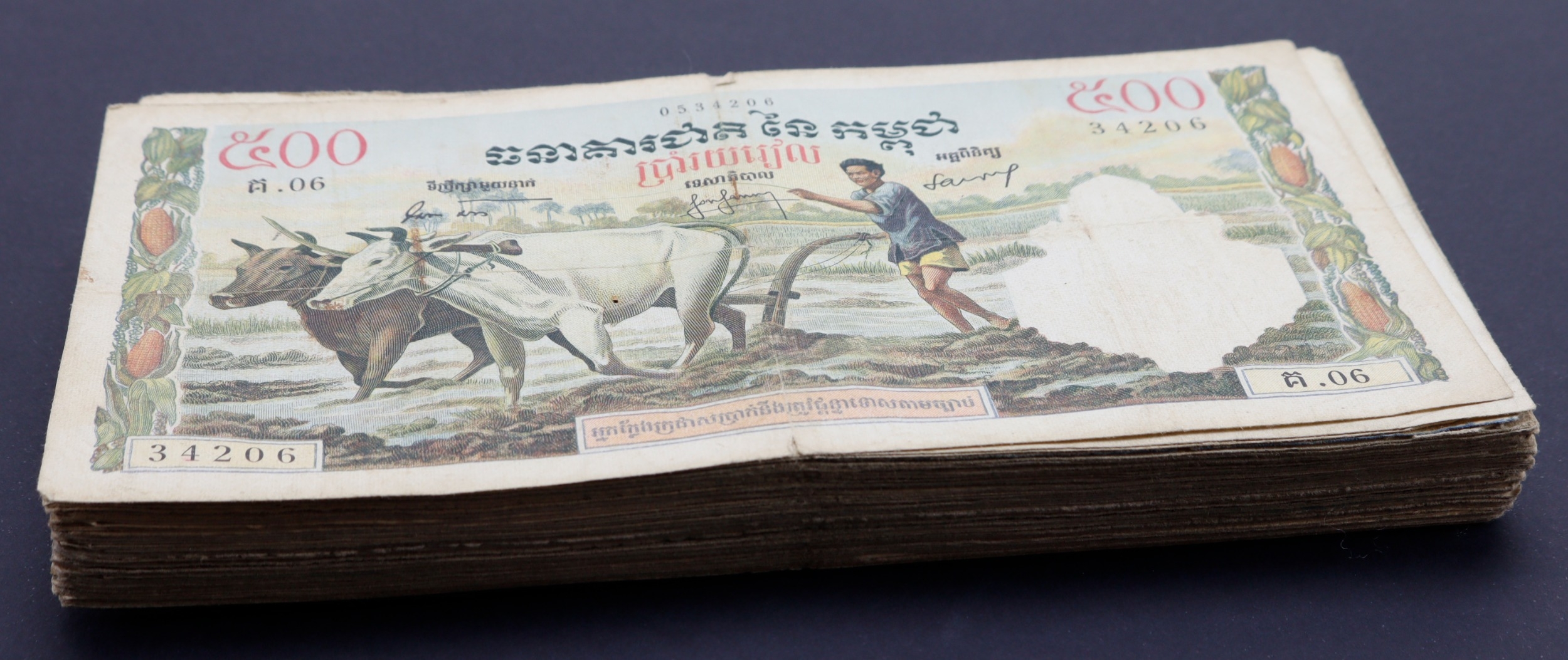 Cambodia 500 Riels (100) issued 1958 - 1970 (BNB B114, Pick14) mixed circulated grades