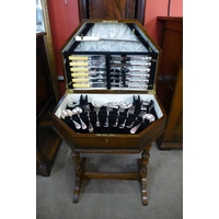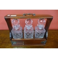 A mahogany tantalus, with three glass decanters
