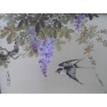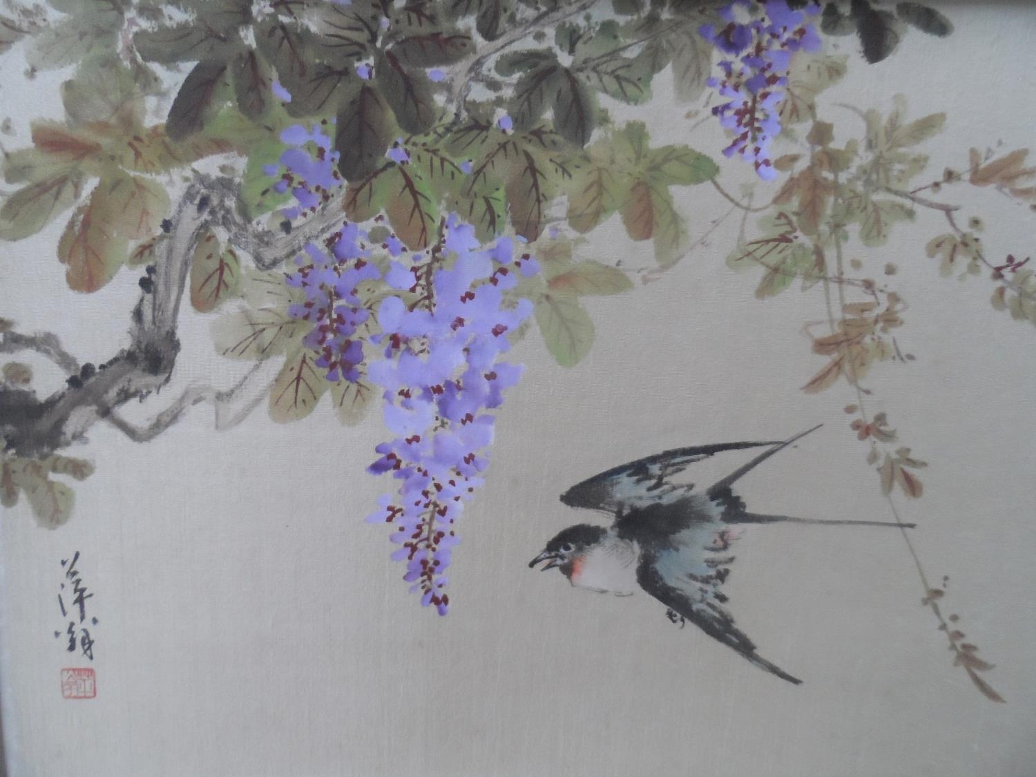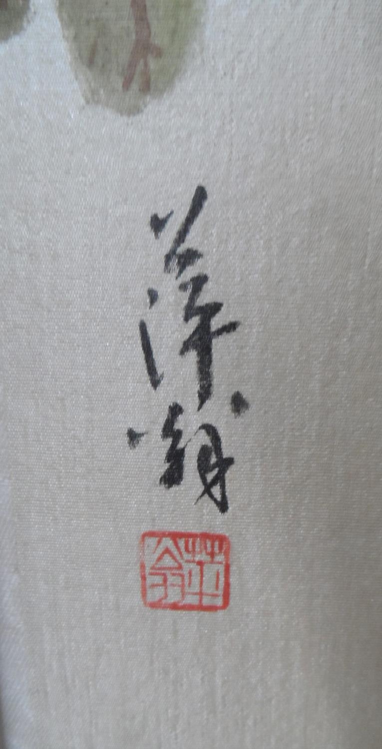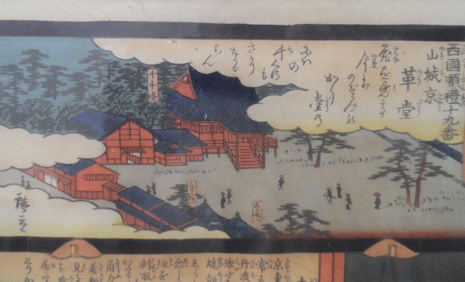 Signed antique Japanese woodblack print together with a signed Japanese watercolour (2)