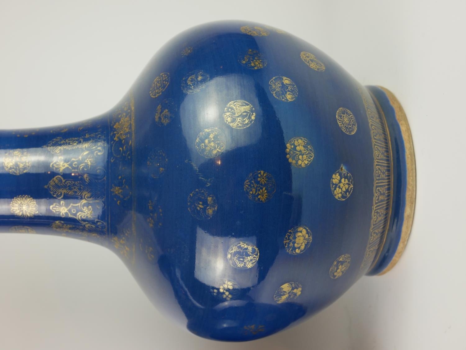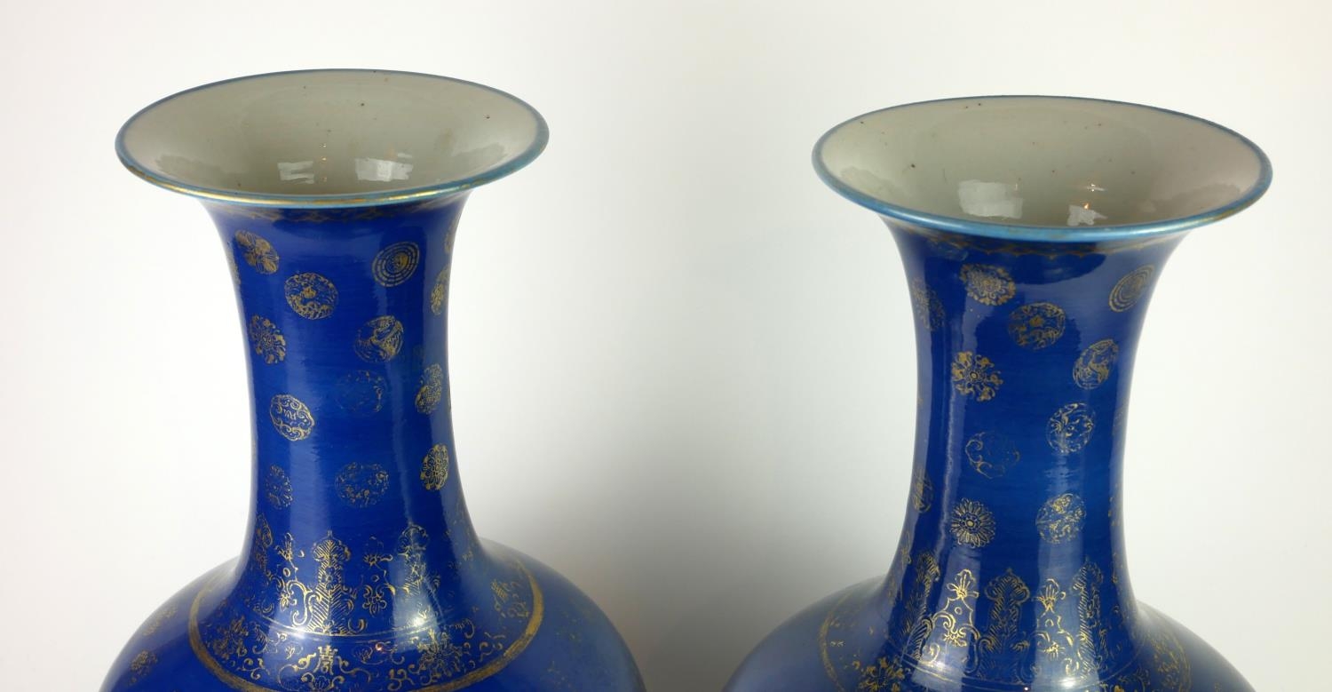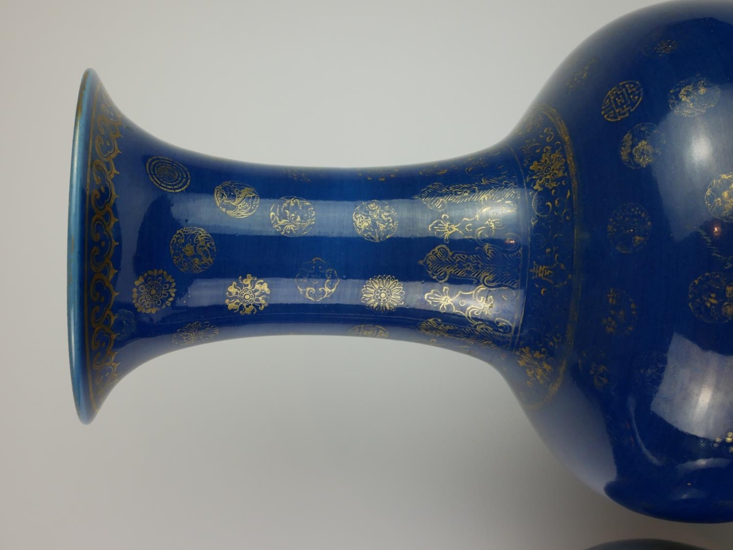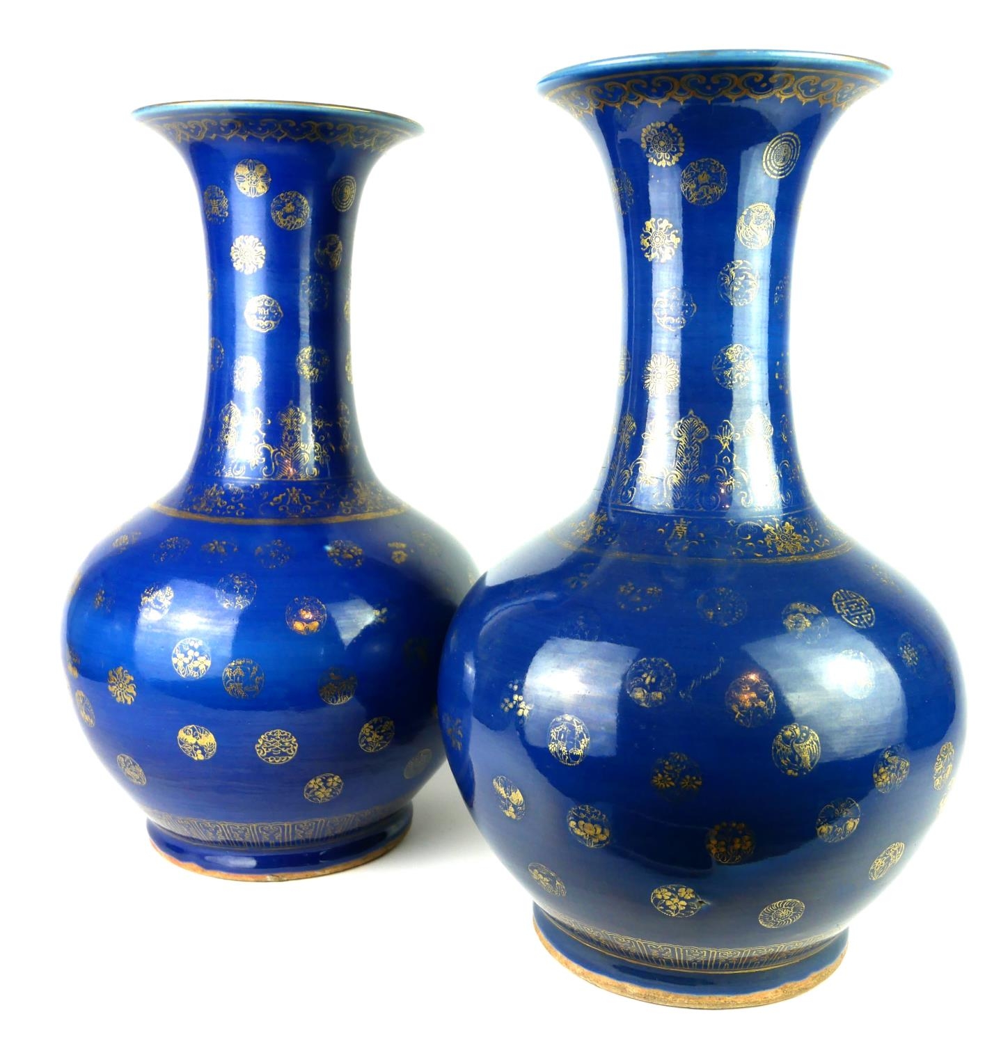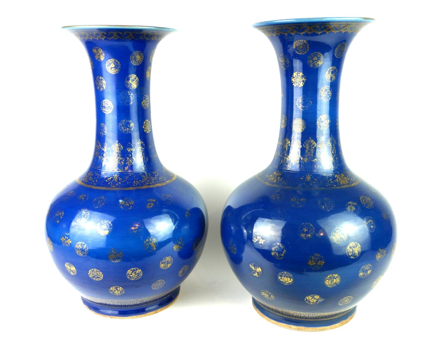 Powder blue with gilt decoration of Buddhistic motifs, both bearing four character mark, one bearing original paper stock number ?198?.