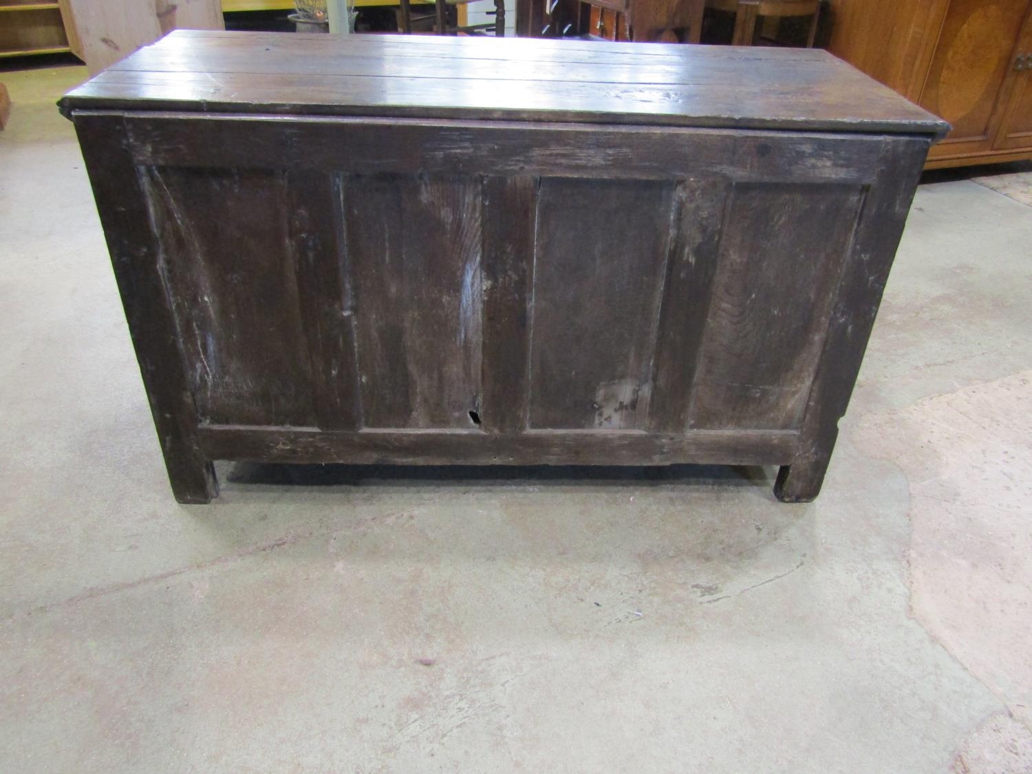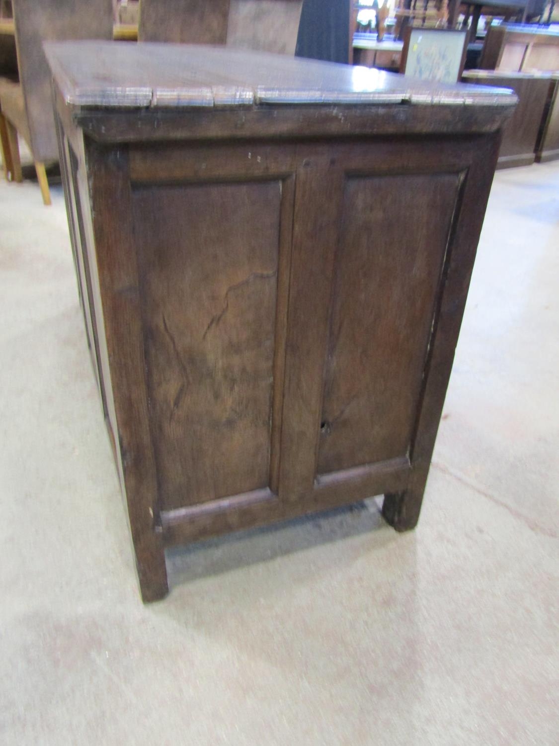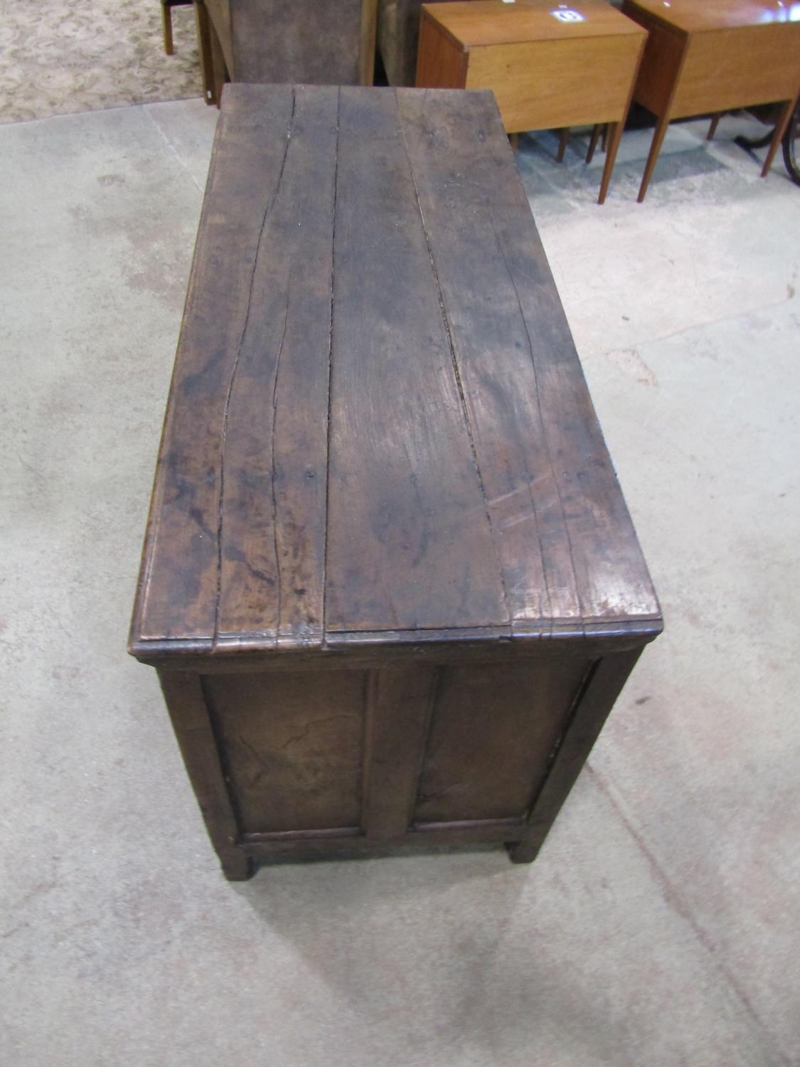 18th century oak panelled coffer, the front with four fielded panels, 130cm wide