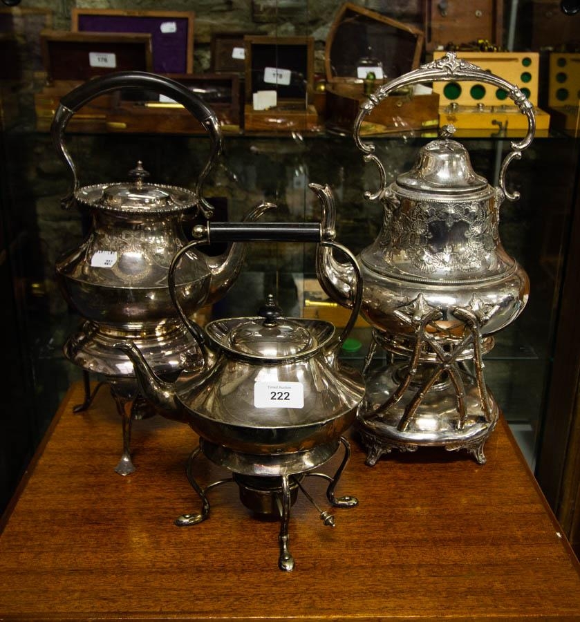3 SILVER PLATED SPIRIT KETTLES