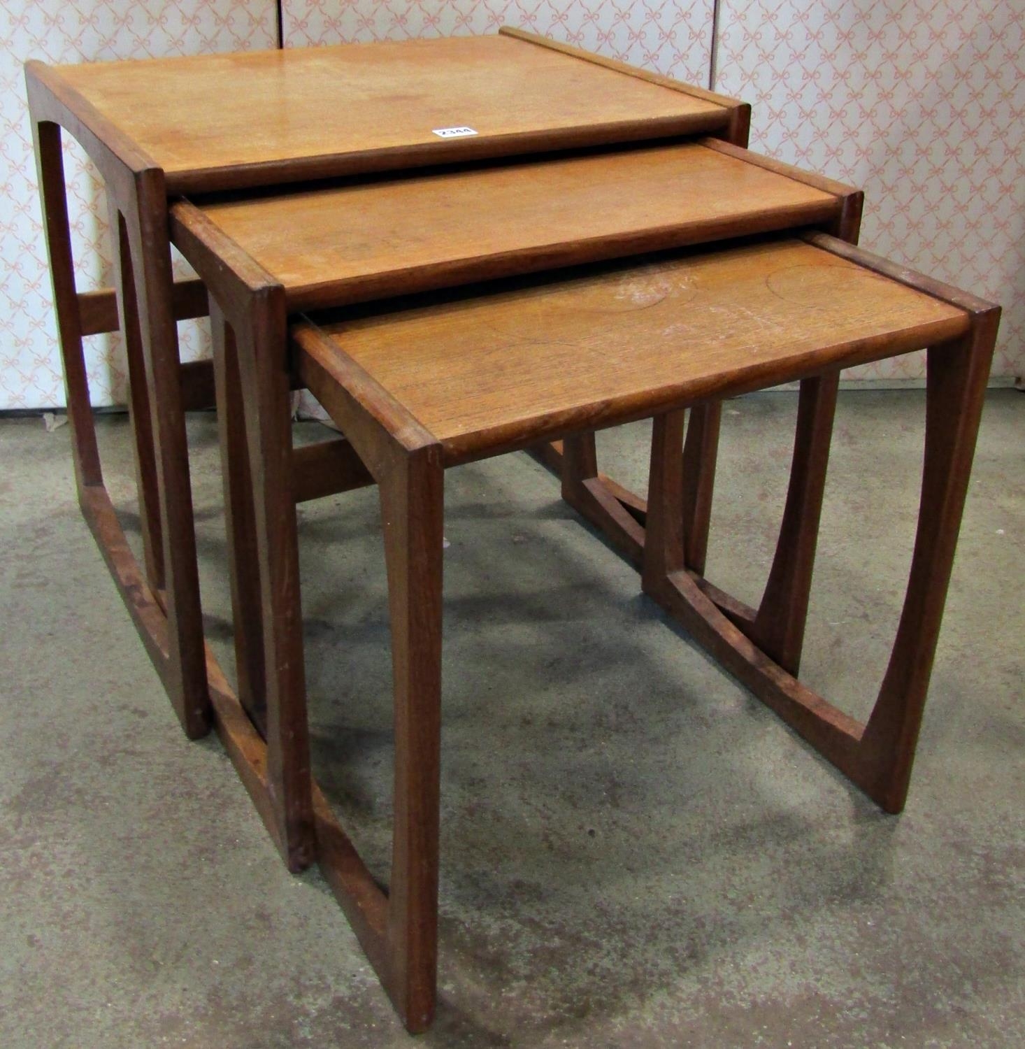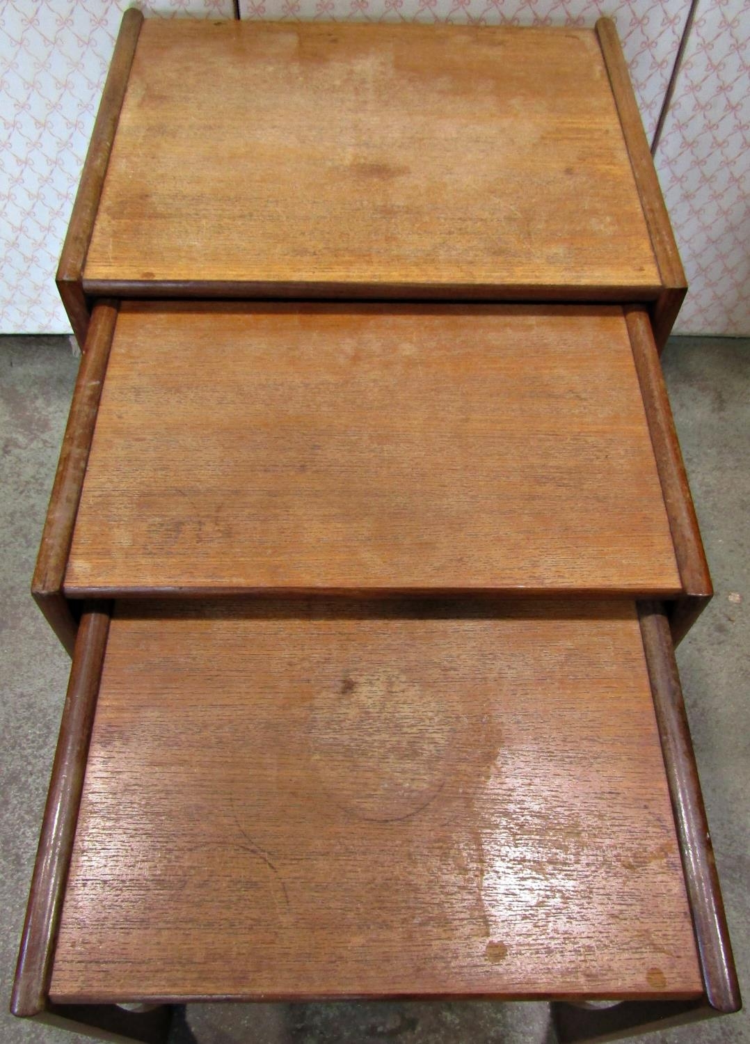 A graduated nest of three teak occasional tables, 53cm wide and smaller