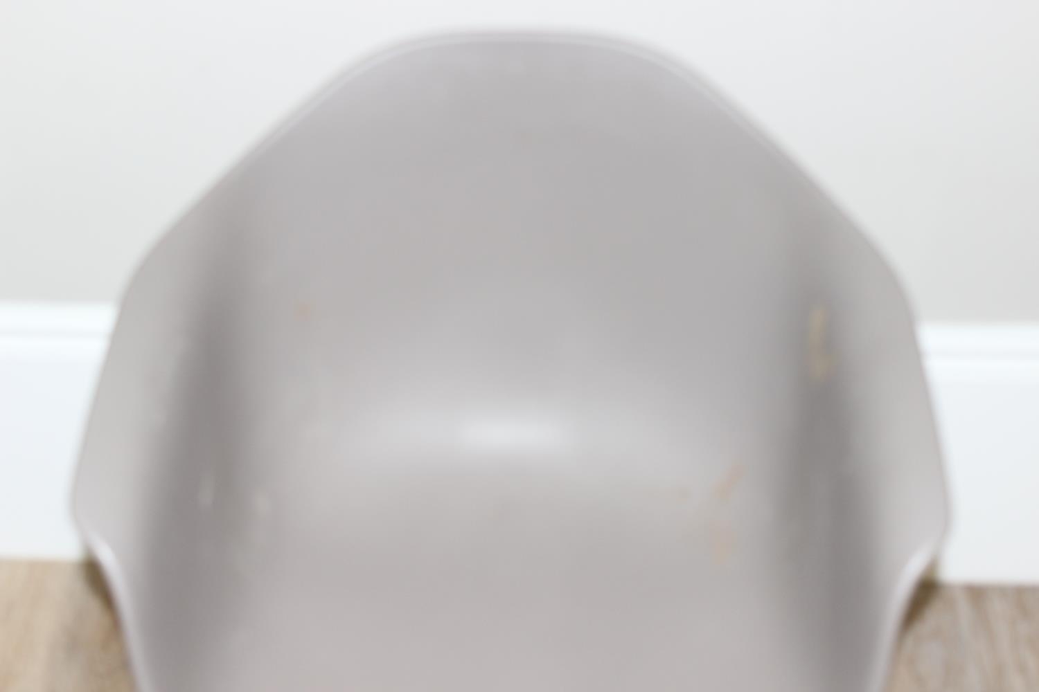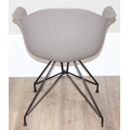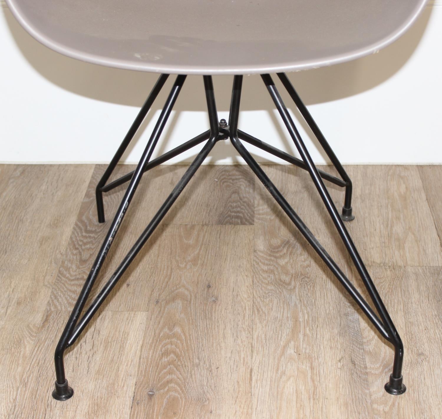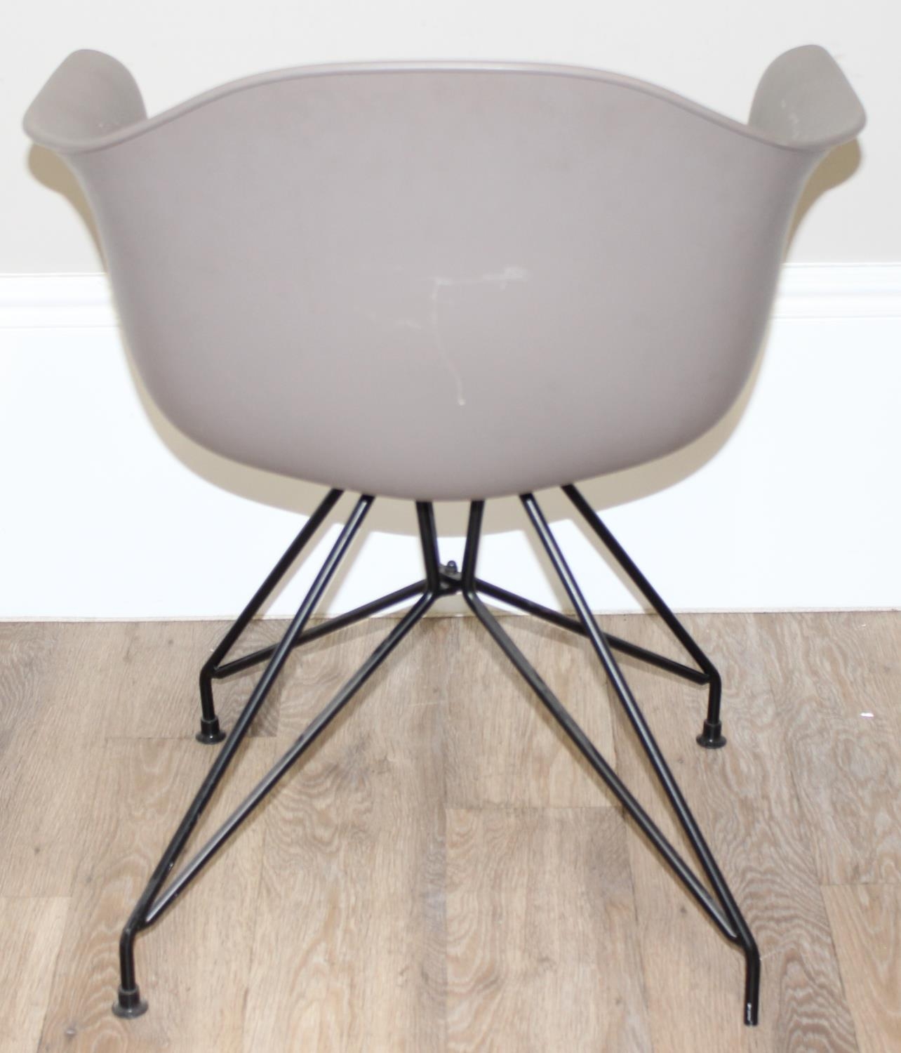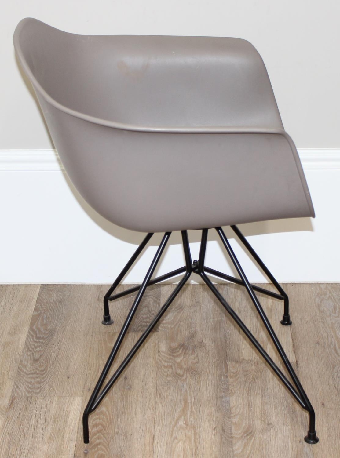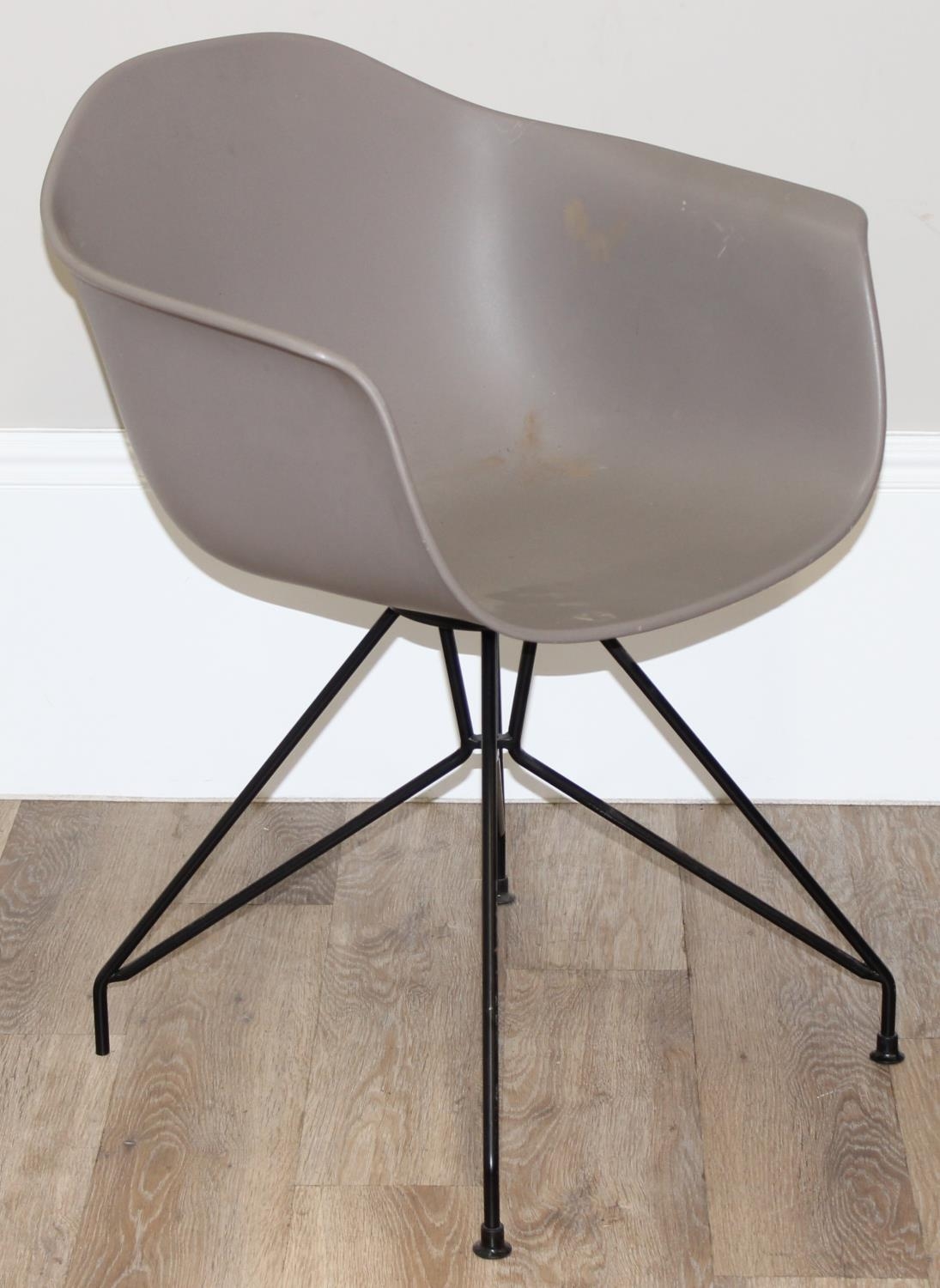 A retro style plastic moulded office chair on wirework base, approx 77cm tall