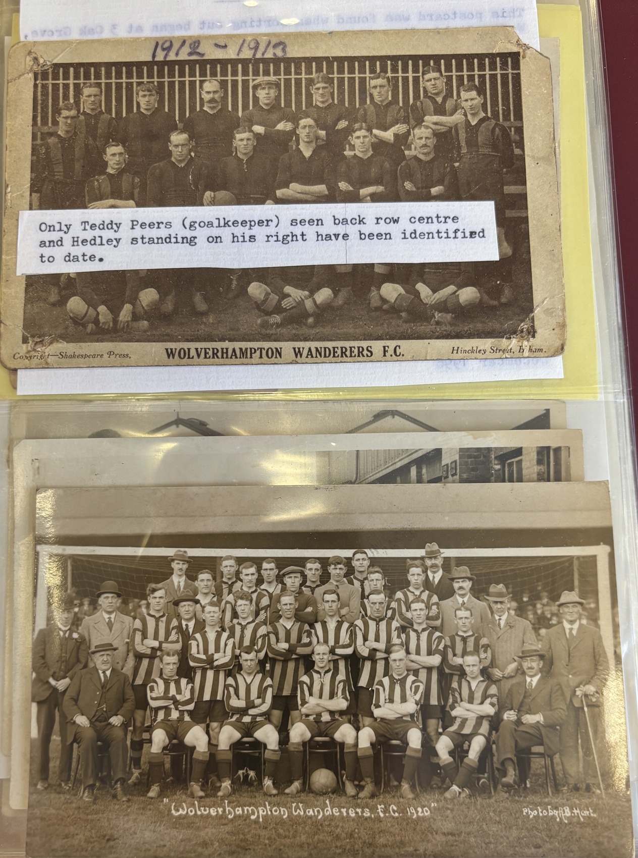 Social. Misc. coln. of vintage cards of Wolverhampton in one Lindner album, store fronts incl. Ceasers Haircutting and Shaving Saloon, Daily Citizen promotional tour, F.W. Bradford & Son, Chas G Webster, Pearks Grocery Stores, Public houses incl. The Australian Inn, The Bodega, Sports Teams incl. Wolverhampton Wanderers 1912-13, 1920, 1923-24, 1925-26 and Public Transport. Qty. 62. (V)