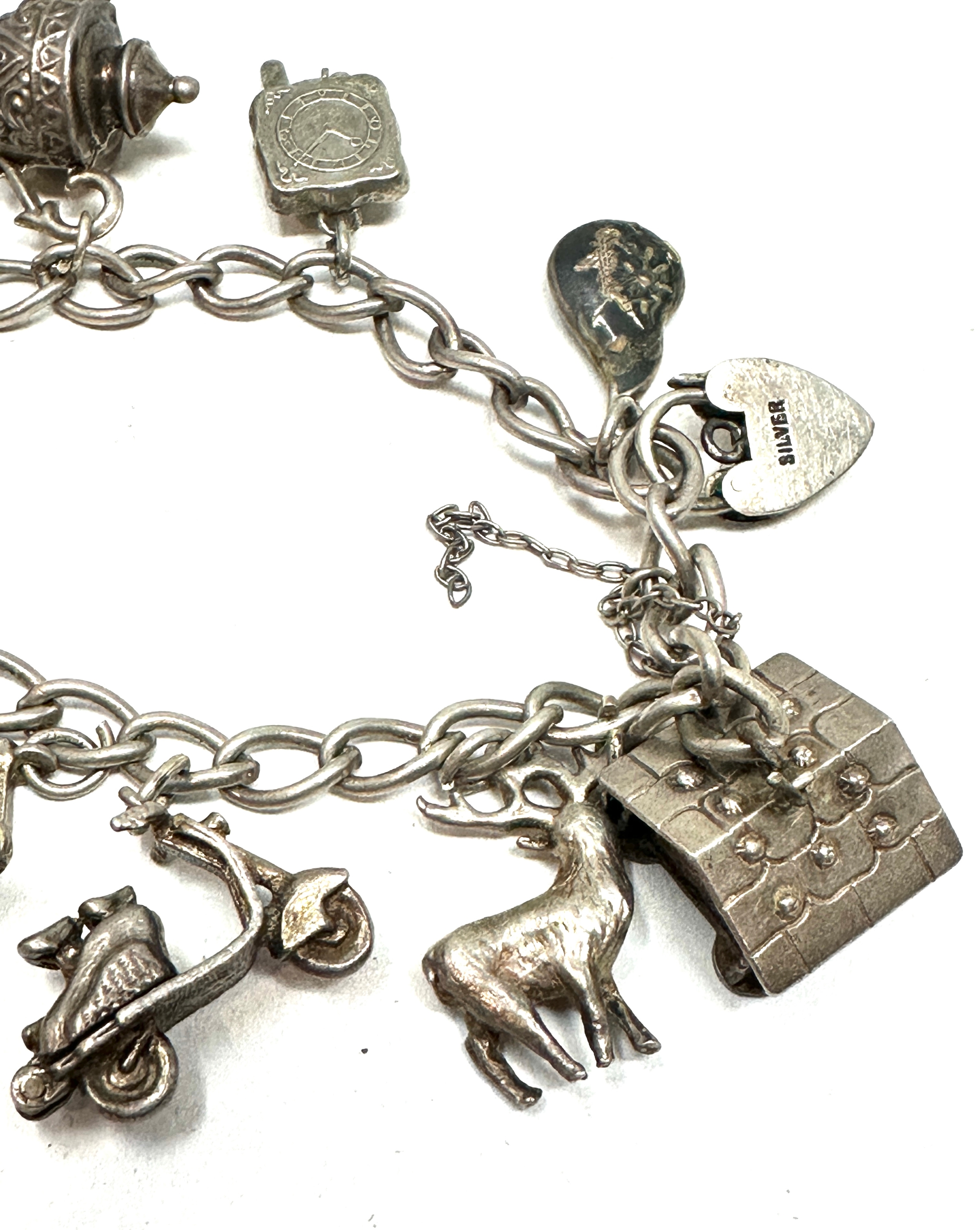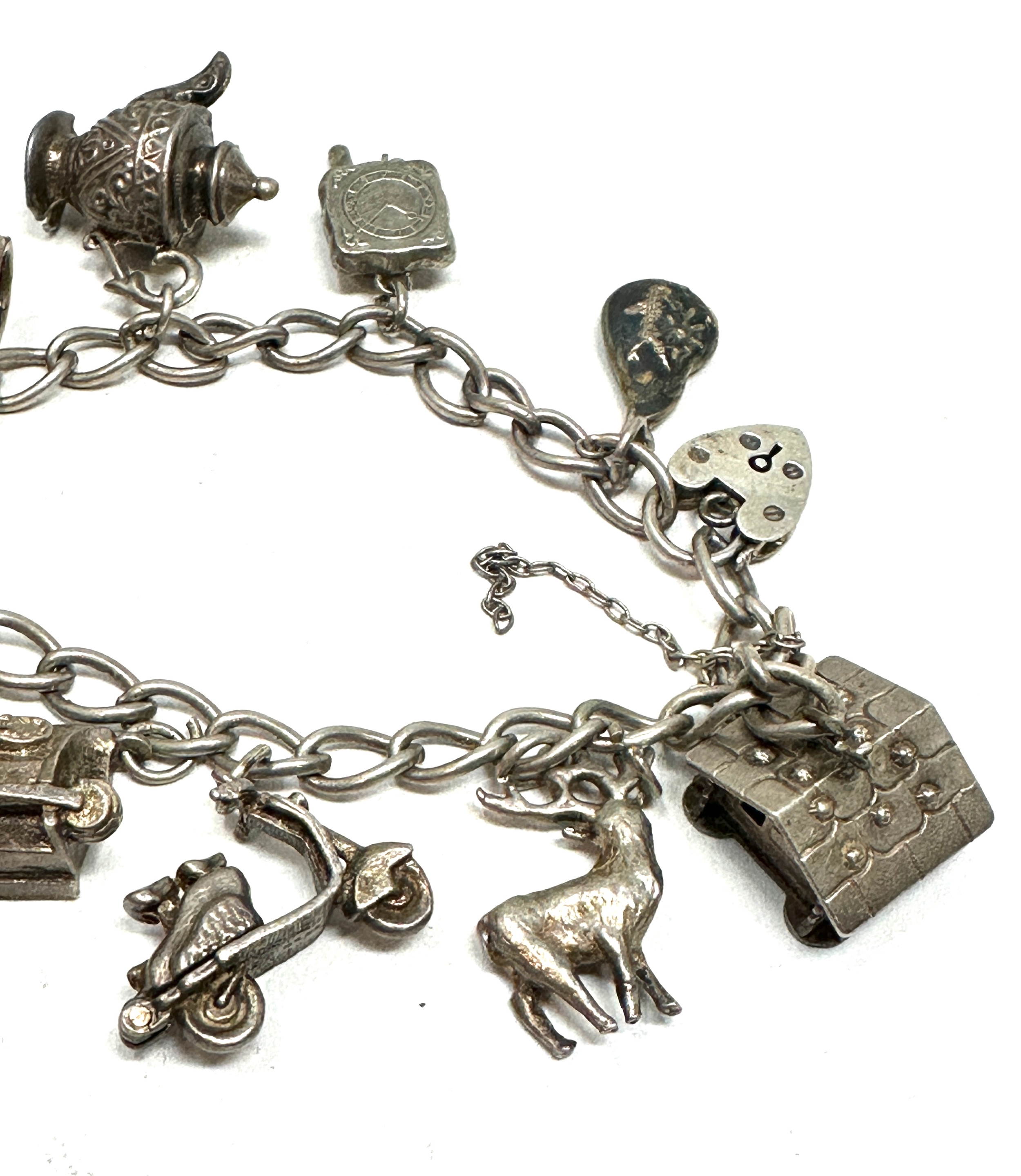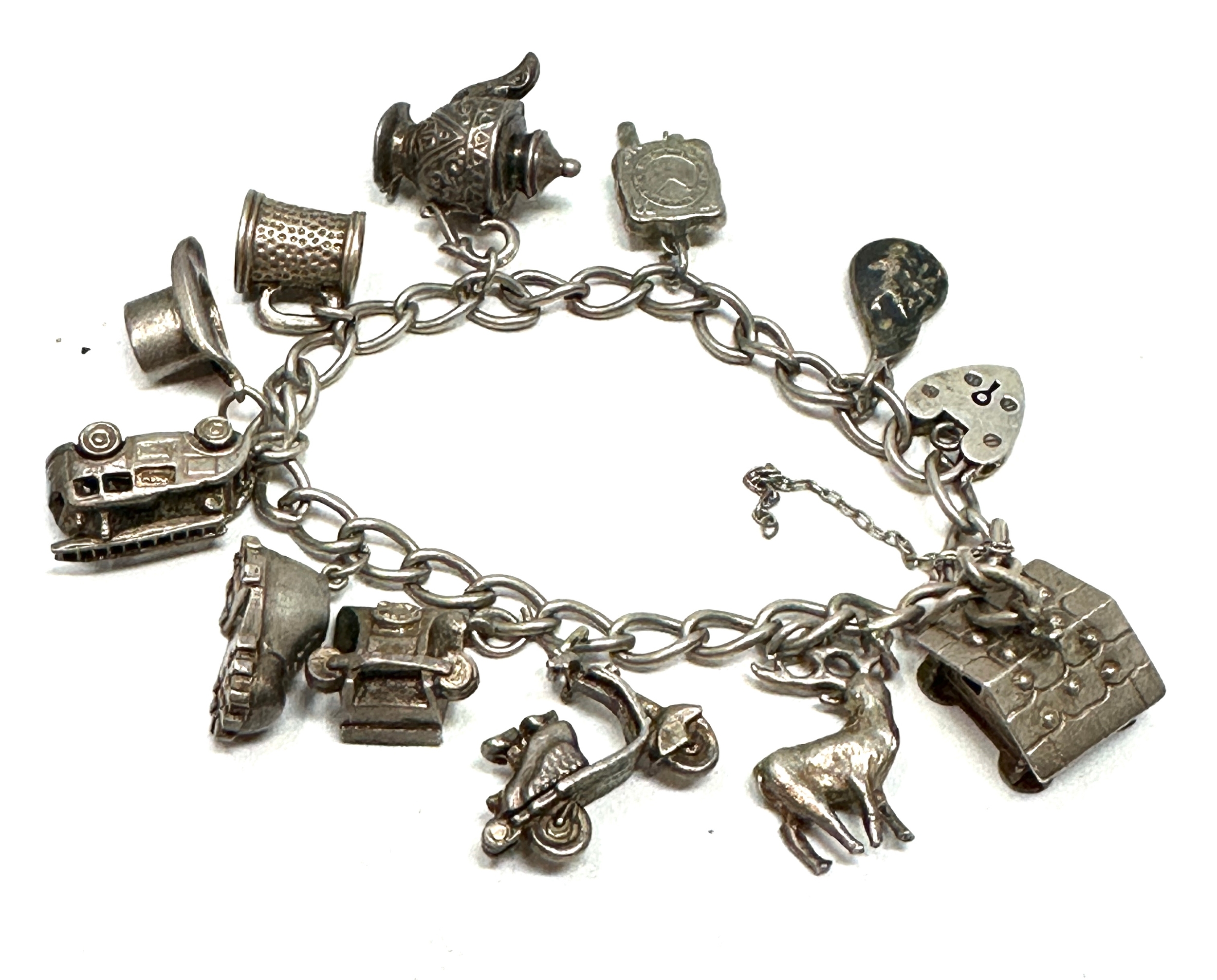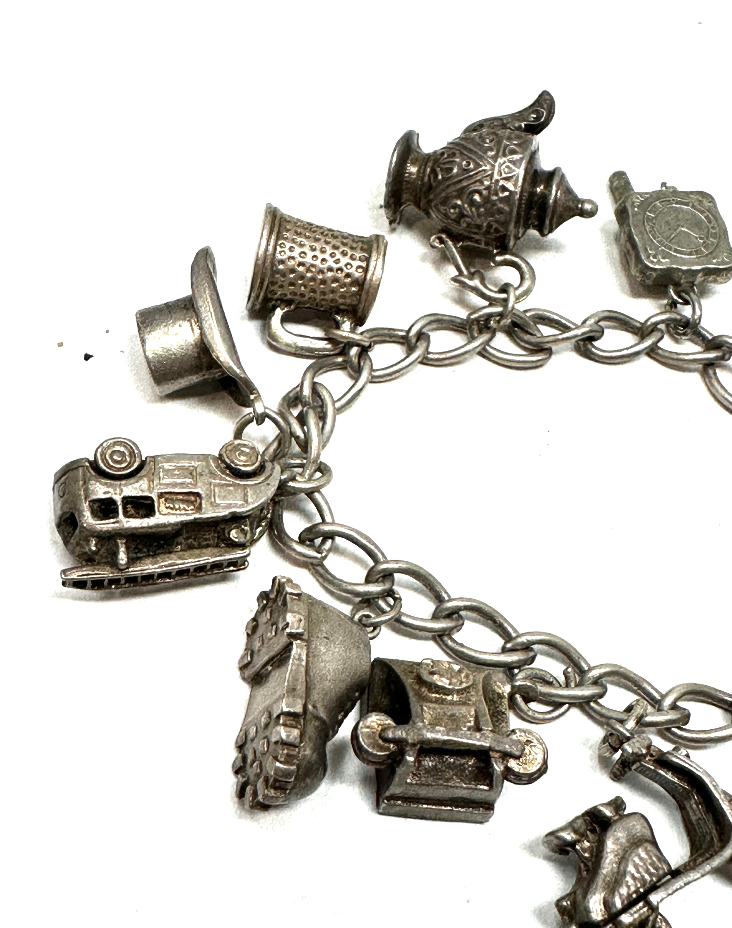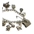 Vintage silver charm bracelet & charms weight 42g
