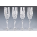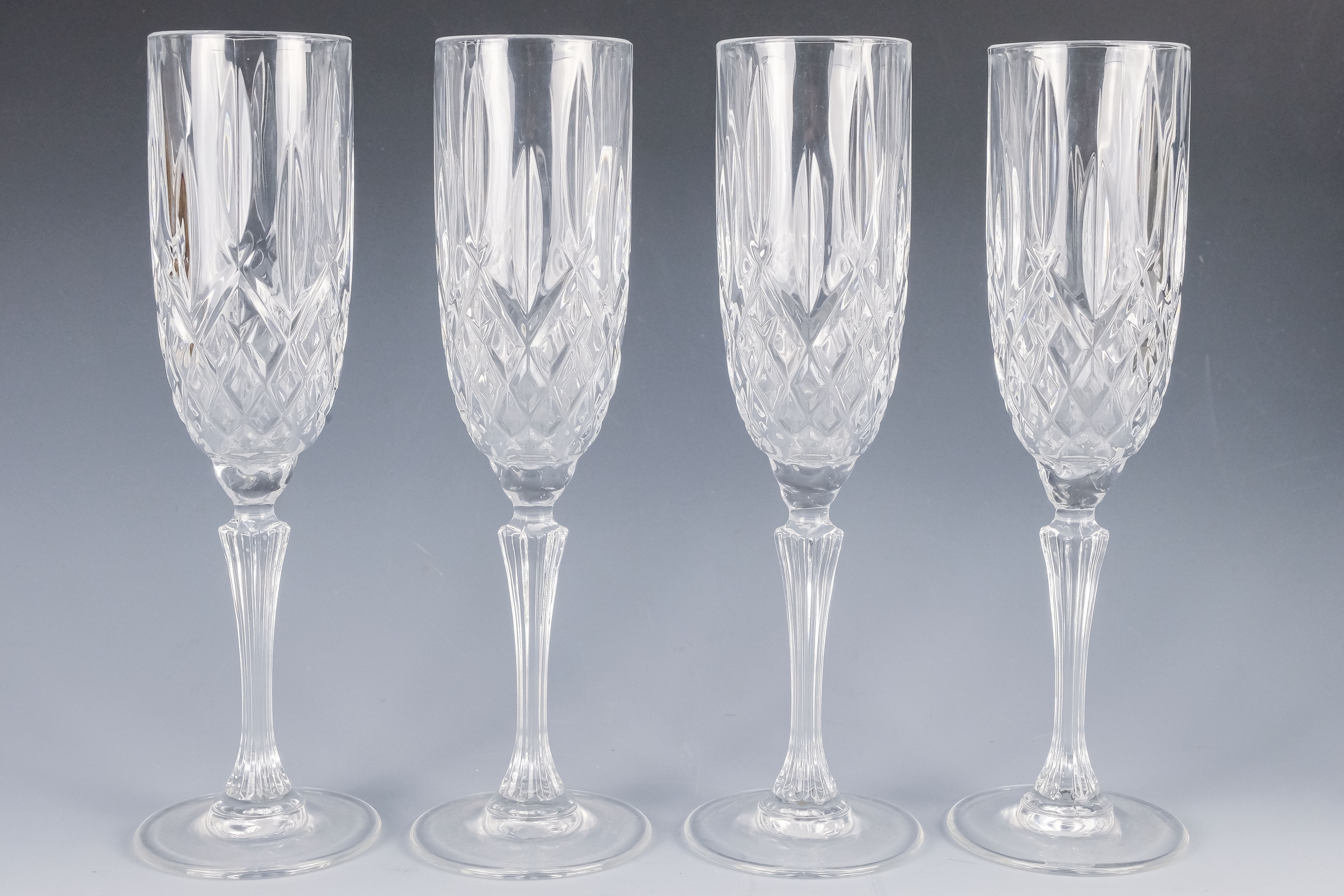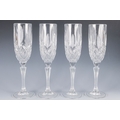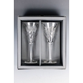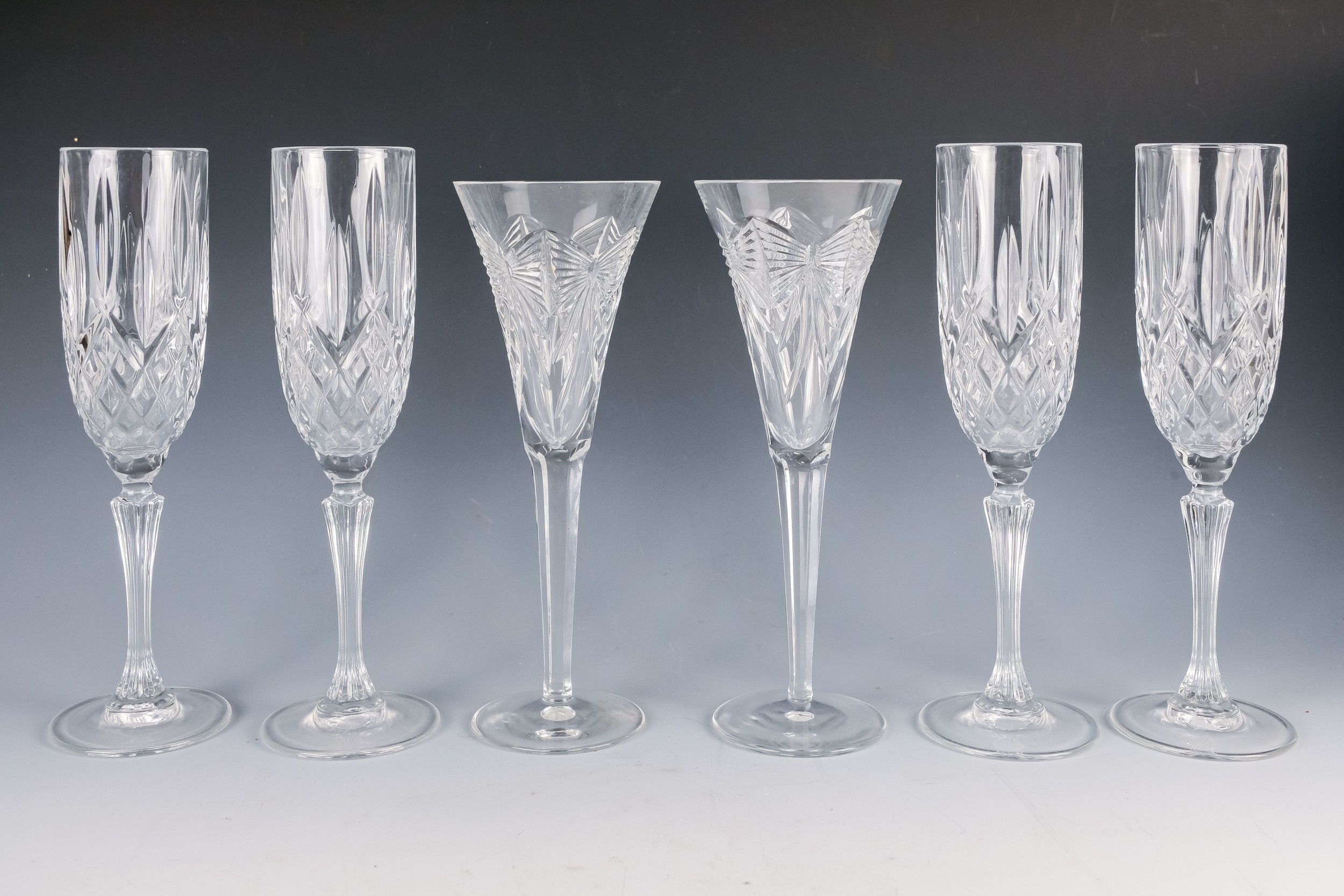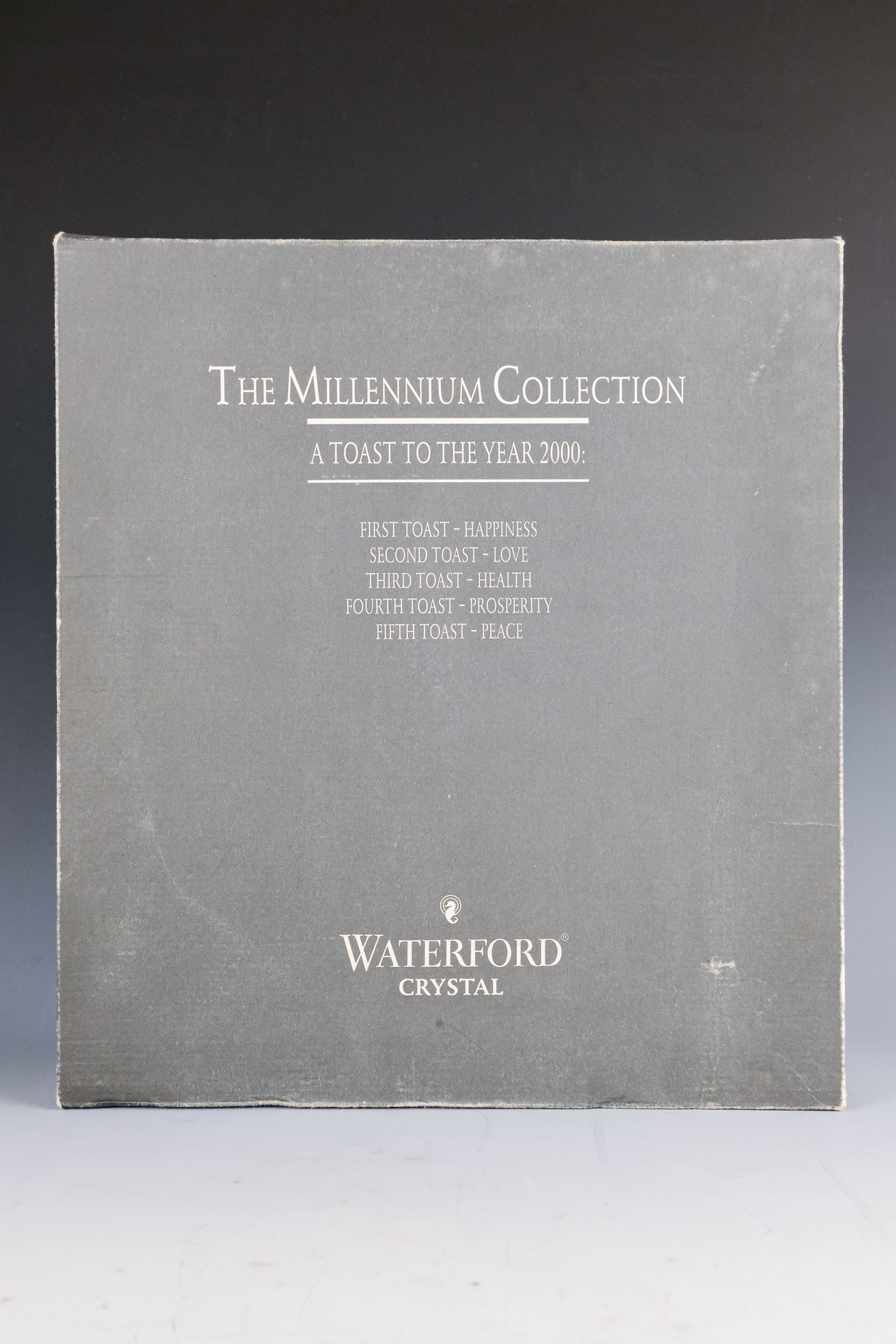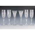 A pair of Waterford crystal glass champagne flutes, boxed - together with four other champagne flutes.