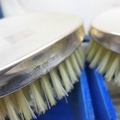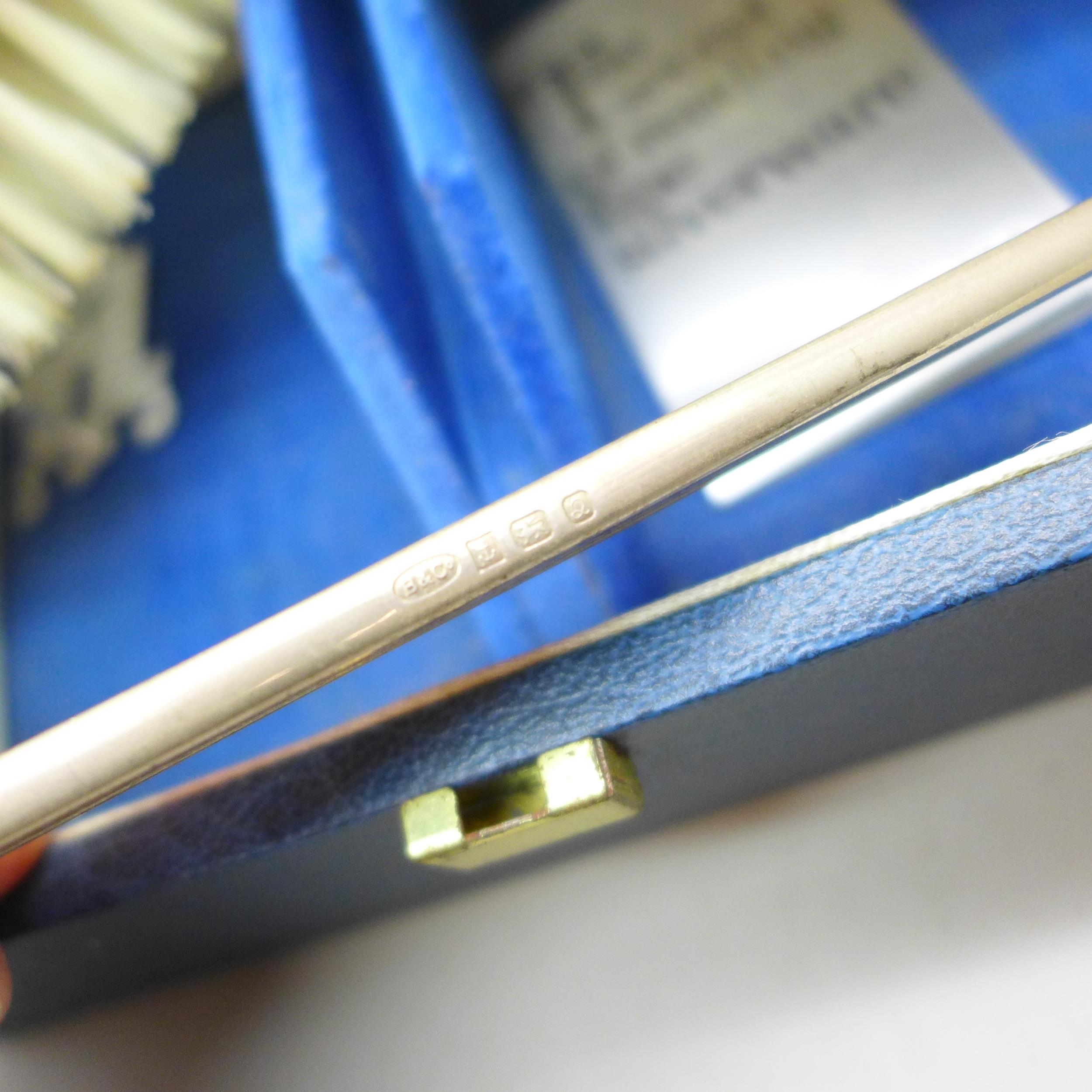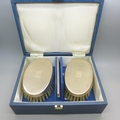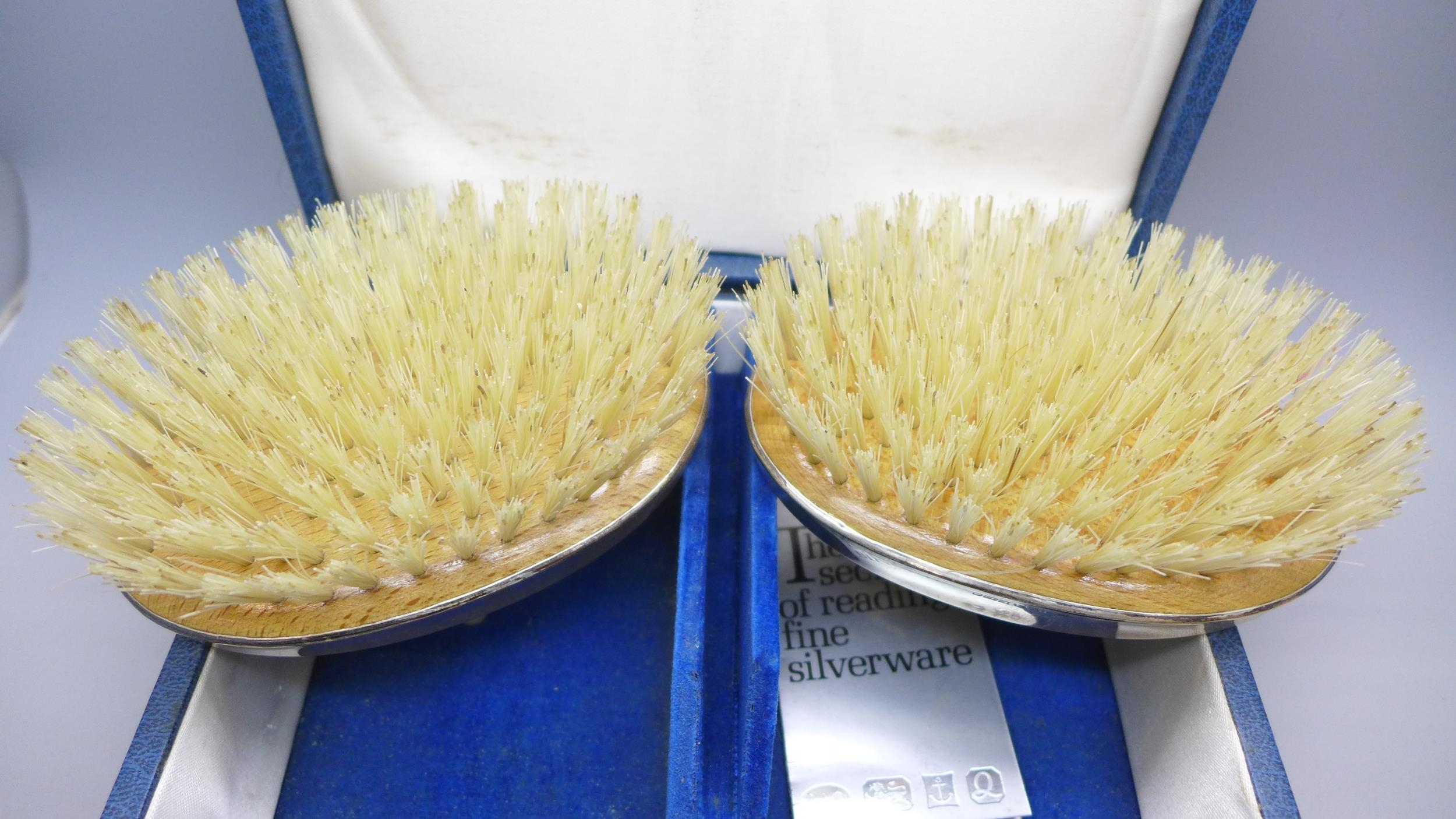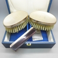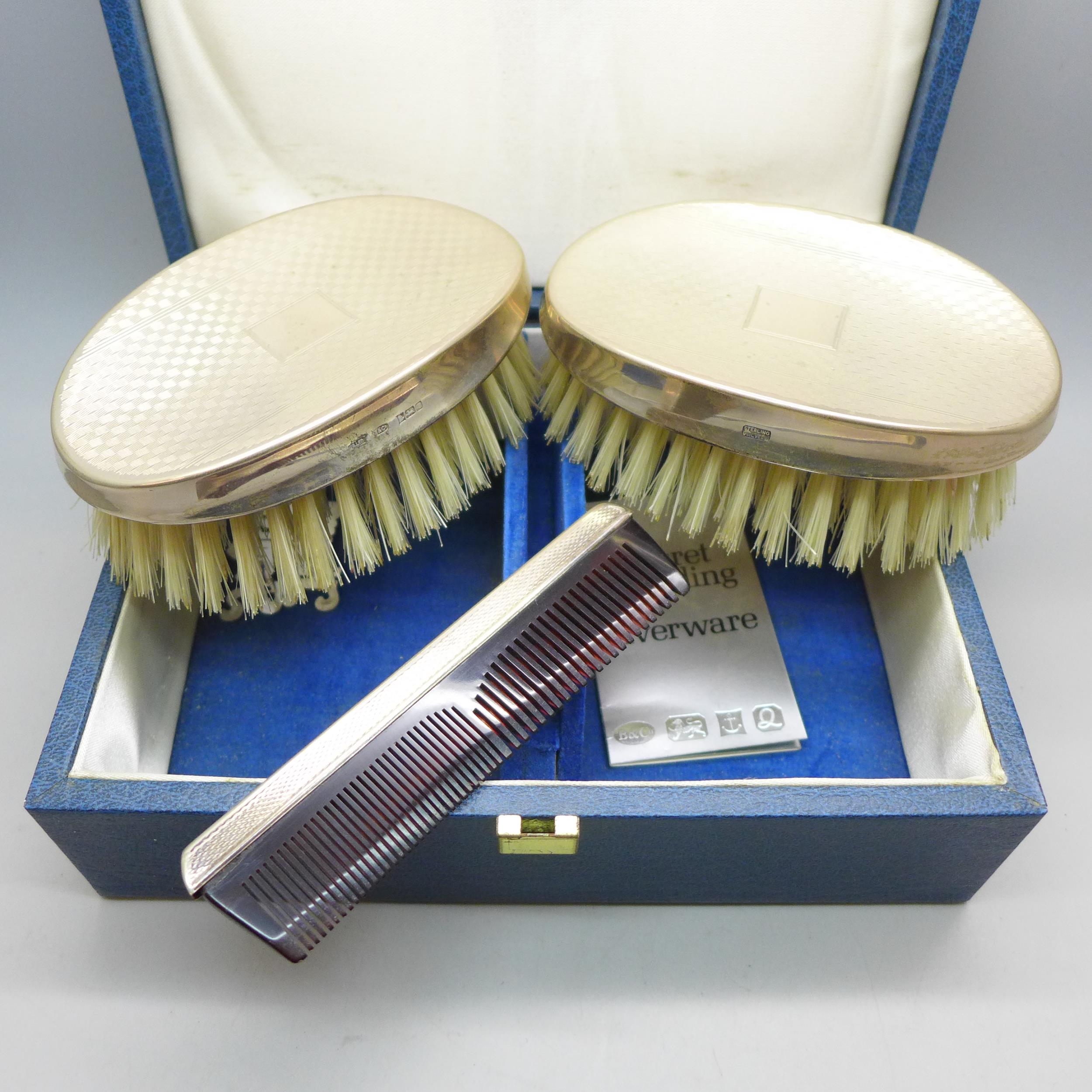 A silver mounted three piece brush/comb set, boxed