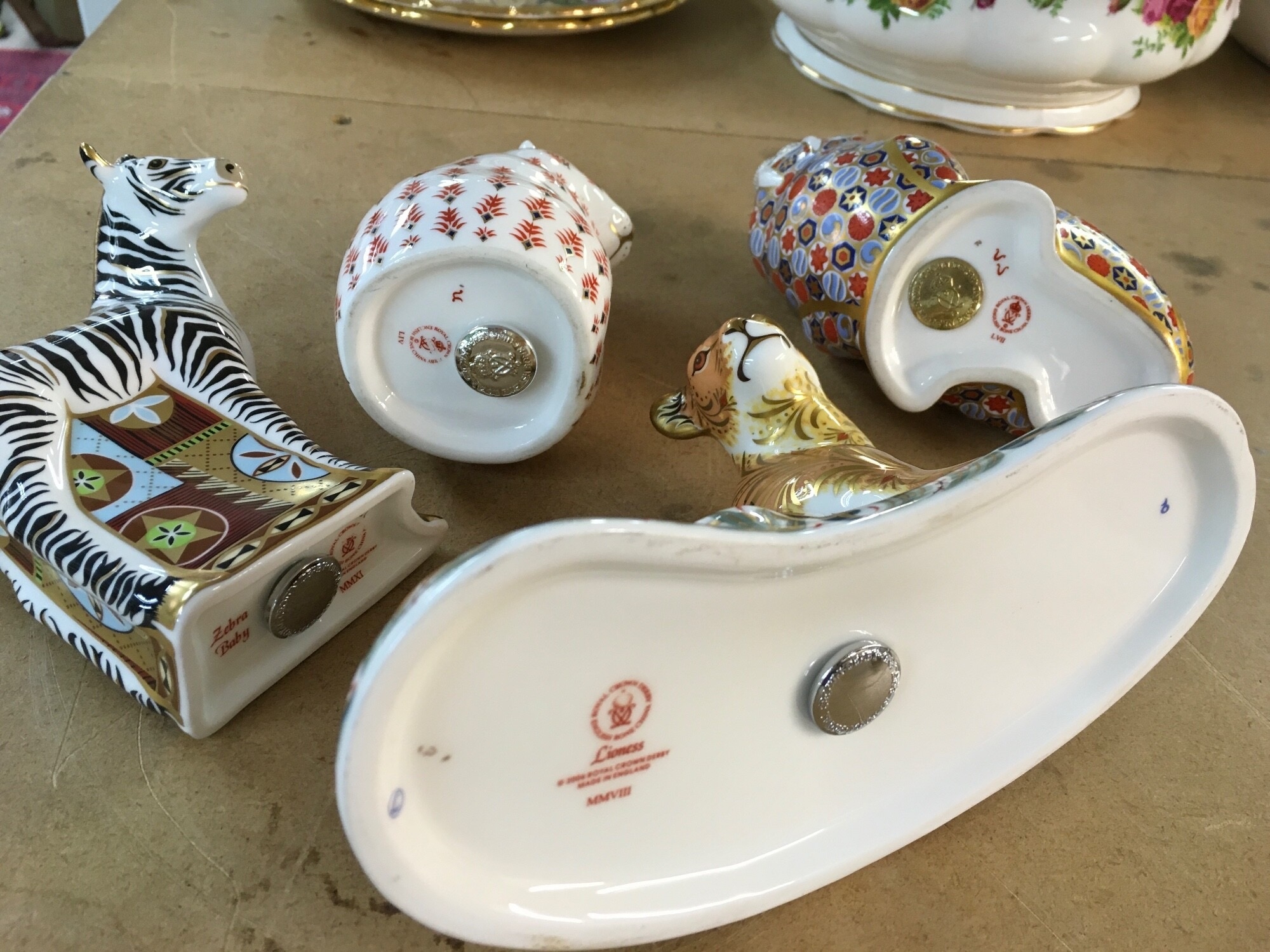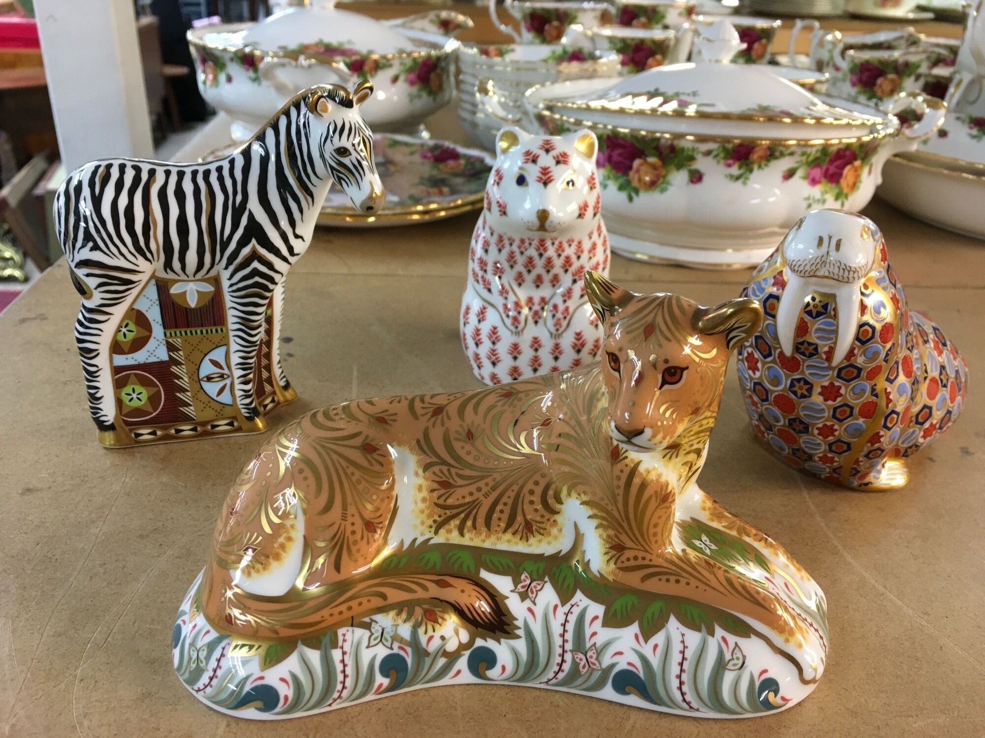 Four Royal Crown Derby paperweights in the form of Lioness, bear, walrus and zebra. All with stoppers