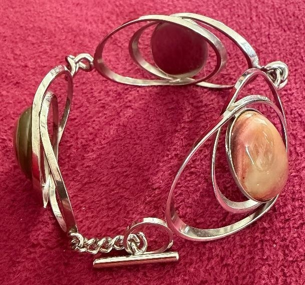 Jewellery : Ladies fashion bracelet white metal with large stones