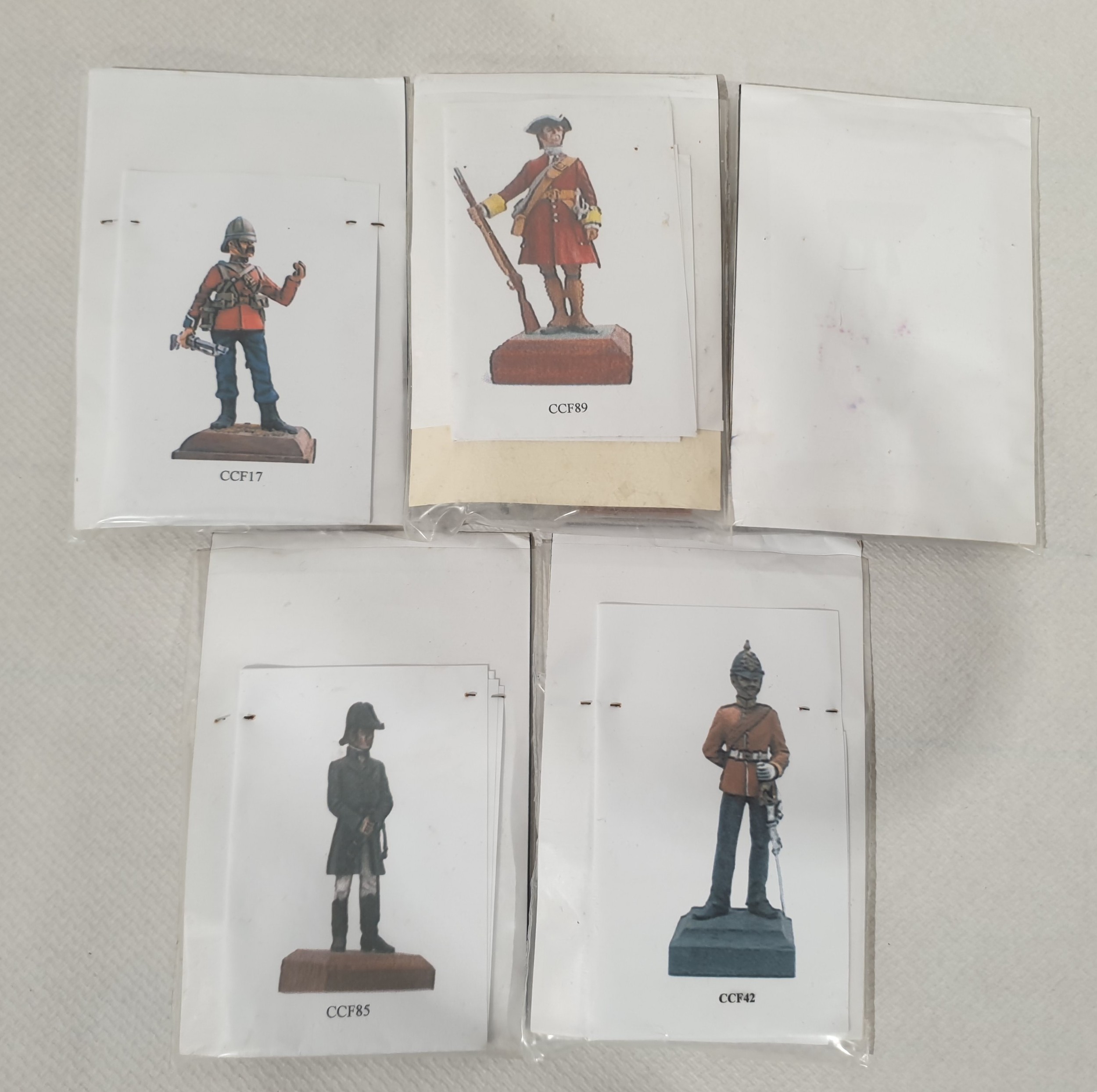 Five Clydecast diecast figure kits 'British Infantry Officer c.1880', 'British Infantryman, 24th Foot, Zulu War 1879', 'Private British Infantry c.1792' , 'CCF85' & 'CCF89'.