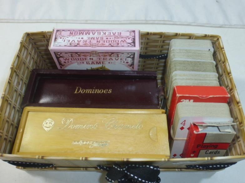 Two Boxes of Dominoes, Wooden Travel Game and Sets of Playing Cards