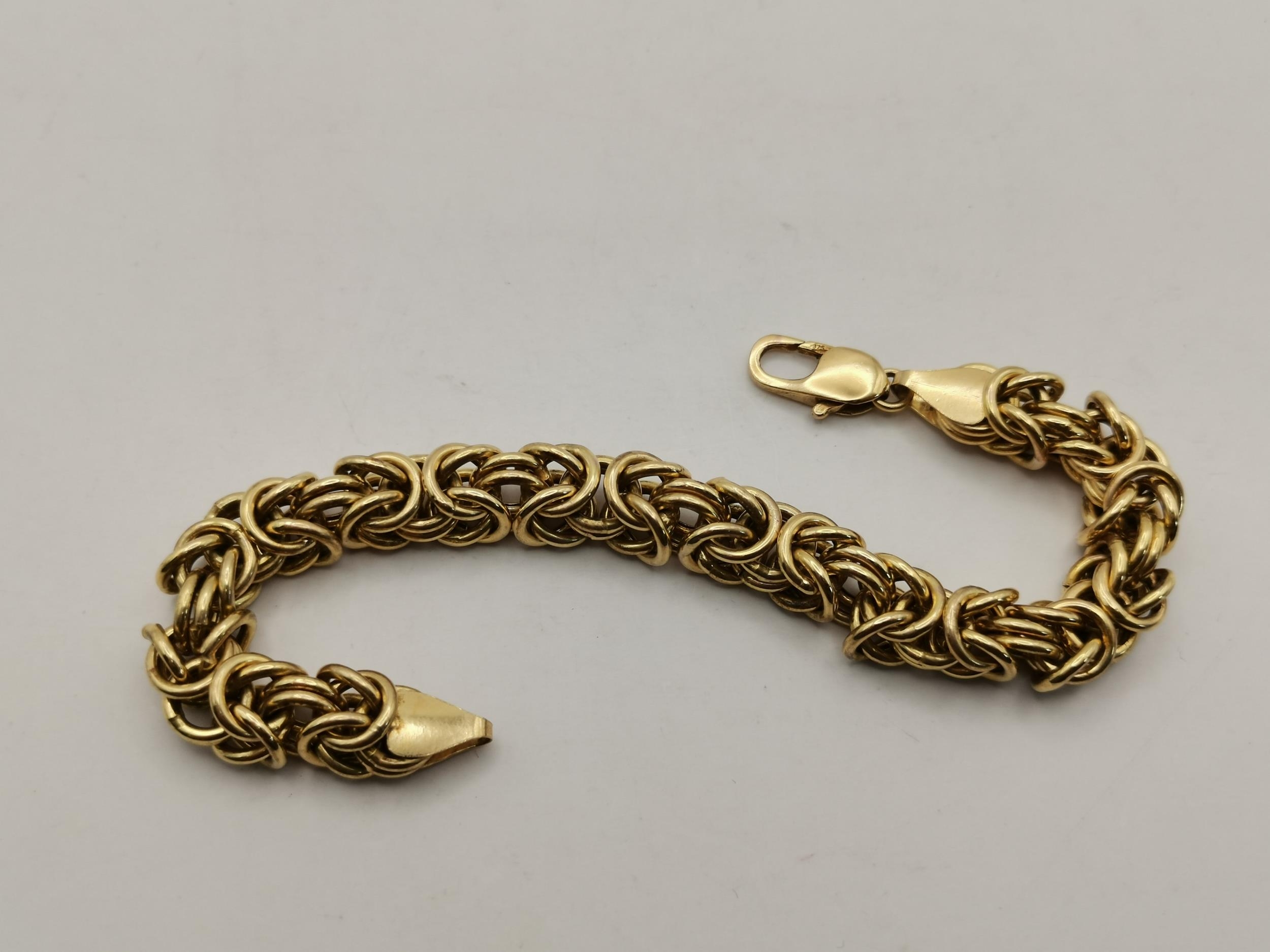 A 9 carat gold byzantine fancy-link bracelet, import hallmarked 375. 19.5cm long, 21.0g