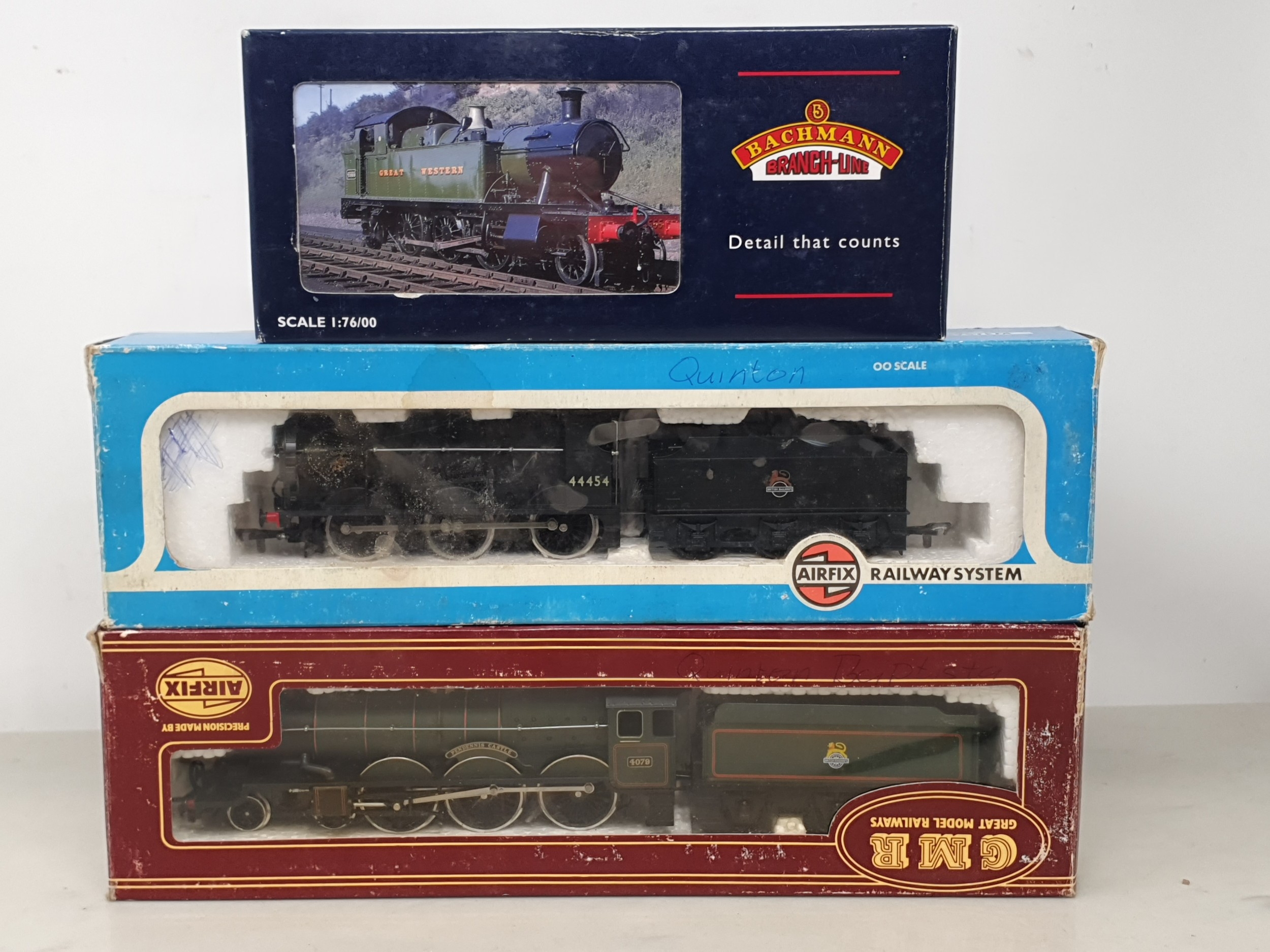 Three boxed 00 gauge steam Locomotives comprising Bachmann 32-125 45XX 2-6-2T, Airfix 54123-9 Fowler 4F 0-6-0 and Airfix 54125-5 'Pendennis Castle', all VG-Ex, boxed G-Ex