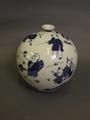 A Chinese blue and white bulbous vase with painted decoration of children playing in a garden, stamp mark to base, 5½' high