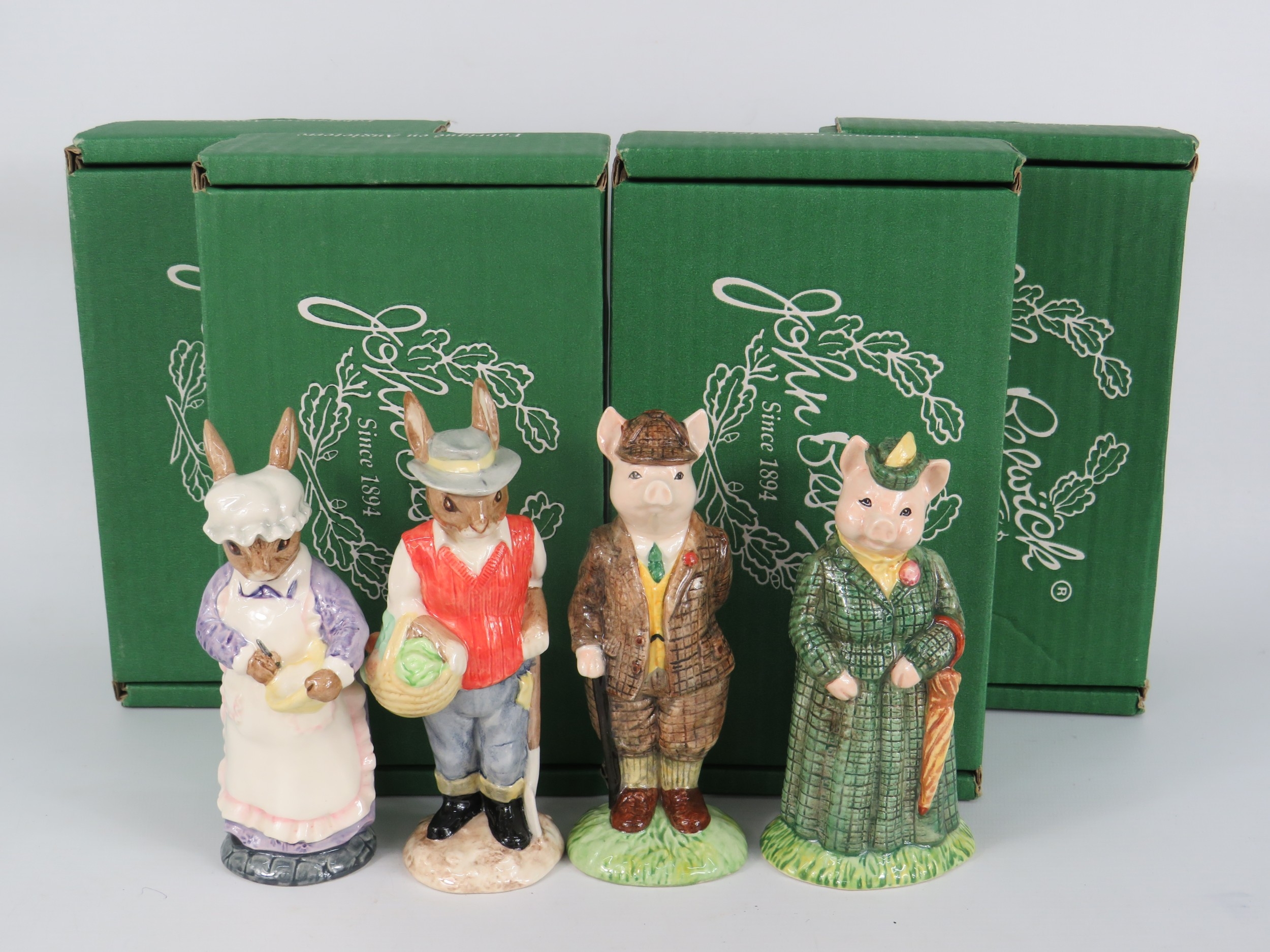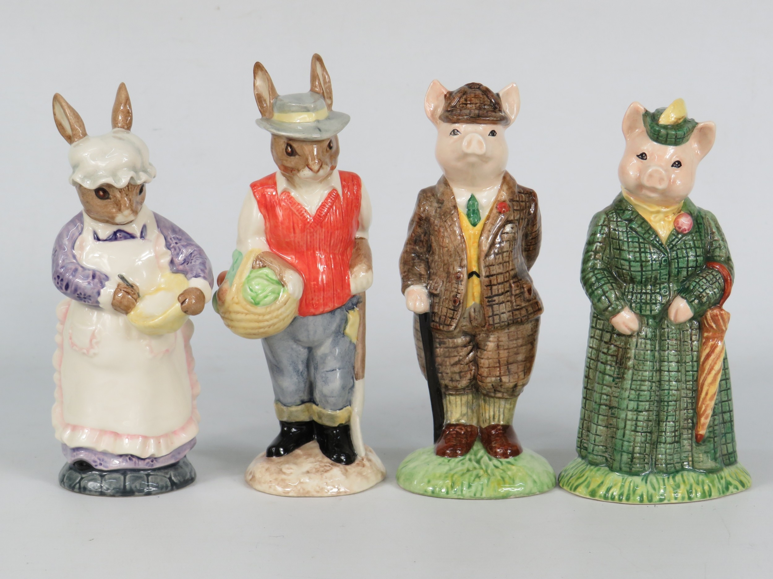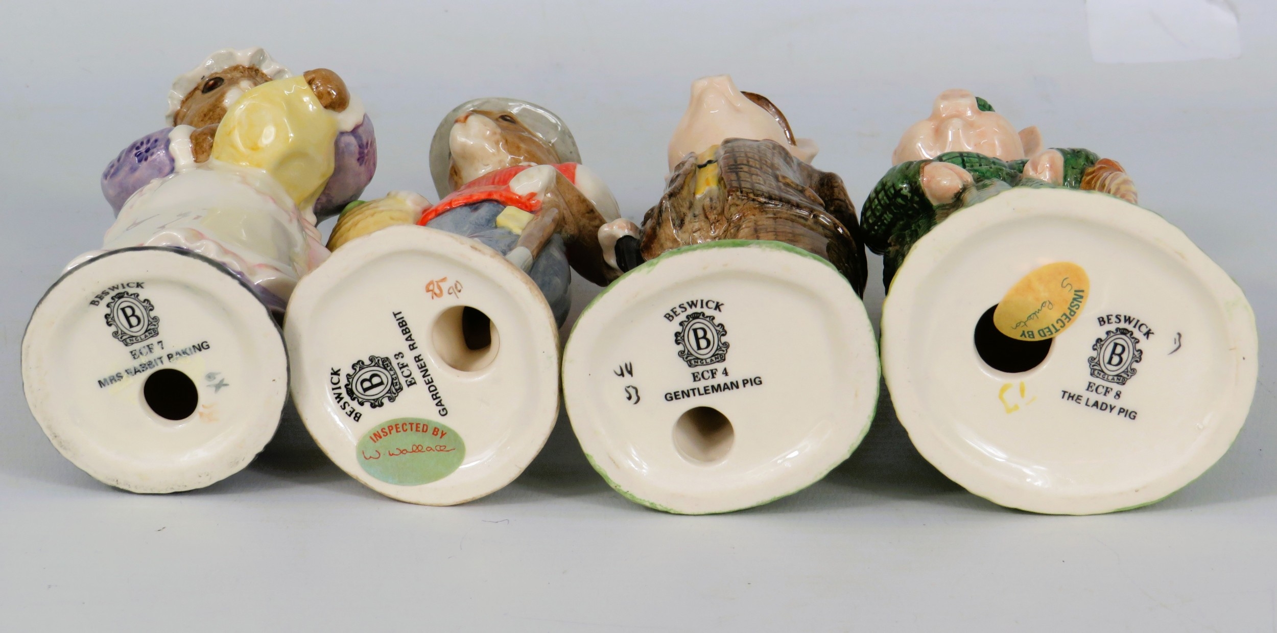 Four Beswick English Country Folk Figurines - Mrs Rabbit Baking Gardener Rabbit Gentleman Pig & Lady Pig - Height 16cm