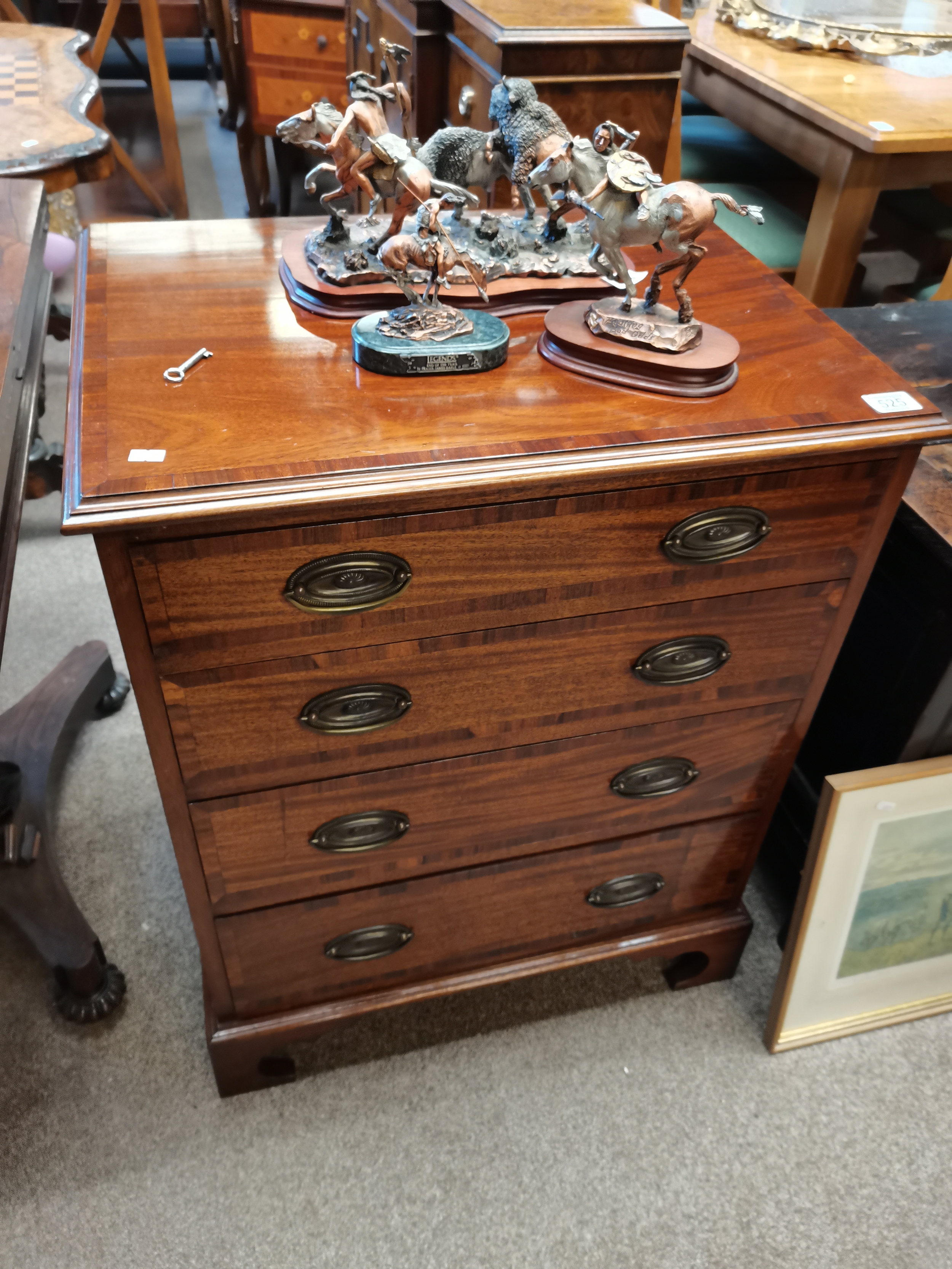 Antique 4 height mahogany chest with bracket feet