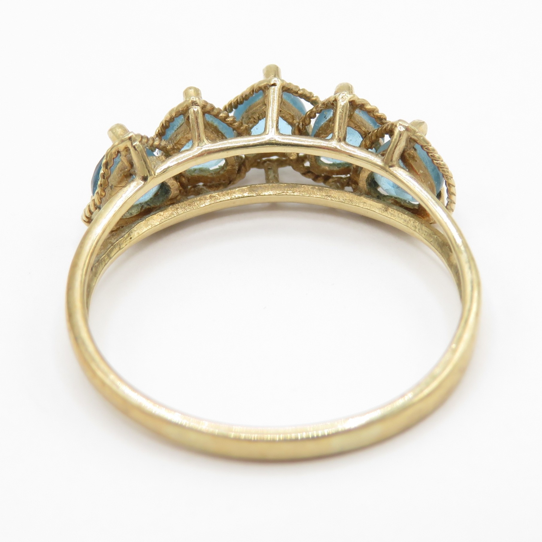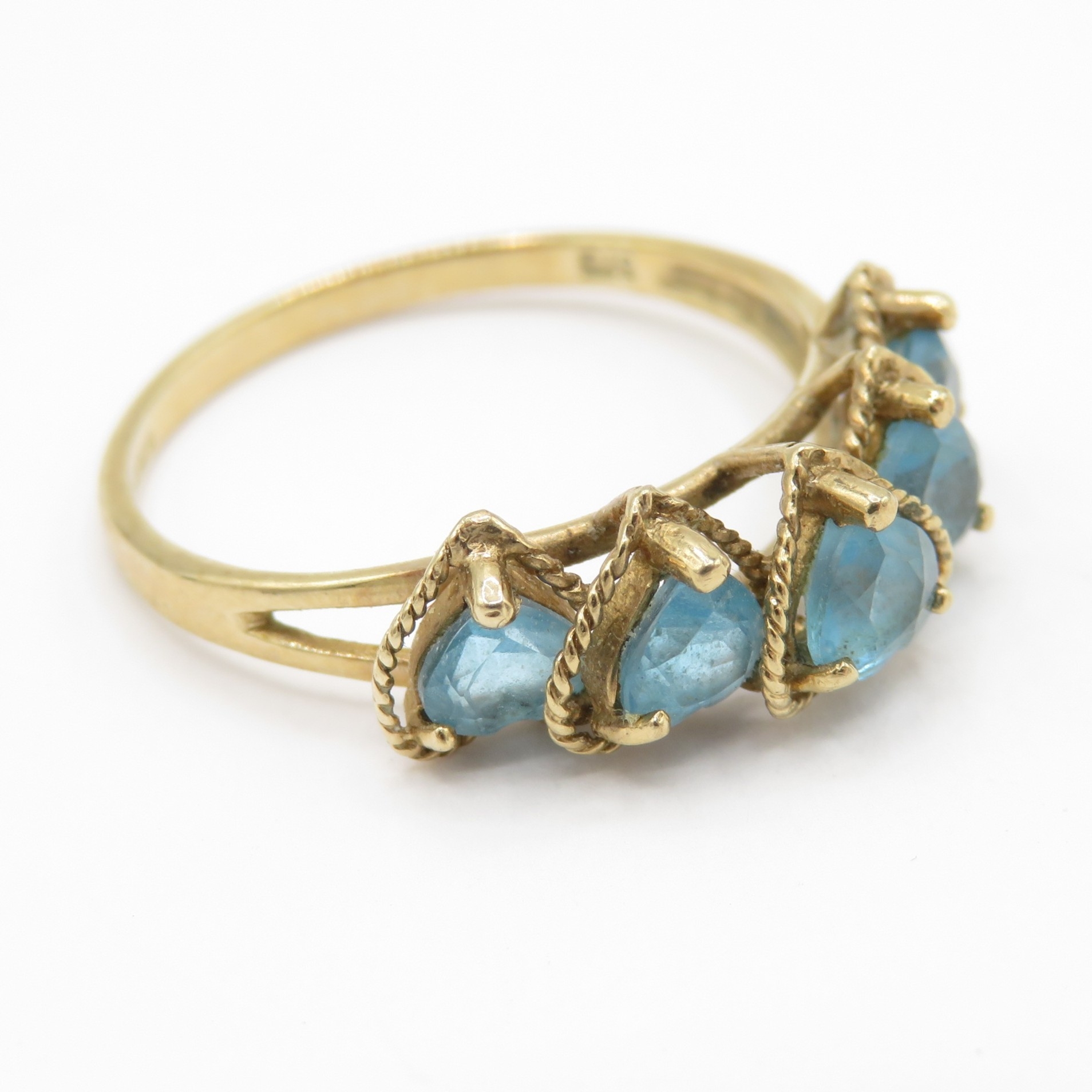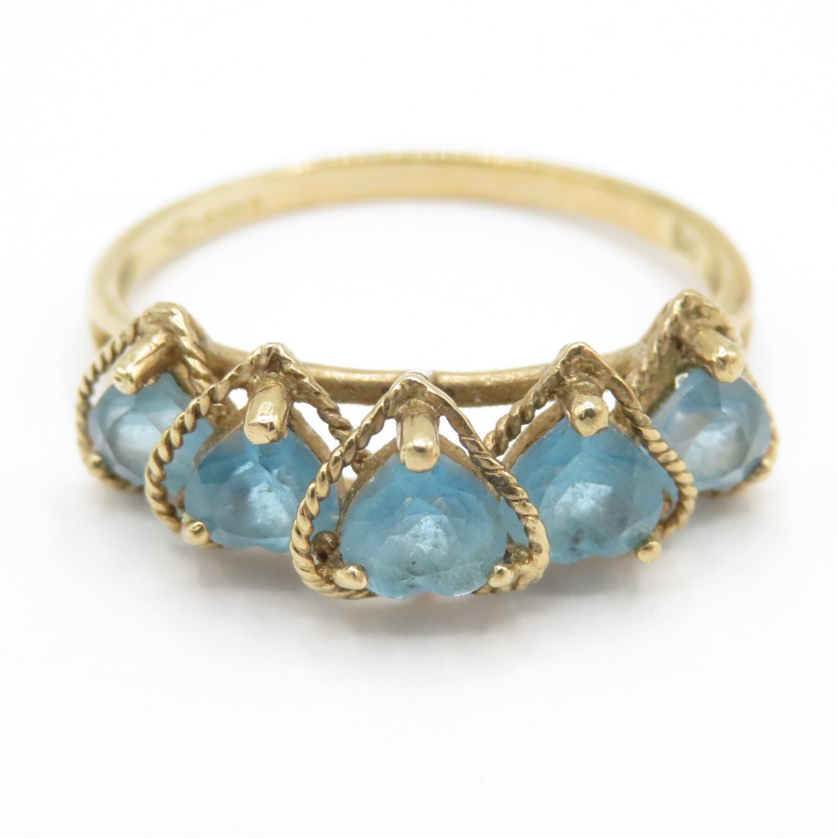 9ct Gold Heart Shaped Topaz Five Stone Ring (2.1g) Size P 1/2