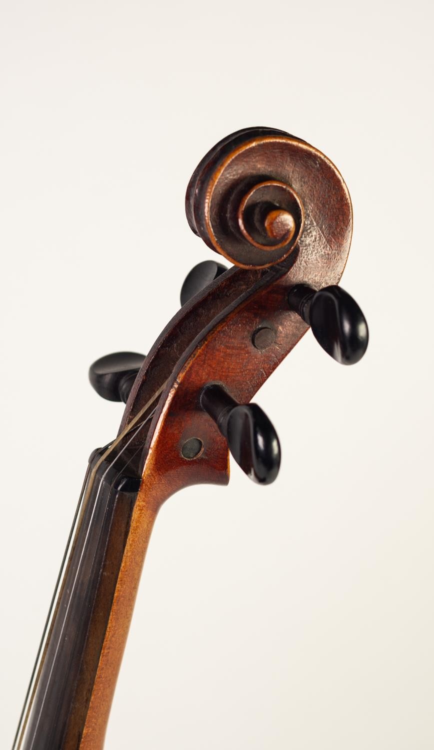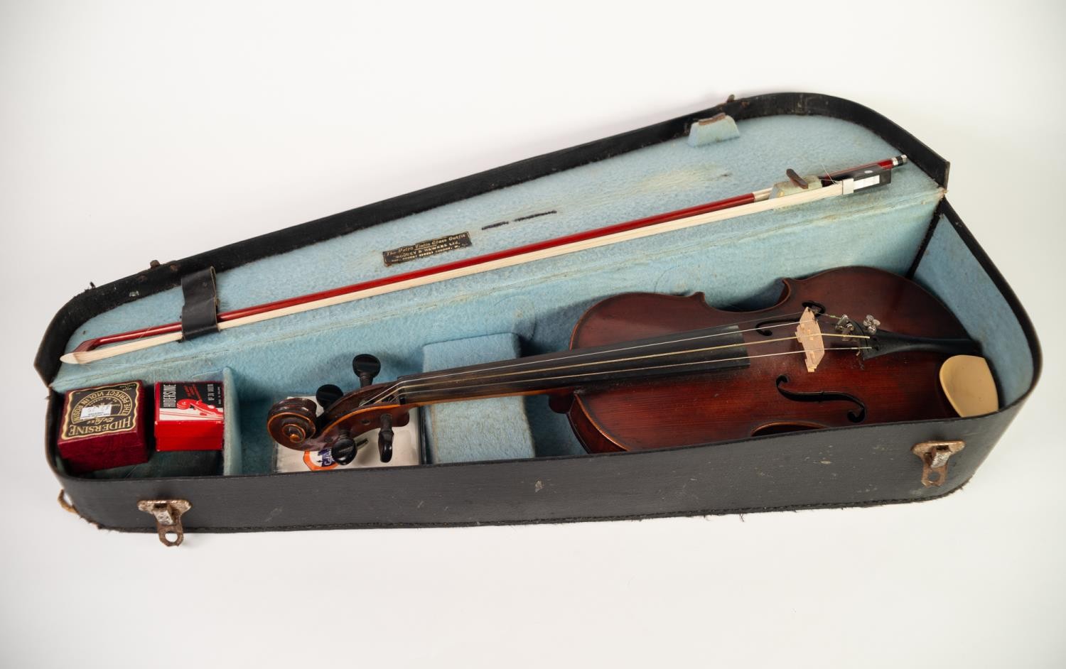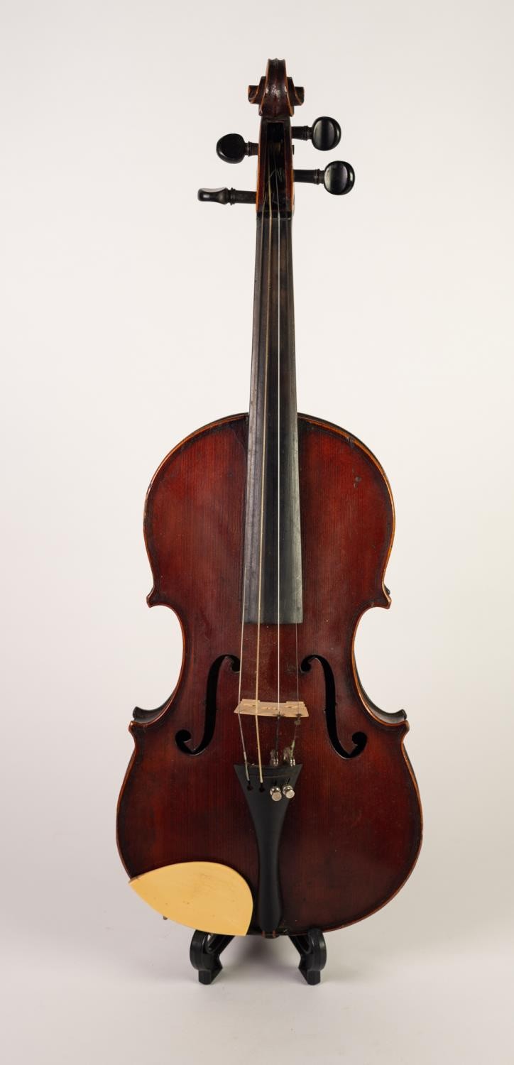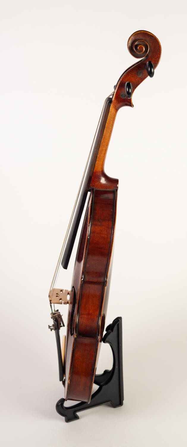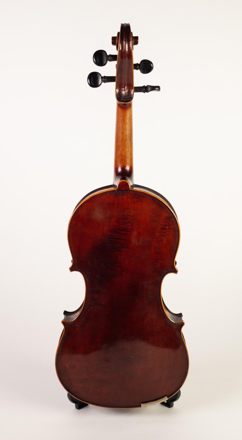 EARLY 20th CENTURY THREE-QUARTER SIZED FRENCH VIOLIN, labelled Medio Fino and having 14 1/8in (33.3cm) long one piece back, in BLACK FABRIC CASE WITH BOW