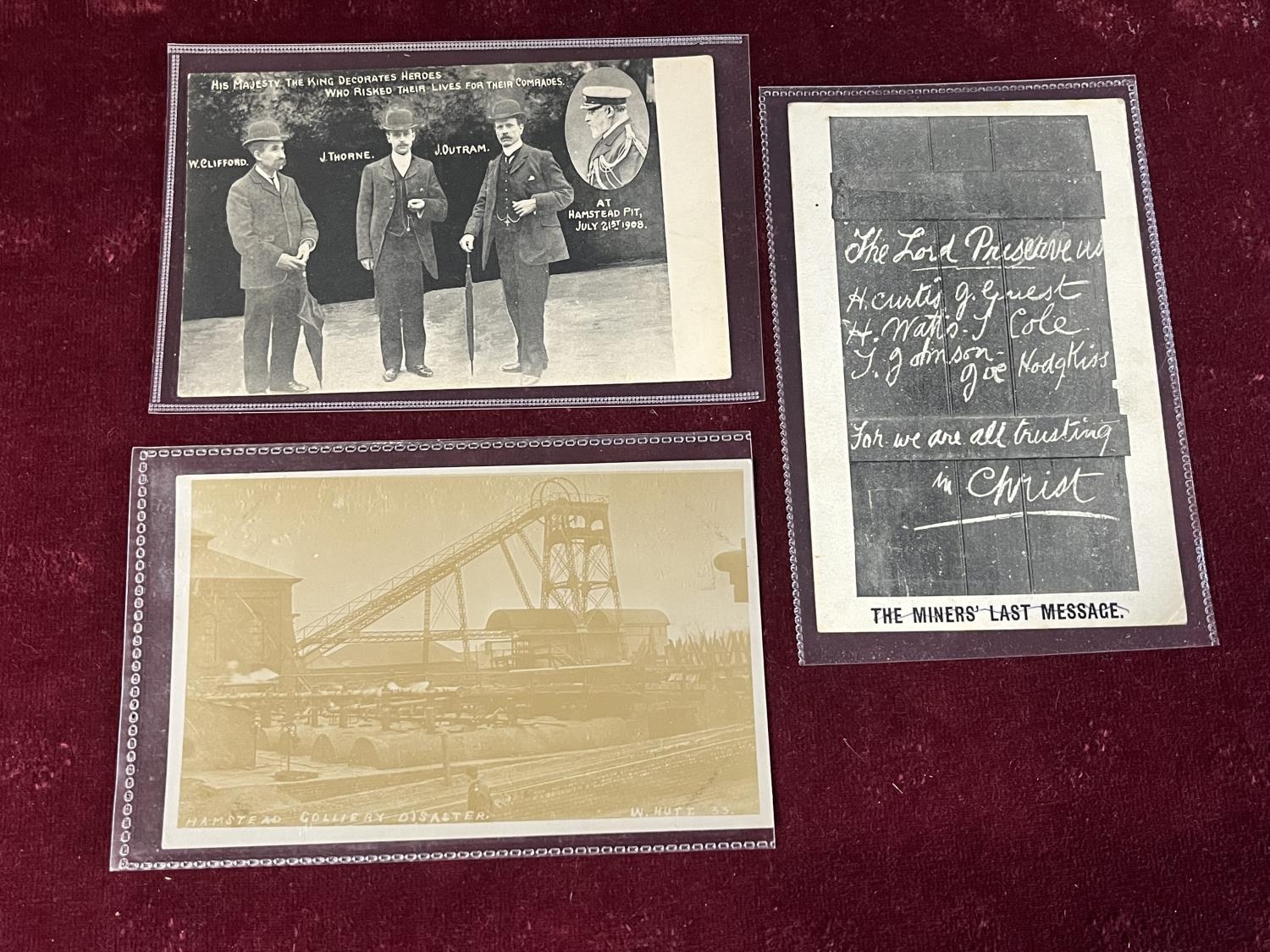 Three antique postcards all relating to Hampstead Pit Mining Disaster 1908