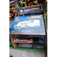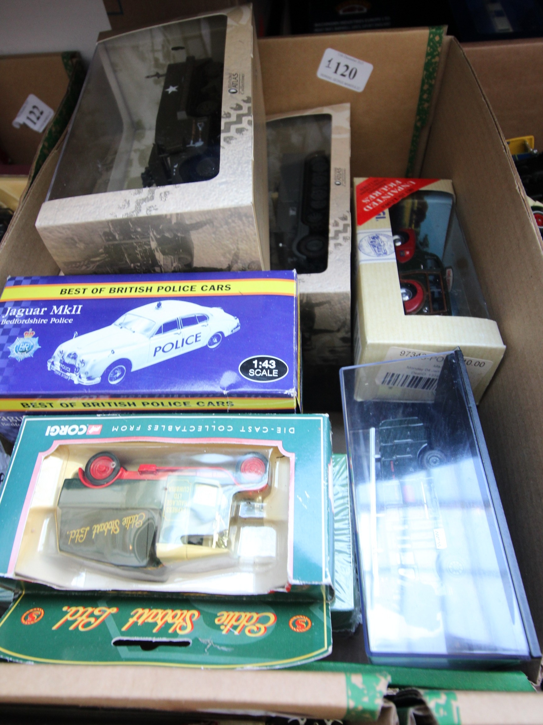 Originally boxed die-cast vehicles including Military Police, Eddie Stobart and classic sports cars