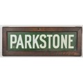 Southern Railway glass lamp tablet PARKSTONE. From the station near Bournemouth. These date from the early 1920s and are rare survivors. It has a hole in the glass, otherwise fine, in original frame. 17 3/4 x 6 1/4 inches. Shipping band - B.