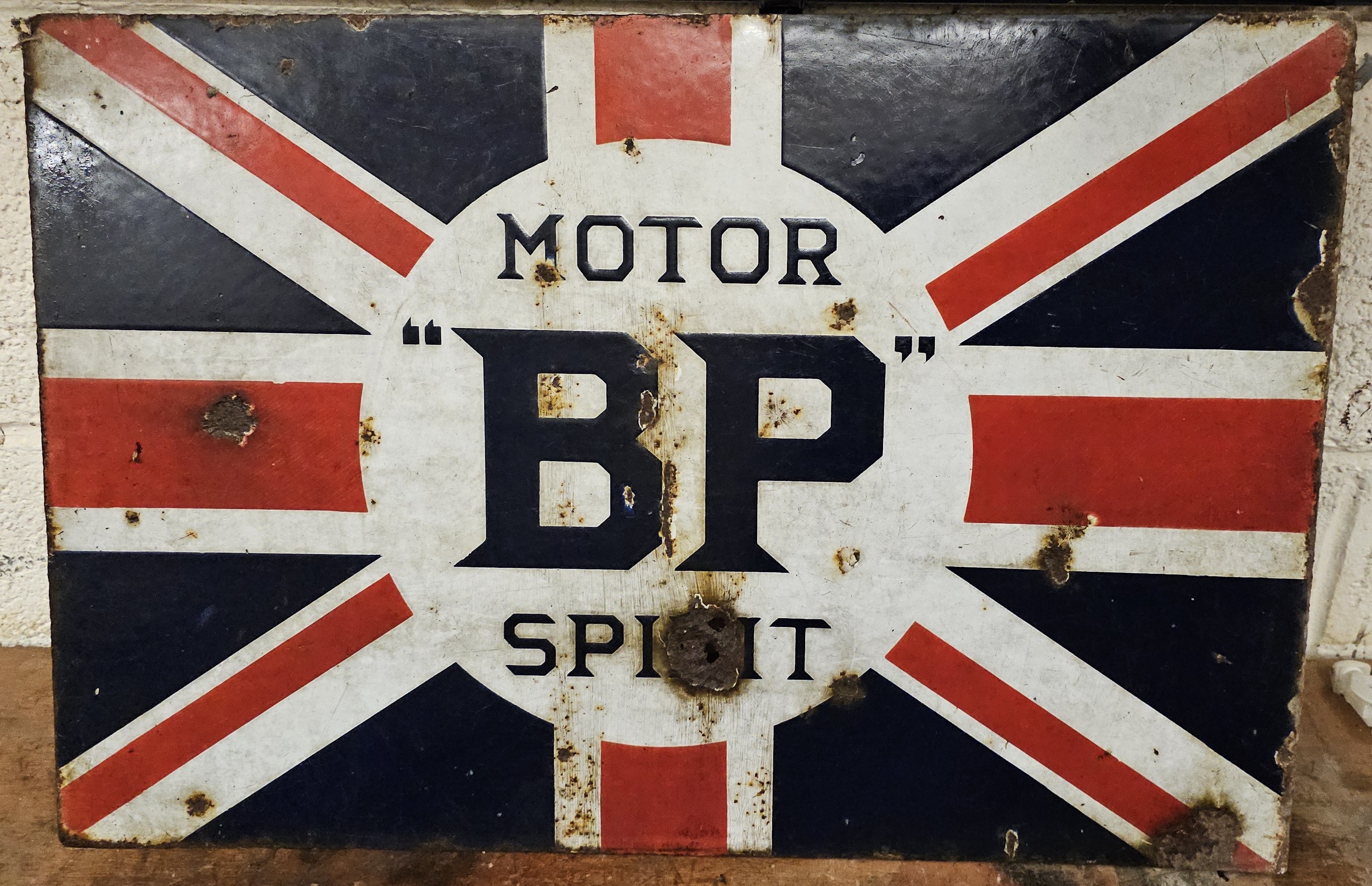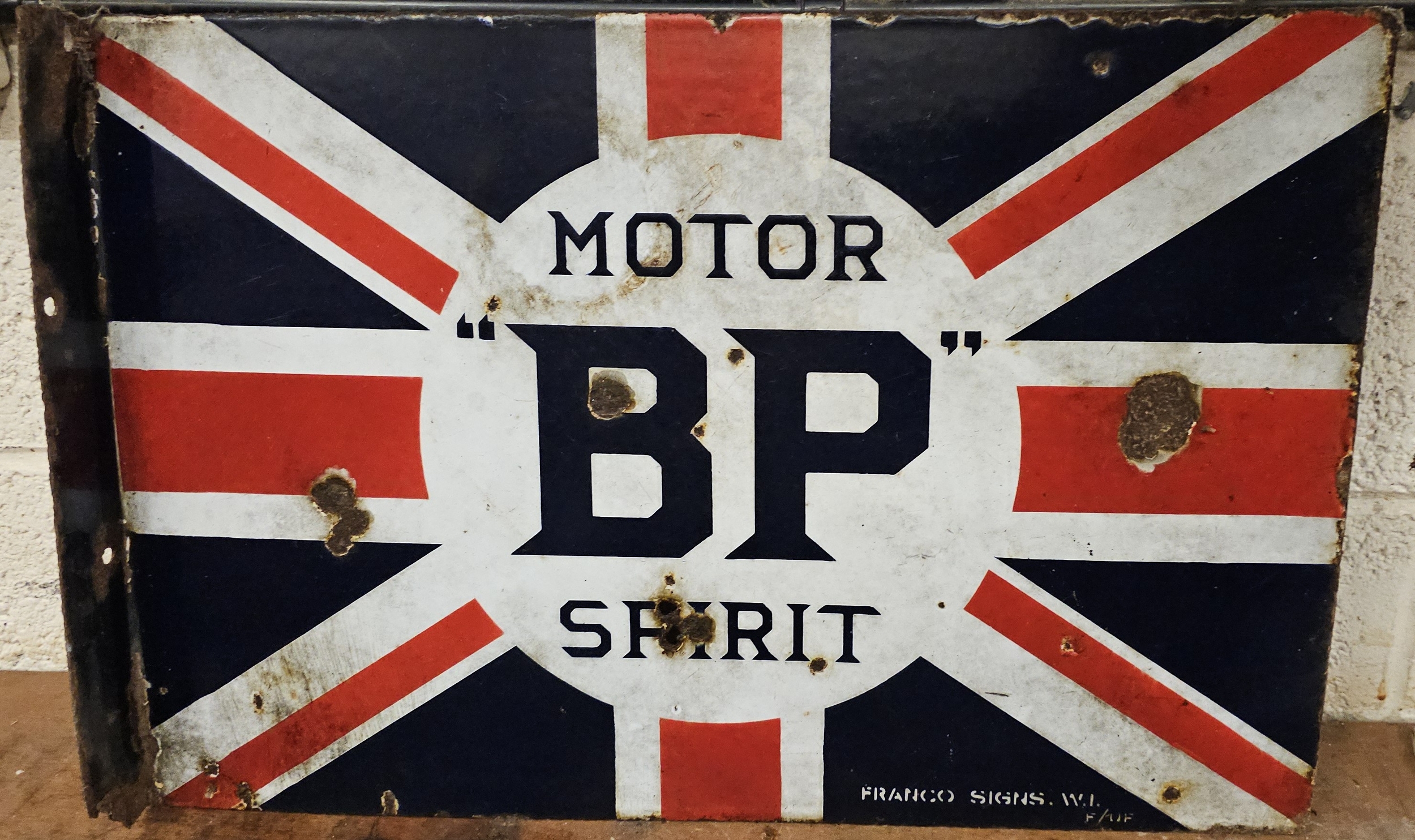 BP MOTOR SPIRIT, a double sided vitreous enamel advertising sign, by Franco Signs W1, 40.5 x 61.5cm.