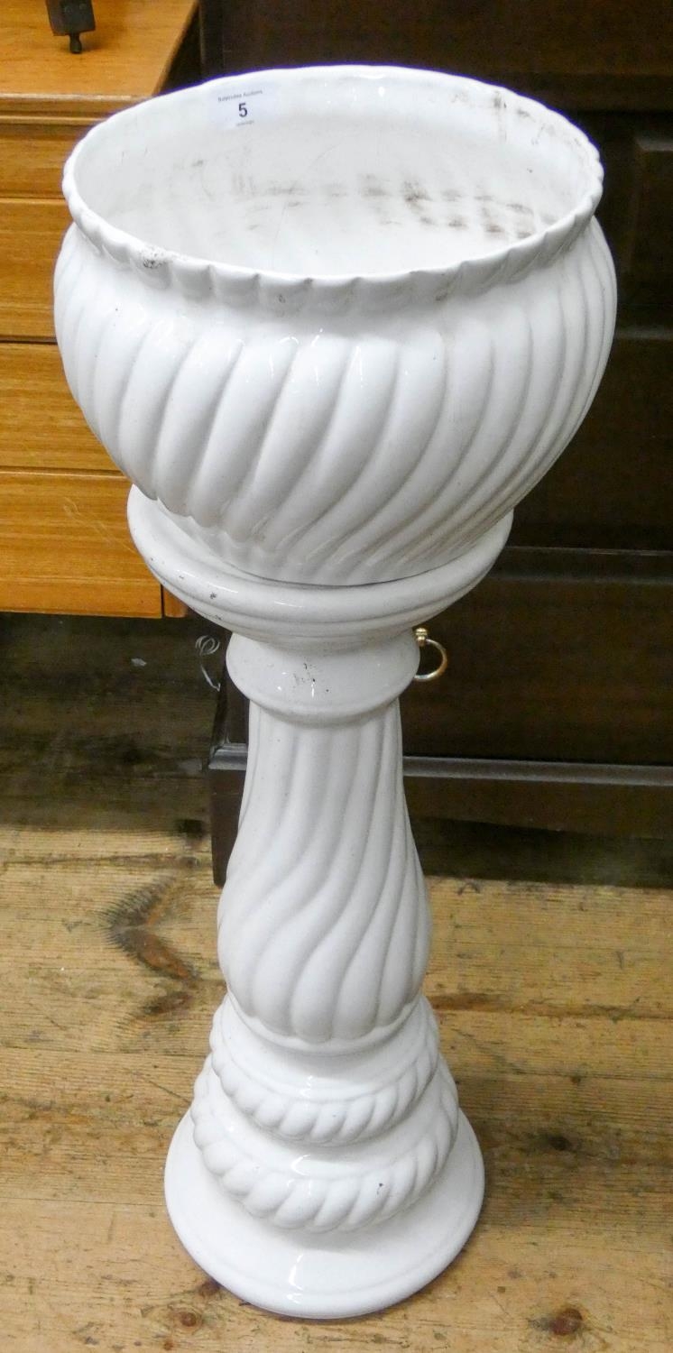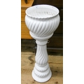 A white china jardiniere with pedestal