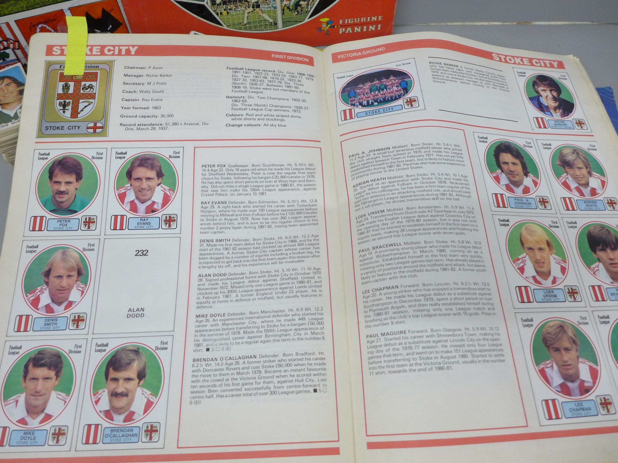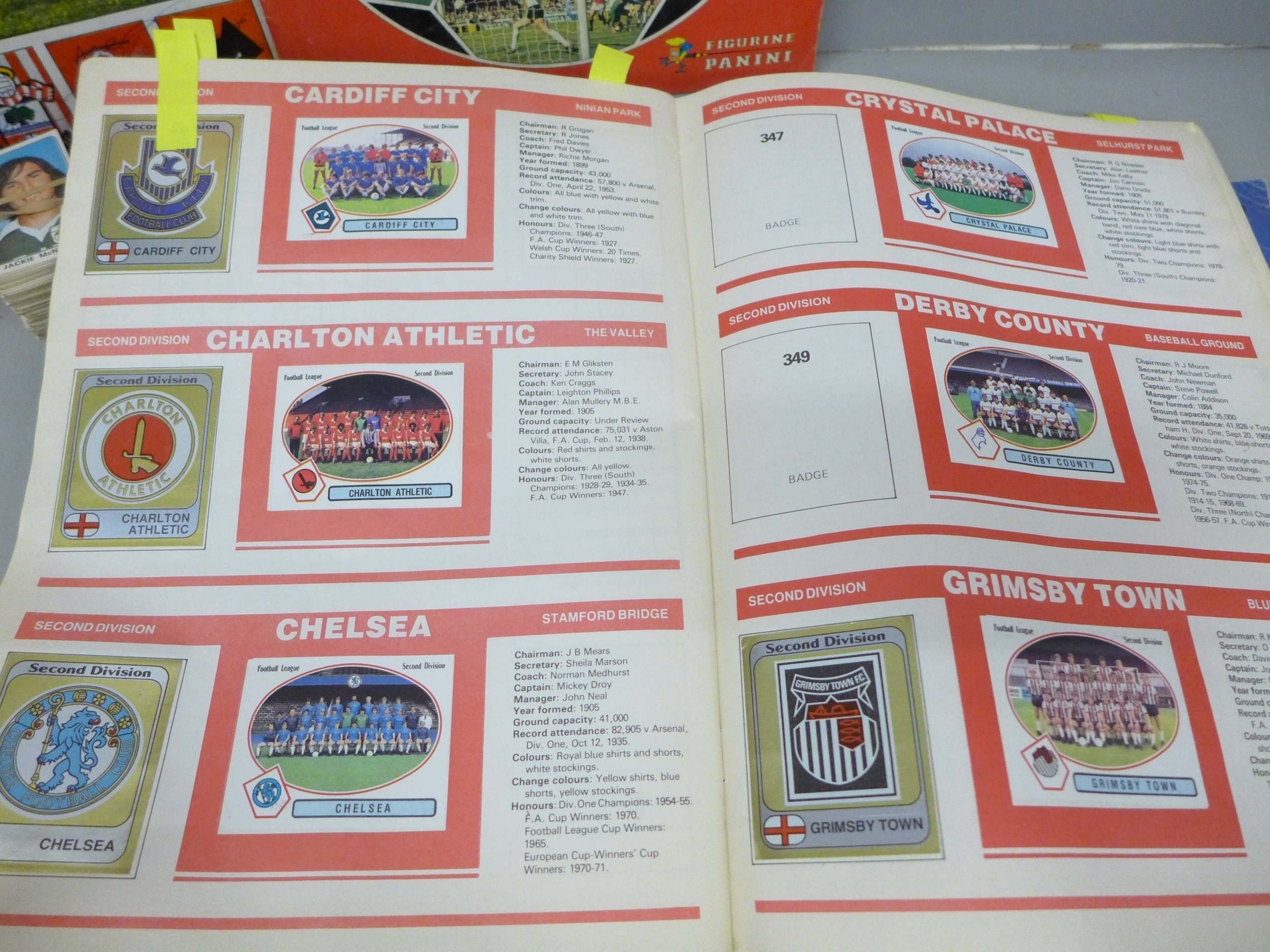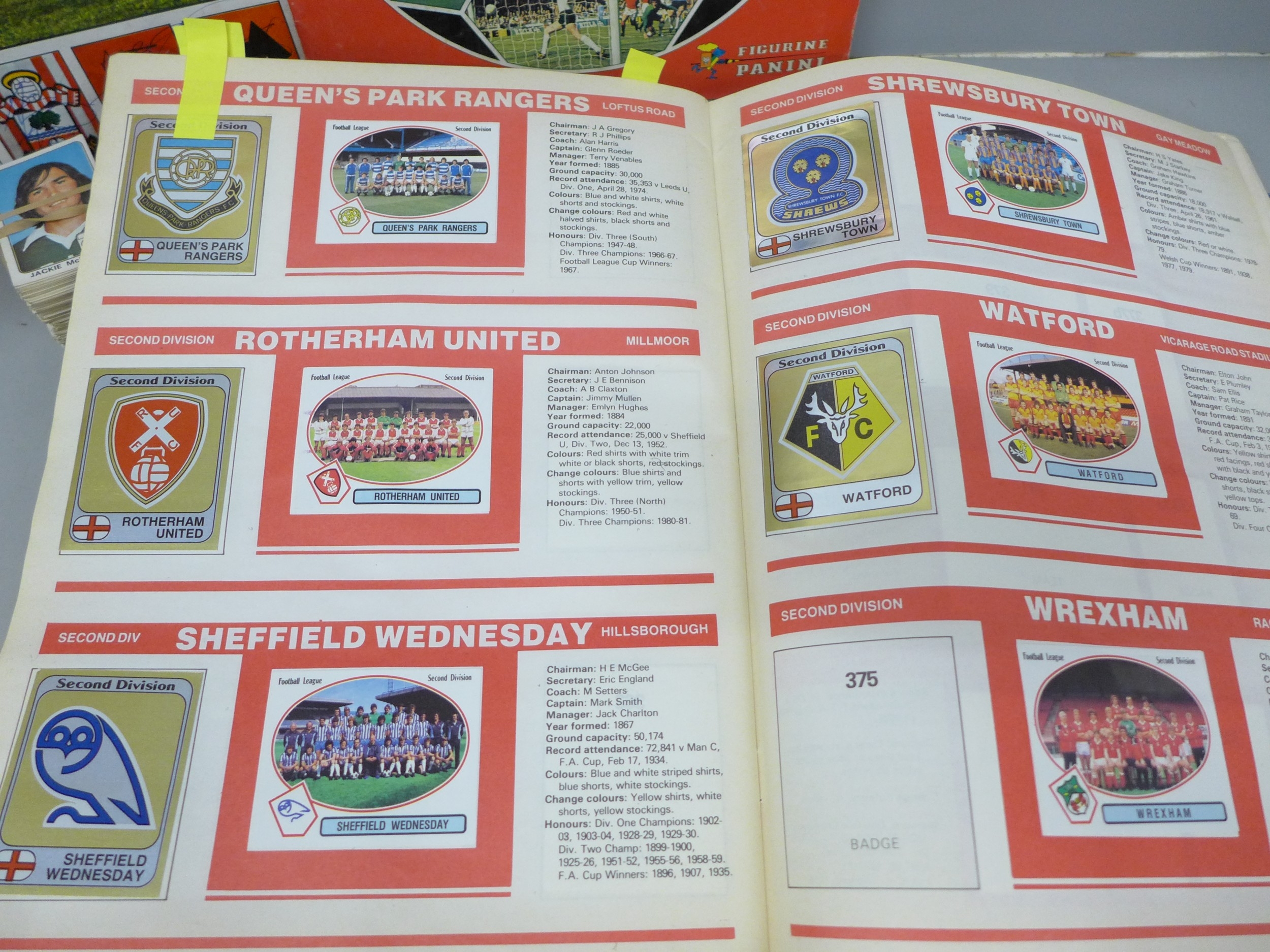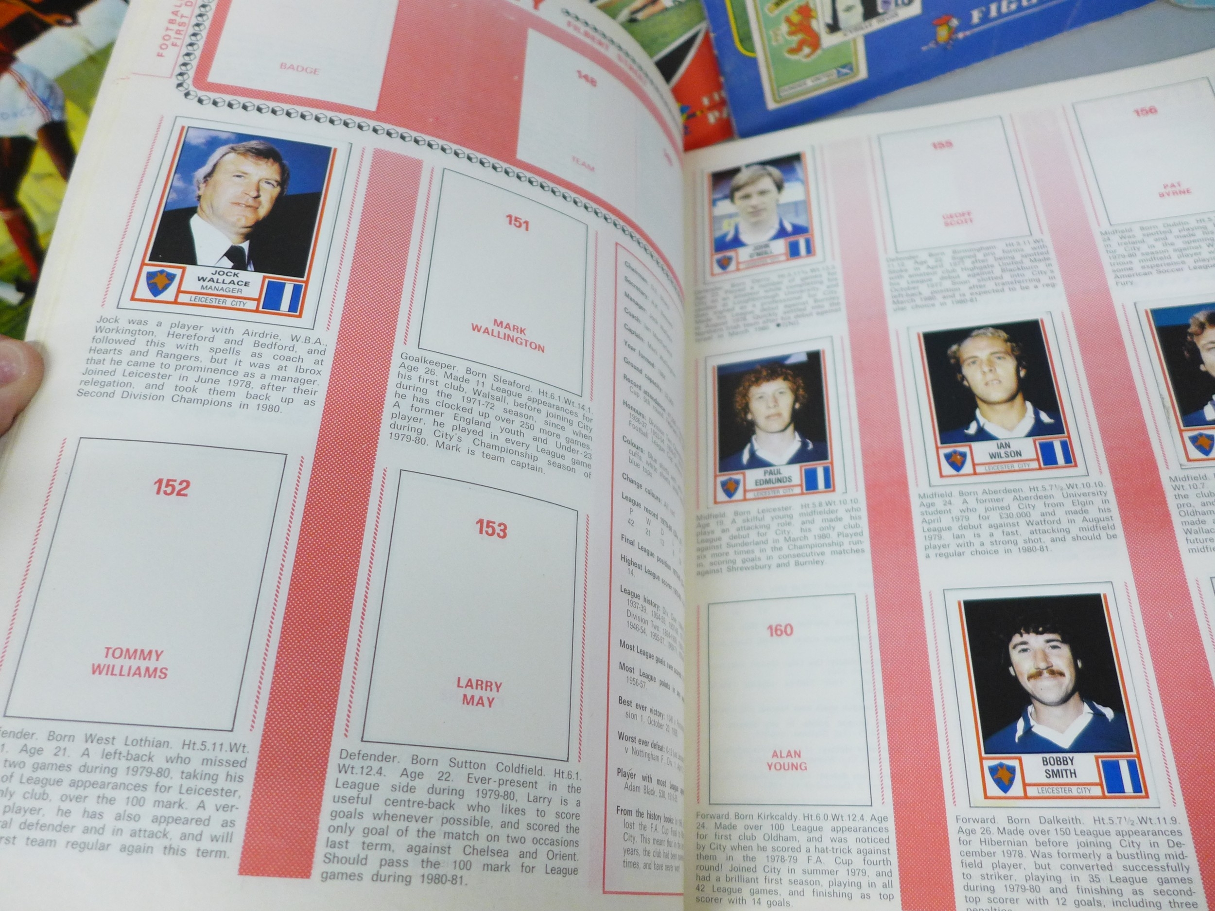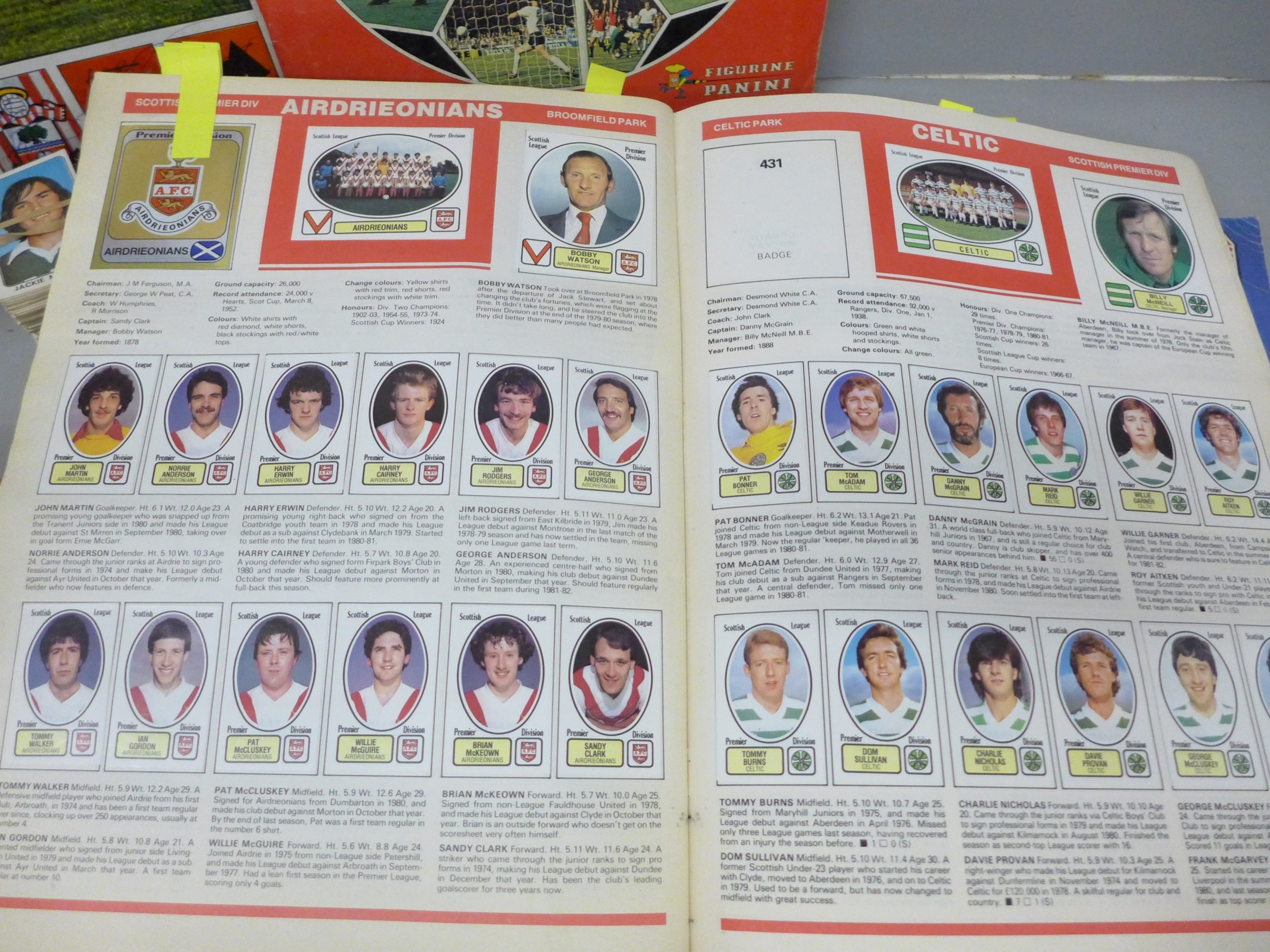 English football collectors sticker albums and stickers, Panini Football 1978, 1979, 1981 and 1982 each with some unused stickers, also a Soccer 81 album