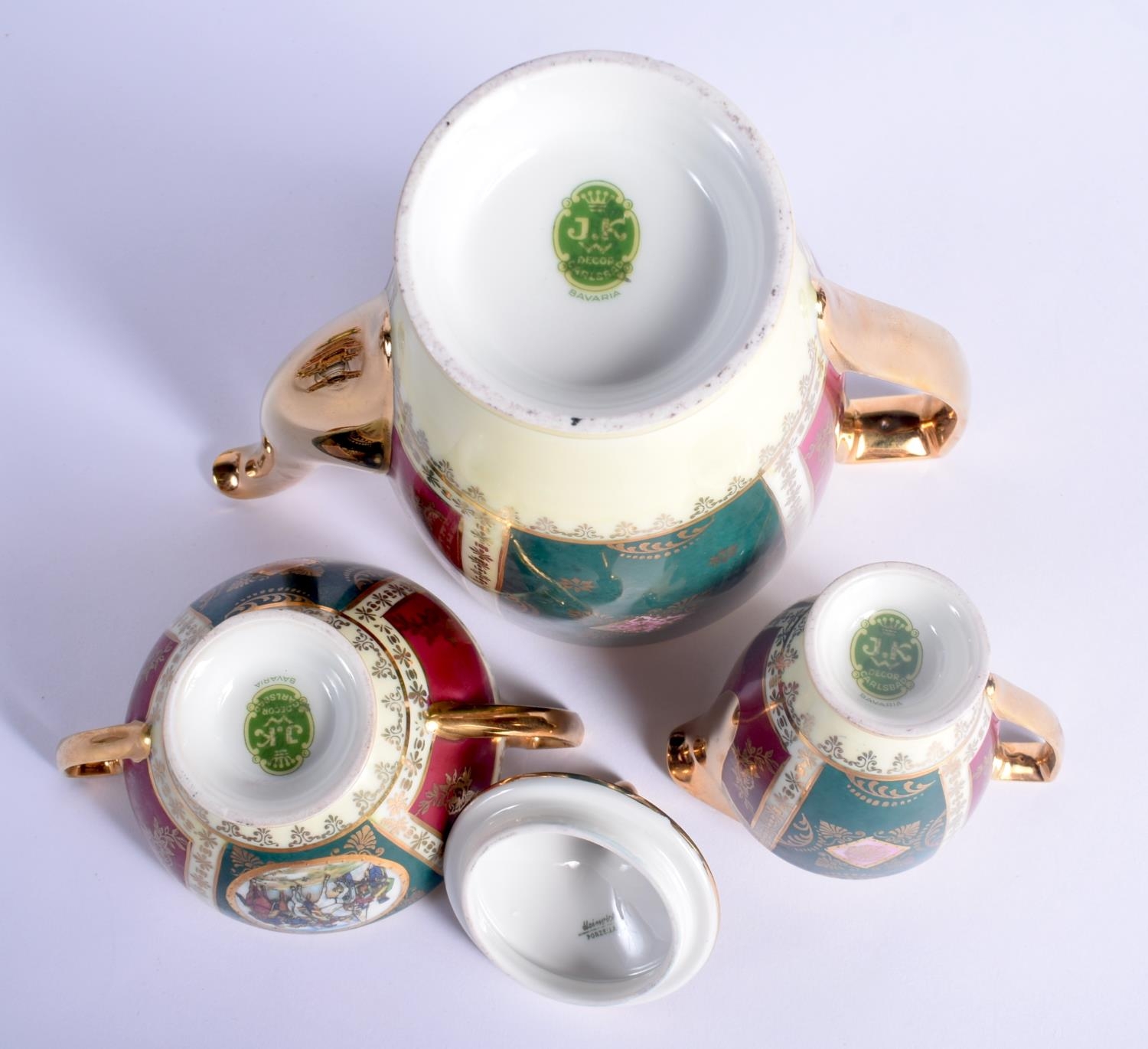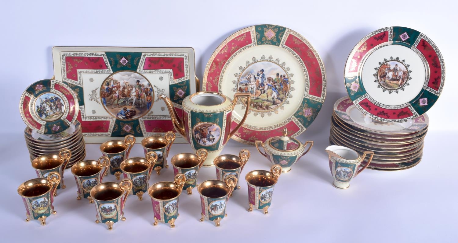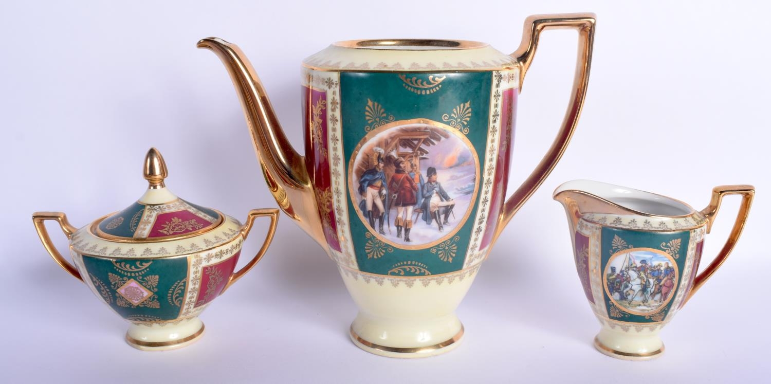 A VINTAGE J K CARLSBAD BAVARIA PORCELAIN VIENNA STYLE TEASET decorated with Napoleonic scenes. Largest 33 cm x 24 cm. (qty)