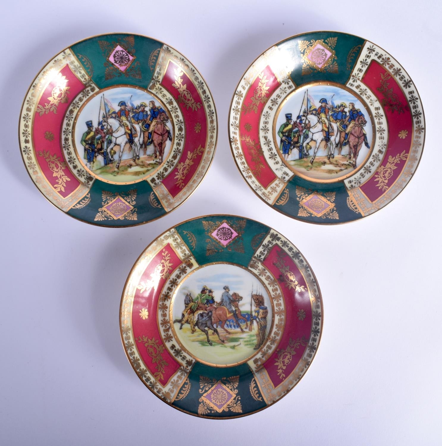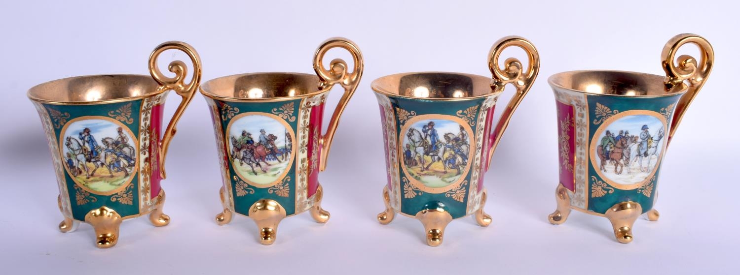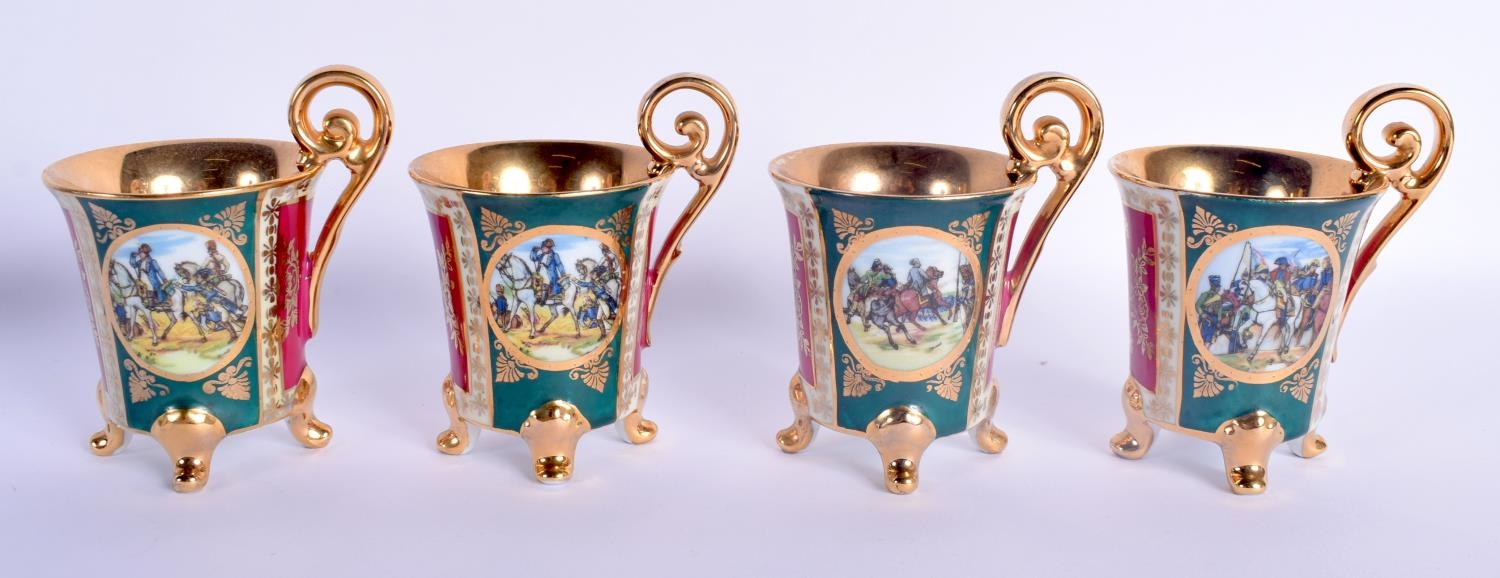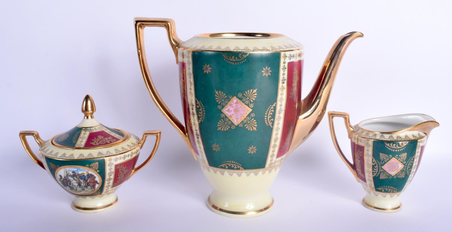 A VINTAGE J K CARLSBAD BAVARIA PORCELAIN VIENNA STYLE TEASET decorated with Napoleonic scenes. Largest 33 cm x 24 cm. (qty)