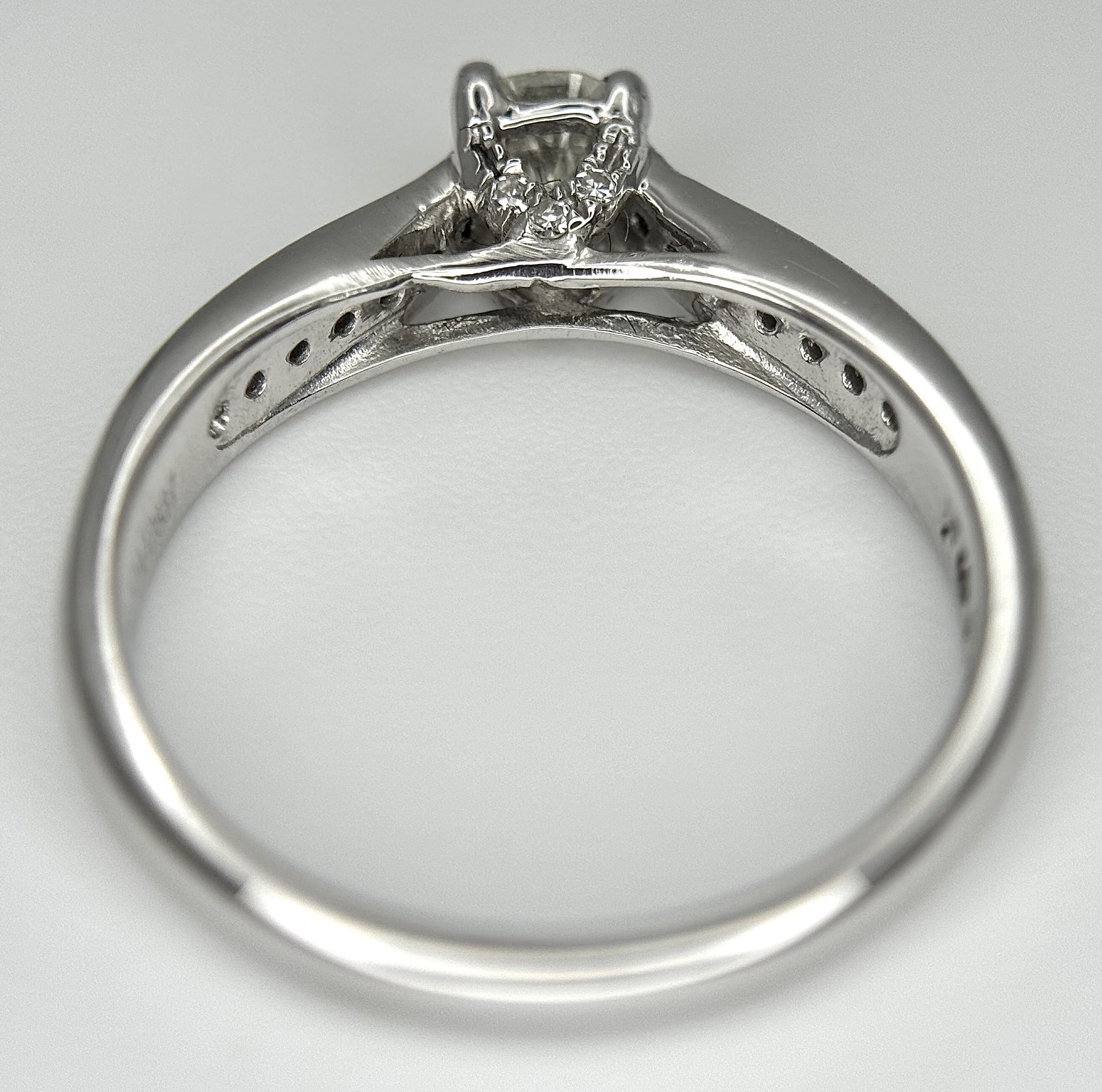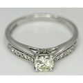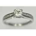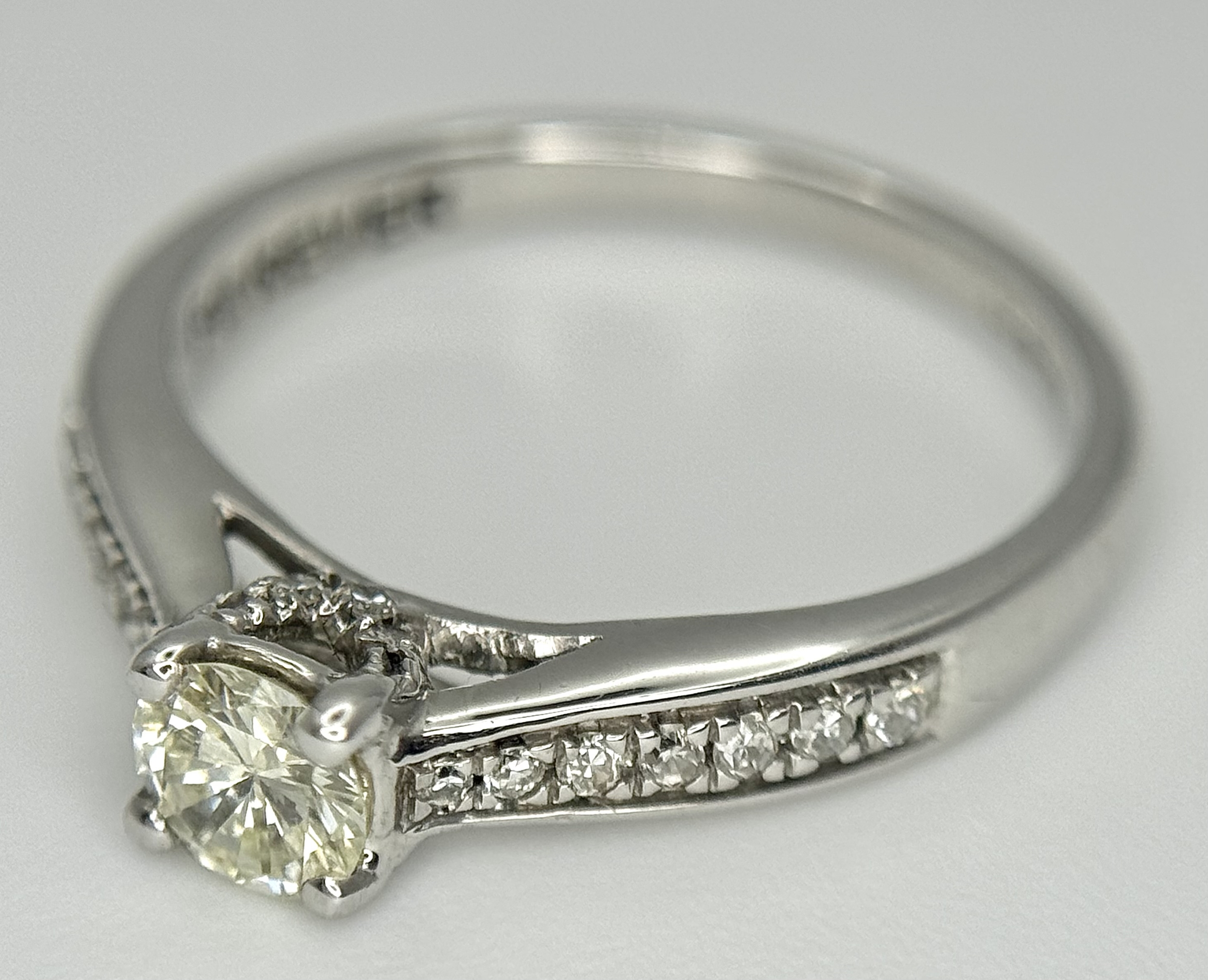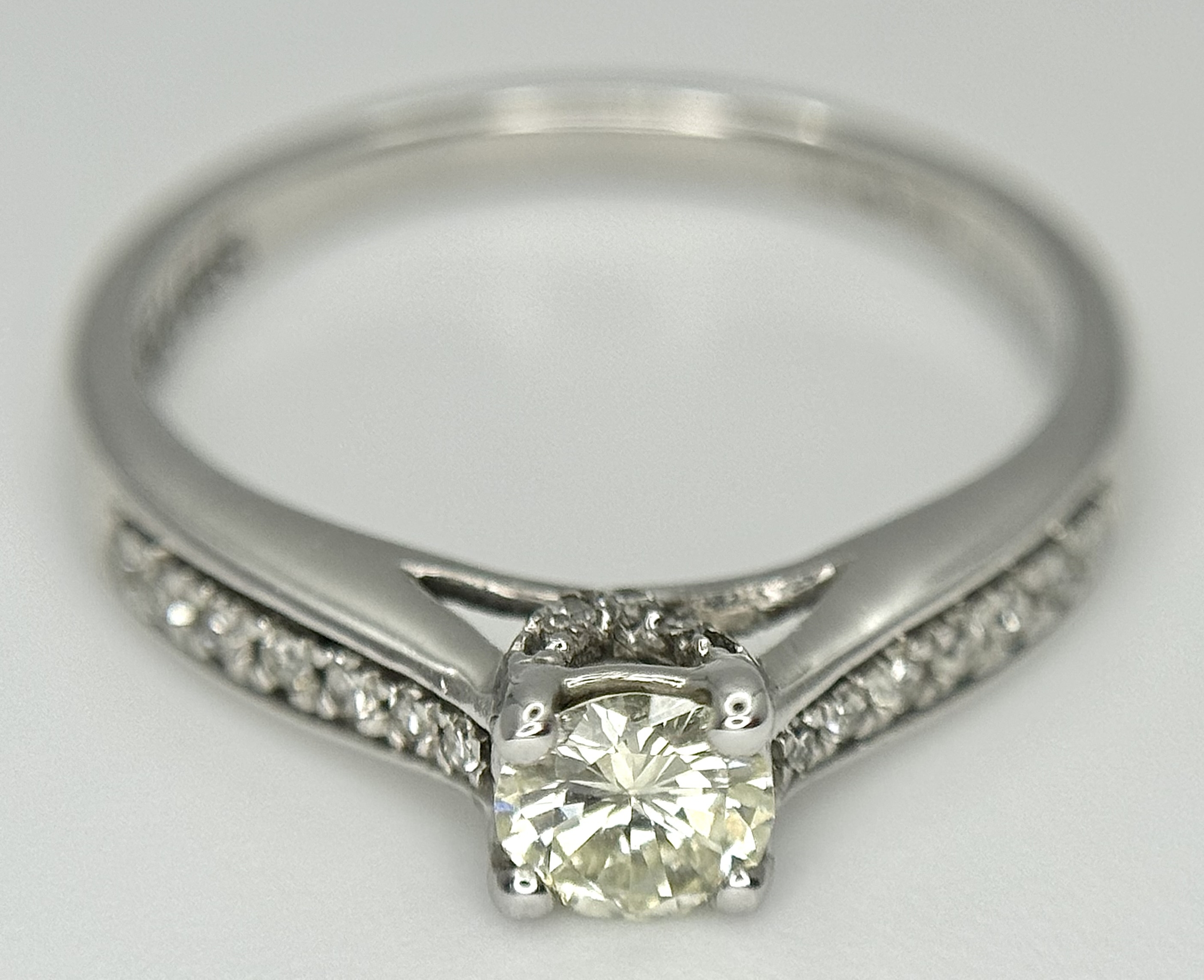 An 18k white gold diamond solitaire with diamond shoulders ring, 0.50ct diamond weight, 2.9g total weight, ring size J. NM05