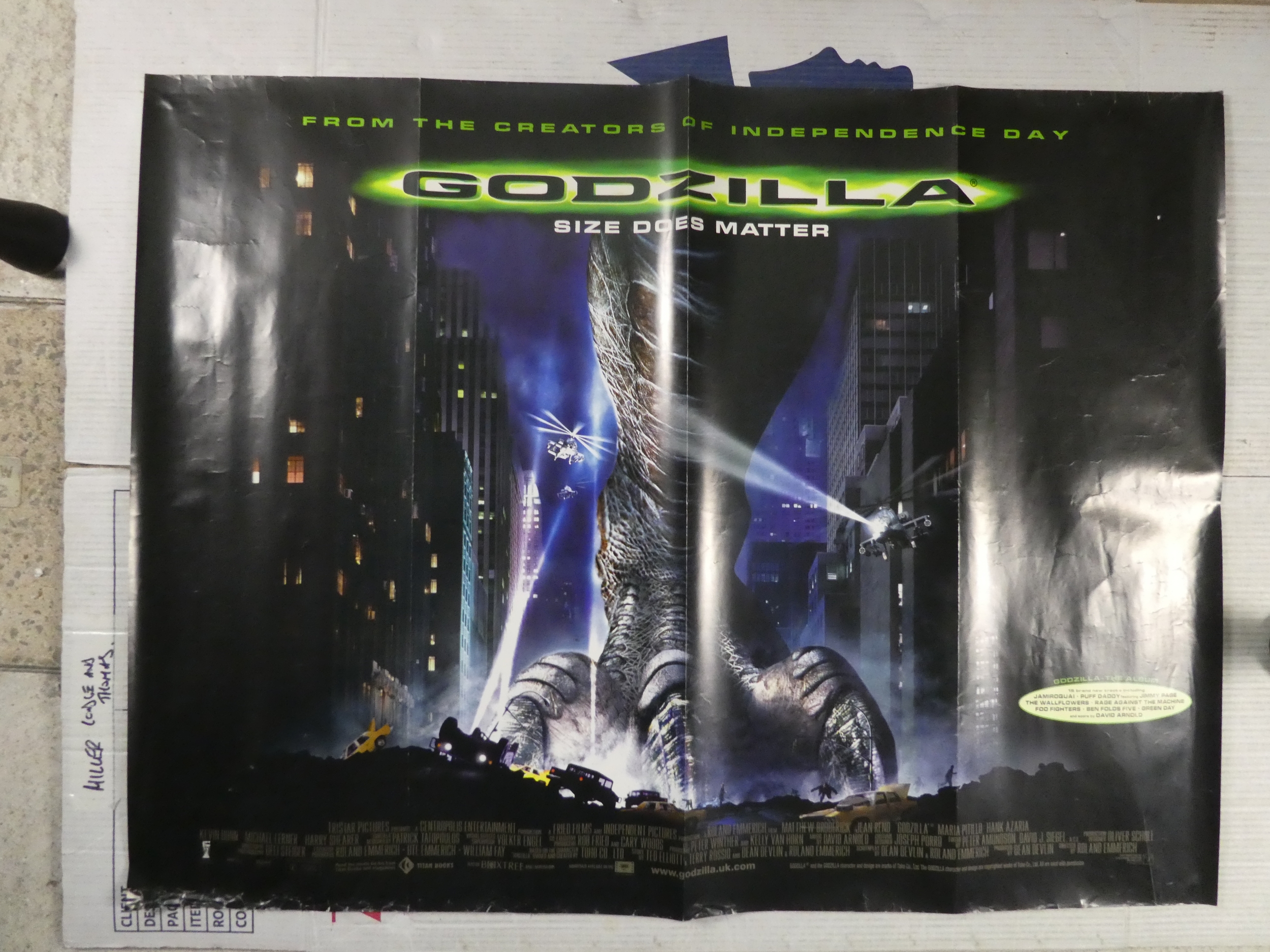 A quantity of film lobby posters - dating from mid 1985 to 2015, titles including Amelie, Teenage Mutant Ninga Turtles 3, Hercules, Mermails, Godzilla, Crocodile Dundee and How to Train Your Dragon. (qty)