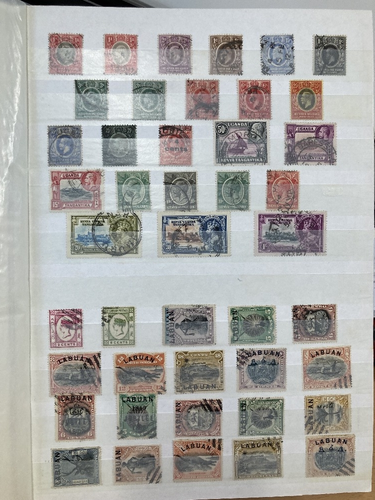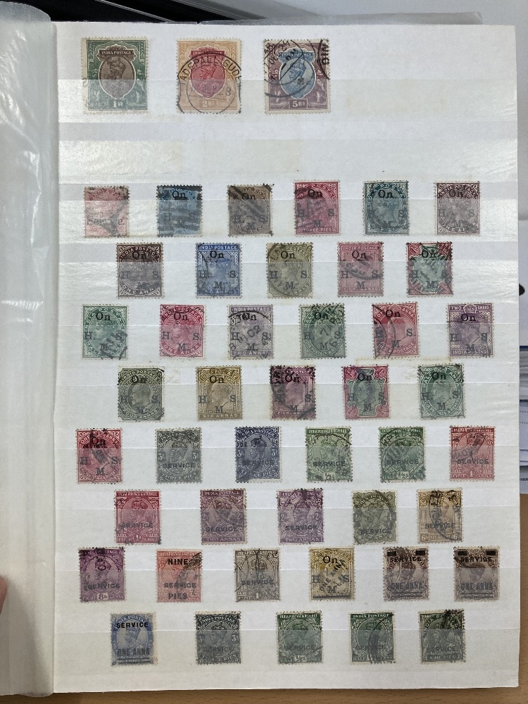 STAMPS Commonwealth used accumulation in large blue stock book, spotted Cape Triangles, Silver Jubilees, Indian States, little of no duplication (est 1600 stamps)