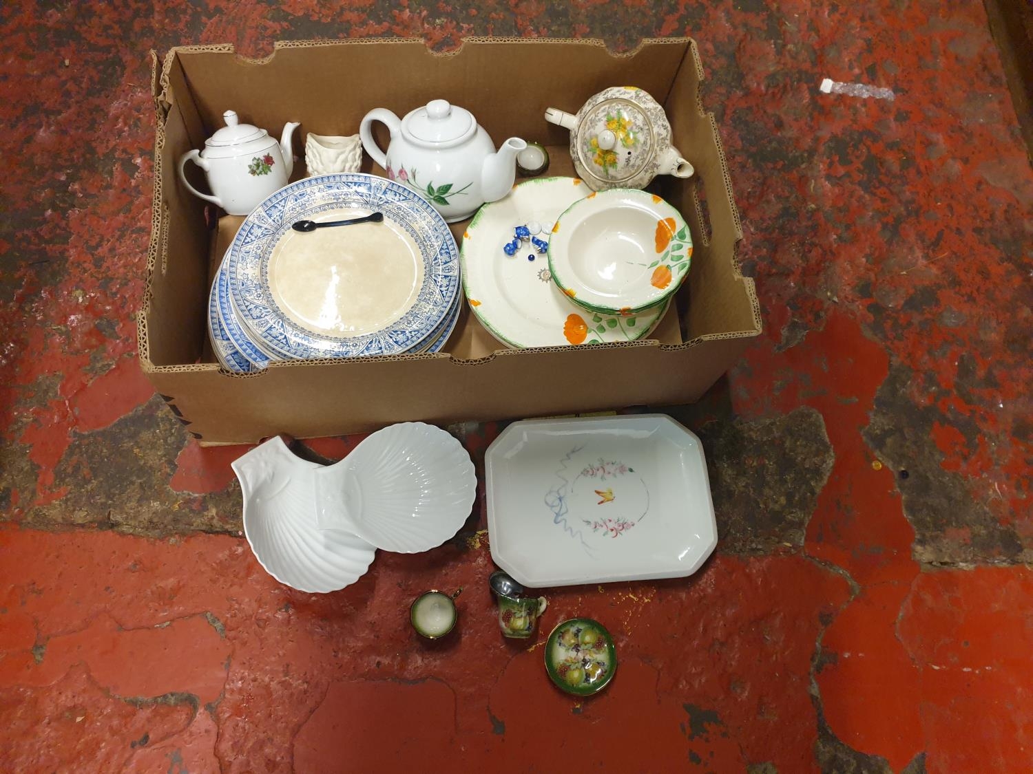 Box of Assorted China Including Wedgwood, Swinnertons, James Kent etc.