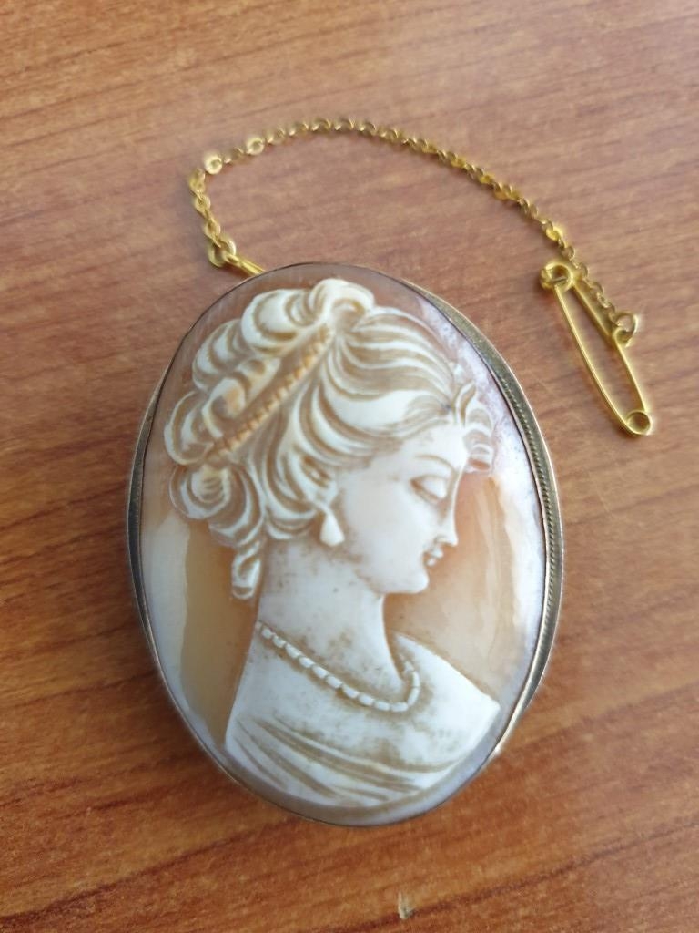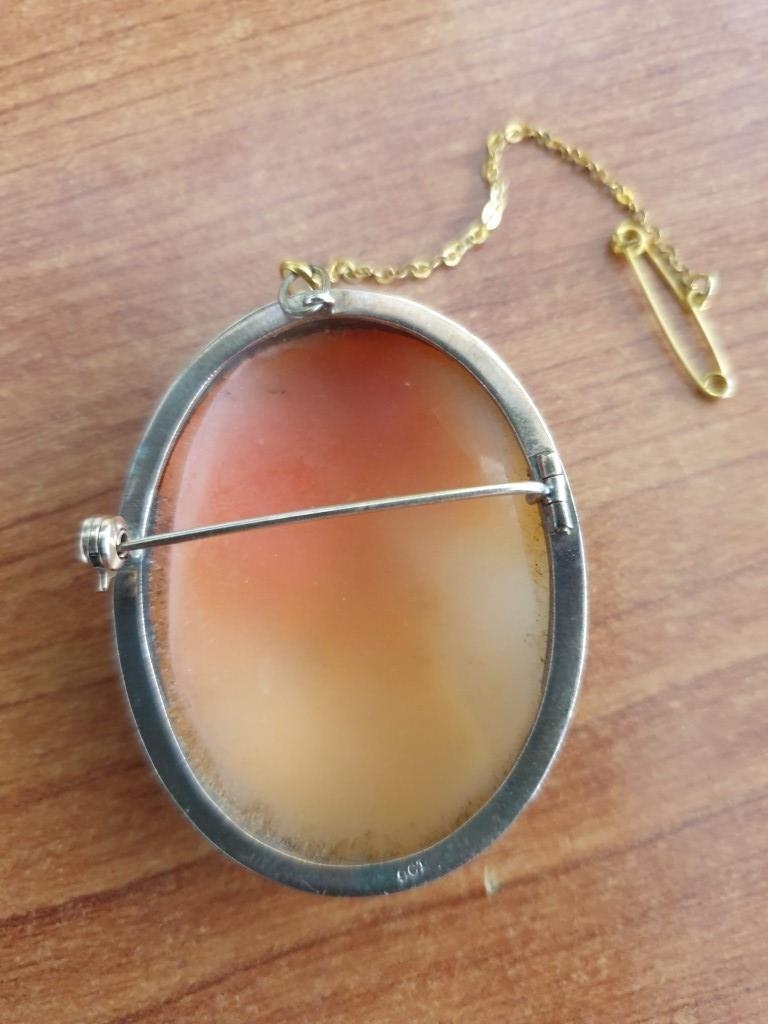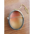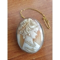 Cameo Broach with 9ct Gold Suround and Safety Chain, Approx 42mm x 32mm Overall
